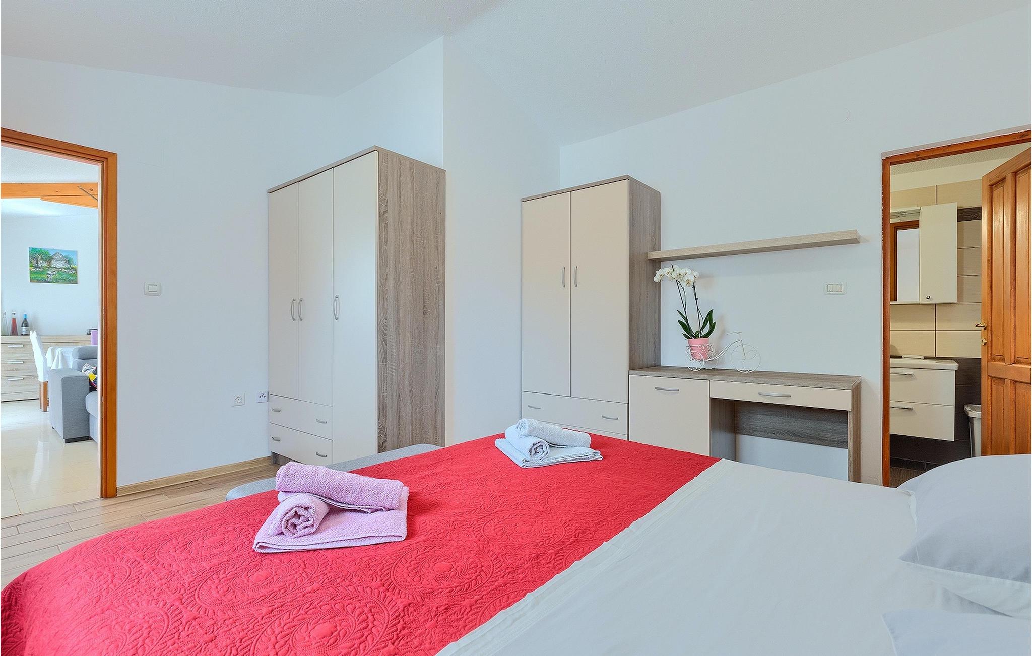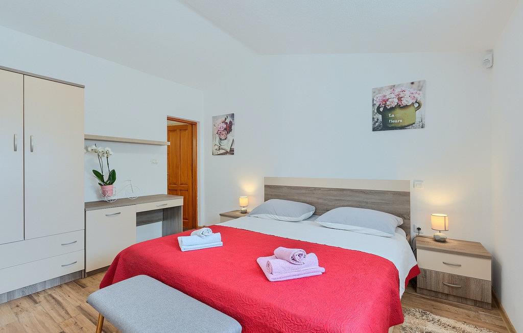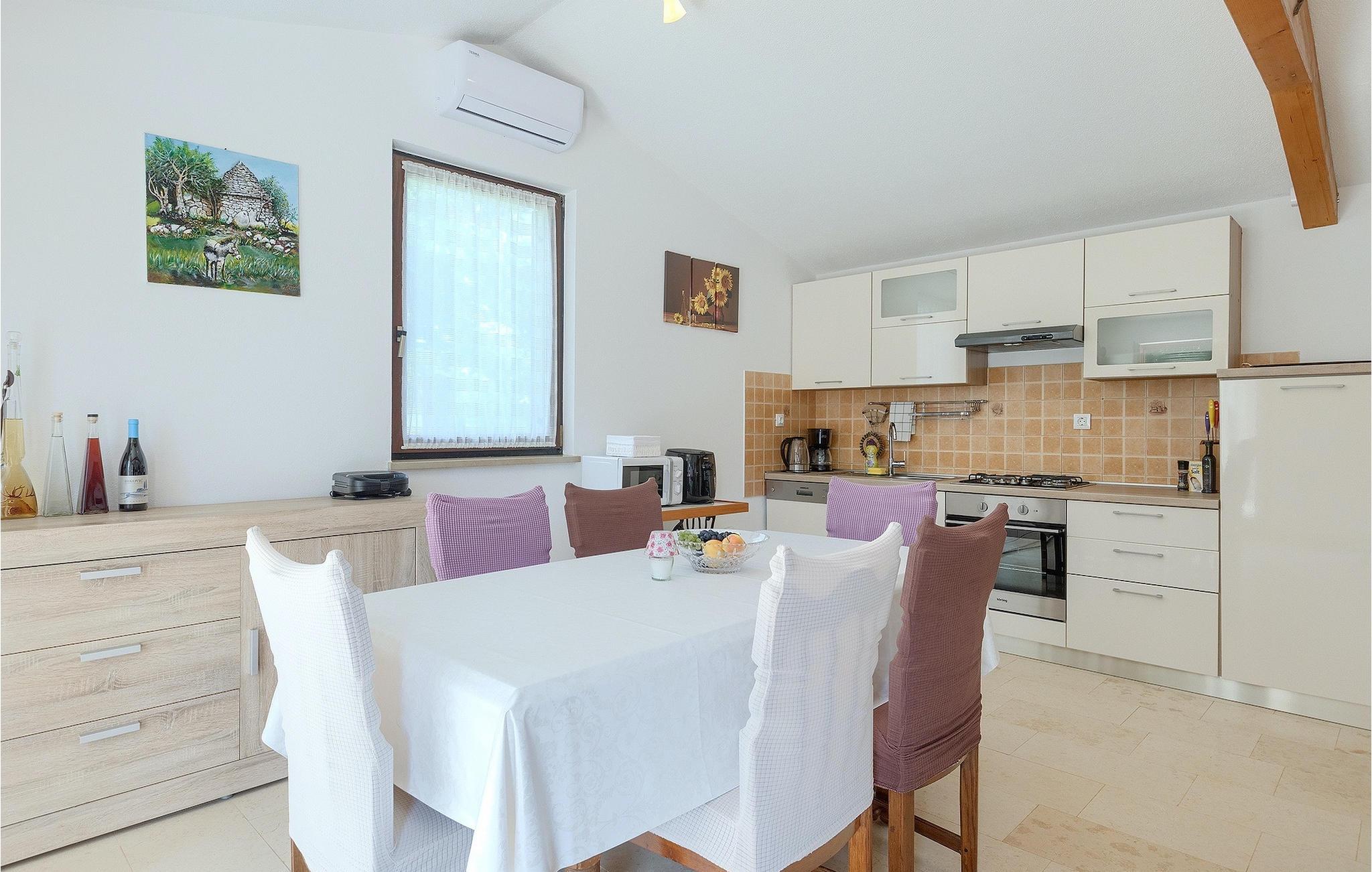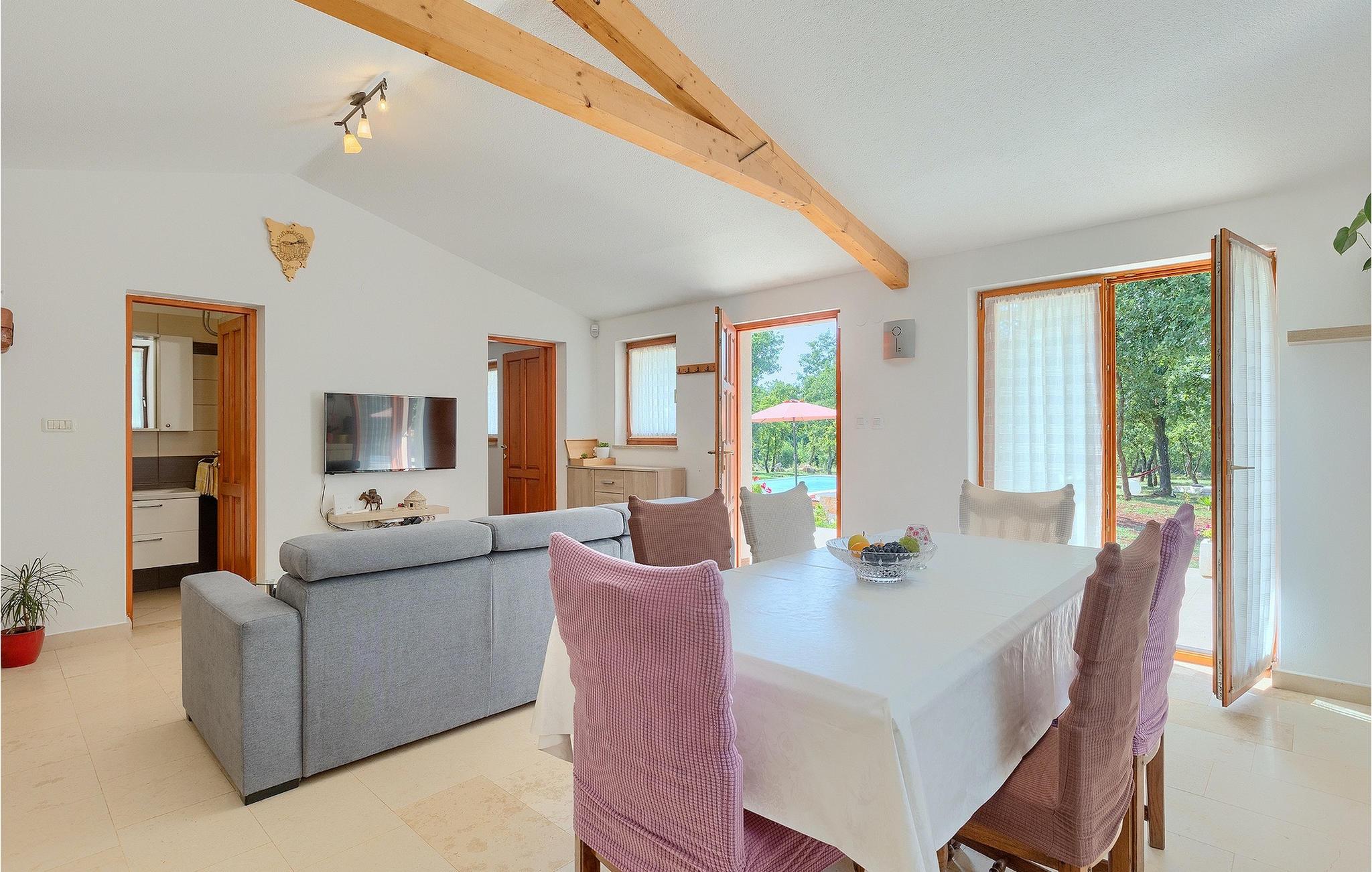 Den smukke store gårdhave er omgivet af træer og masser af grønt og tilbyder fuldstændig privatliv. I haven kan du finde mange aktiviteter såsom basketball, fodbold eller en legeplads, hvor du kan tilbringe tid med de mindste. For dem, der ønsker at udforske det omkringliggende område på cykel, er der 2 cykler til rådighed. Foran villaen er en privat pool, det perfekte sted for en forfriskende svømmetur på varme sommerdage. Kun få skridt fra den store og indbydende pool er en overdækket terrasse med en kulgrill, som er den ideelle udendørs spiseplads til at tilberede måltider og nyde tiden med din familie. Fra terrassen har du direkte adgang til den åbne plane stueetage bestående af et fuldt udstyret køkken, en spiseplads og en komfortabel stue med pejs. Villaen har et charmerende dekoreret soveværelse med dobbeltseng og eget badeværelse. Book Villa Marinetinka og tilbring en afslappende ferie med dine kære!Den smukke Villa Martinetinka ligger ikke langt fra den største istriske by Pula, i den lille landsby Marcana. Villaen tilbyder dig fuldstændig privatliv, omgivet af træer og grønne områder. Dagligvarebutikker, restauranter og caféer ligger tæt på villaen, kun en kort køretur væk. Hvis du ønsker at udforske omgivelserne, er der 2 cykler til rådighed på villaen. Istrien er særligt populær blandt cyklister, da det byder på adskillige cykelstier, som ligger lige foran villaen. De fører gennem adskillige vinmarker og olivenlunde, langs det blå Adriaterhav eller gennem mange historiske byer. Vi anbefaler at besøge byen Pula, som er berømt for sine rester fra den romerske periode, såsom amfiteatret. Ikke langt fra Pula ligger en anden perle ved Adriaterhavet, byen Rovinj. Rovinj var en lille fiskerby, som med tiden er blevet et populært rejsemål for mange turister. Byen er præget af sine farverige huse og smalle brostensbelagte gader, der skaber en uimodståelig charme. Udover de kulturelle seværdigheder, bør du bestemt prøve de traditionelle istriske retter, olivenolie og istrisk malvasia.