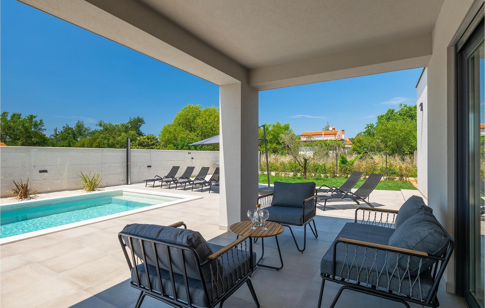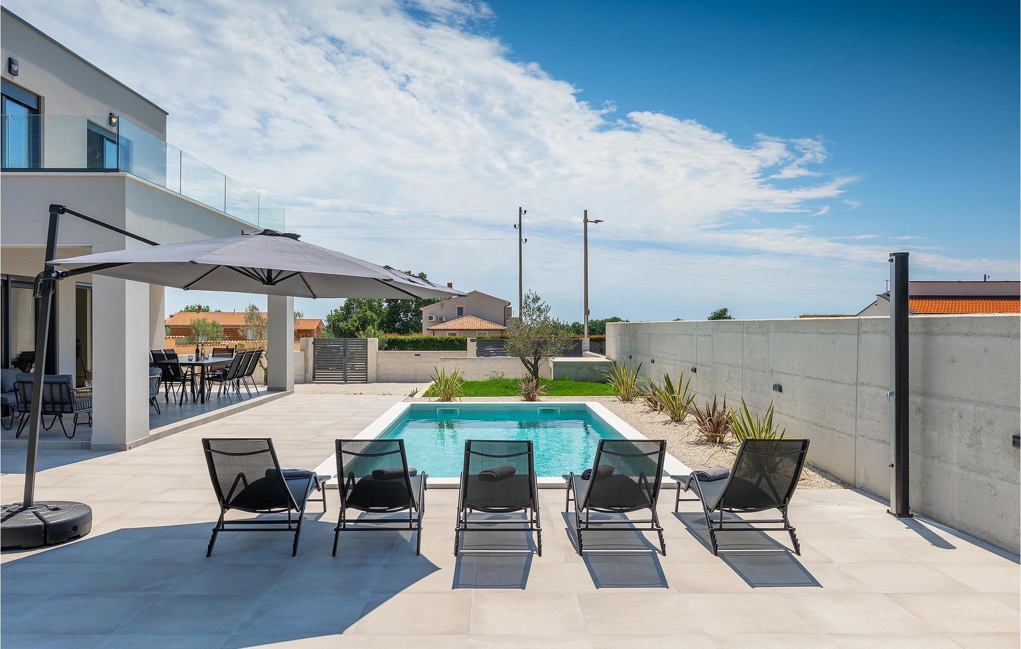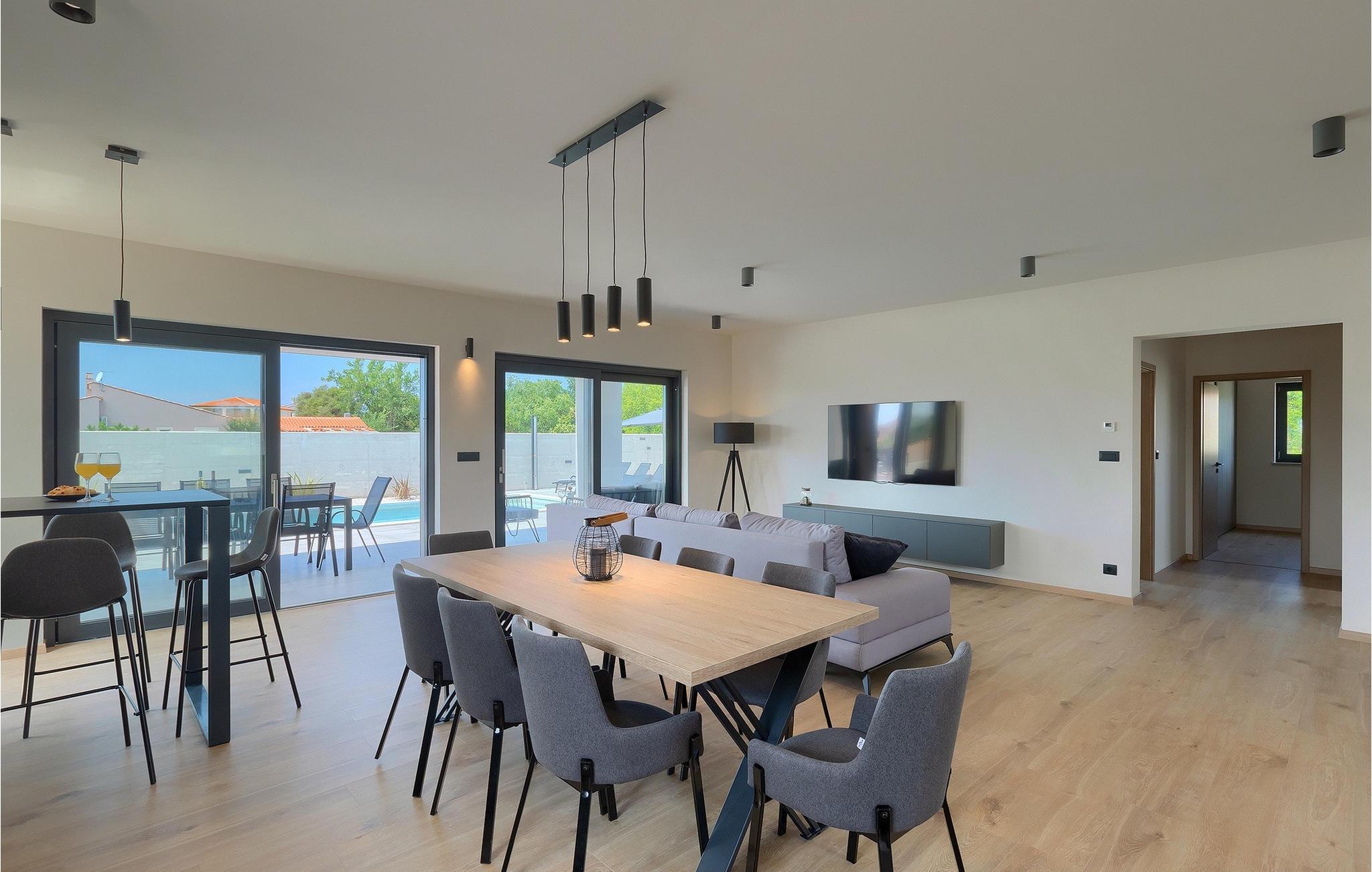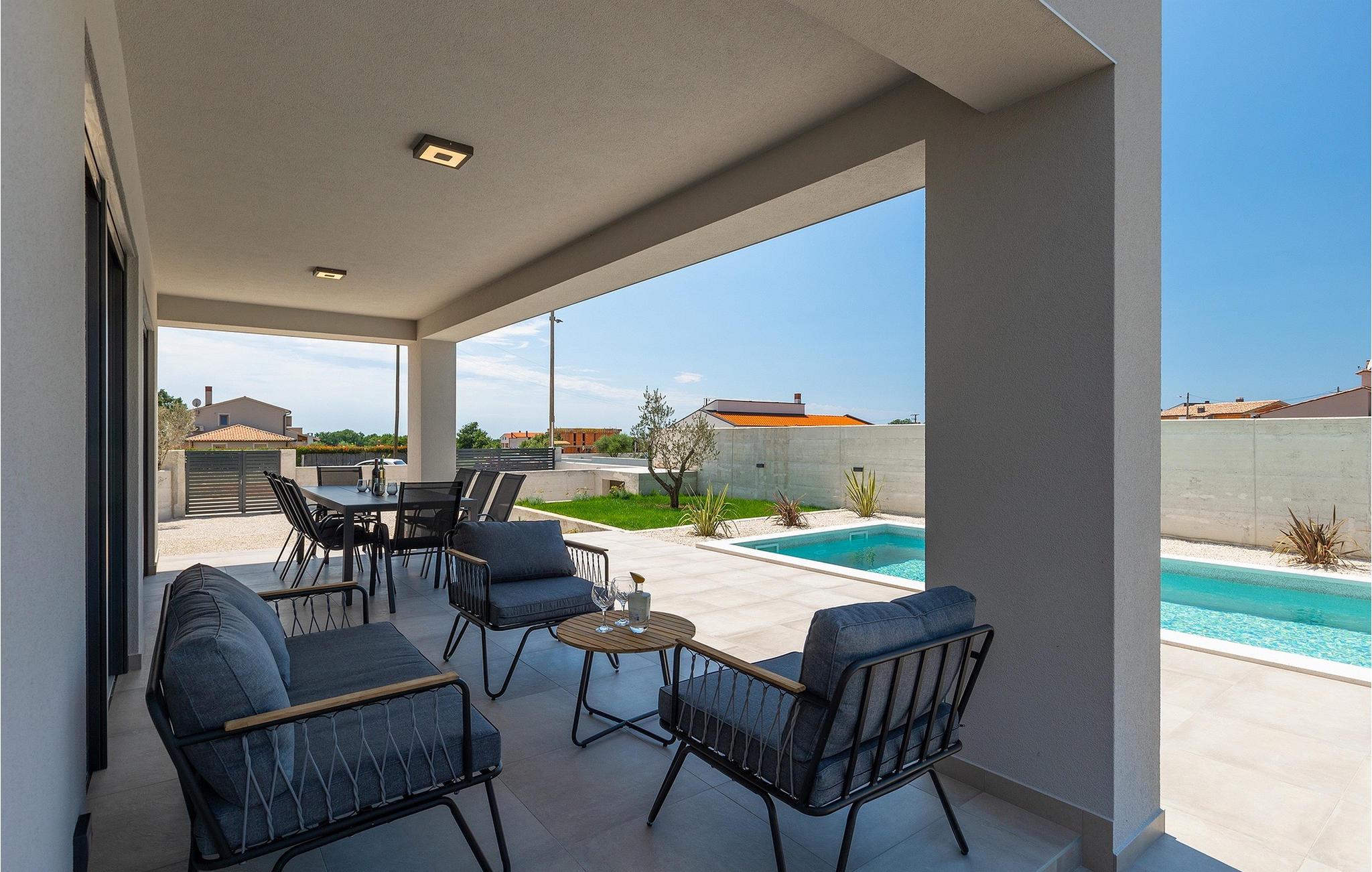 Villa Esire er det perfekte valg, hvis du leder efter en uforglemmelig ferie fuld af fred og afslapning! Det er den ideelle kombination af moderne luksusferie med et strejf af middelhavscharme. Udendørsområdet byder på en privat pool med liggestole, så du kan slappe af og nyde selv de varmeste sommerdage. Til din rådighed er også en overdækket spiseplads og en grill. Brug dette til at sætte dine grillfærdigheder på prøve. Når du kommer ind i villaens indre fra terrassen, finder du en åben, smagfuldt indrettet opholdsstue med spisebord og fuldt udstyret køkken. Alt ser meget moderne og alligevel hjemligt ud. Villaen kan rumme i alt 8 personer med 4 komfortable soveværelser. To af soveværelserne er placeret i stueetagen og yderligere to soveværelser er placeret på anden sal. Hvert af de smart indrettede værelser har aircondition.Villa Esire ligger i en lille landsby, kun en kort køretur fra Pula og dens smukke strande. Mærk ånden fra svundne tider, mens du går gennem denne gamle by, og besøg dens vartegn, det verdensberømte amfiteater bygget under kejser Augustus. For dem, der elsker historie, anbefaler vi en guidet tur for at lære mange interessante ting om denne imponerende bygning. Cape Kamenjak, som ligger kun en kort køretur fra villaen, er et must at besøge, hvis du kan lide uberørt natur med vilde strande og smukke omgivelser. Istrien er en virkelig utrolig region kendt for sin skønhed, rige kulturelle arv og fremragende køkken. Vi anbefaler dig at besøge en af de smukkeste byer i Istrien - Rovinj. Mærk byens magi i de smalle middelaldergader og det varme middelhavsmiljø.
