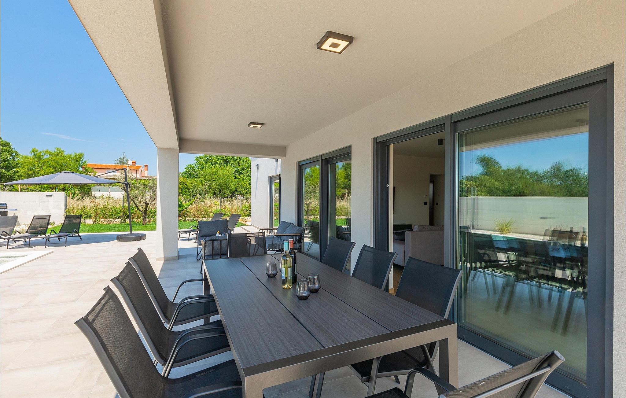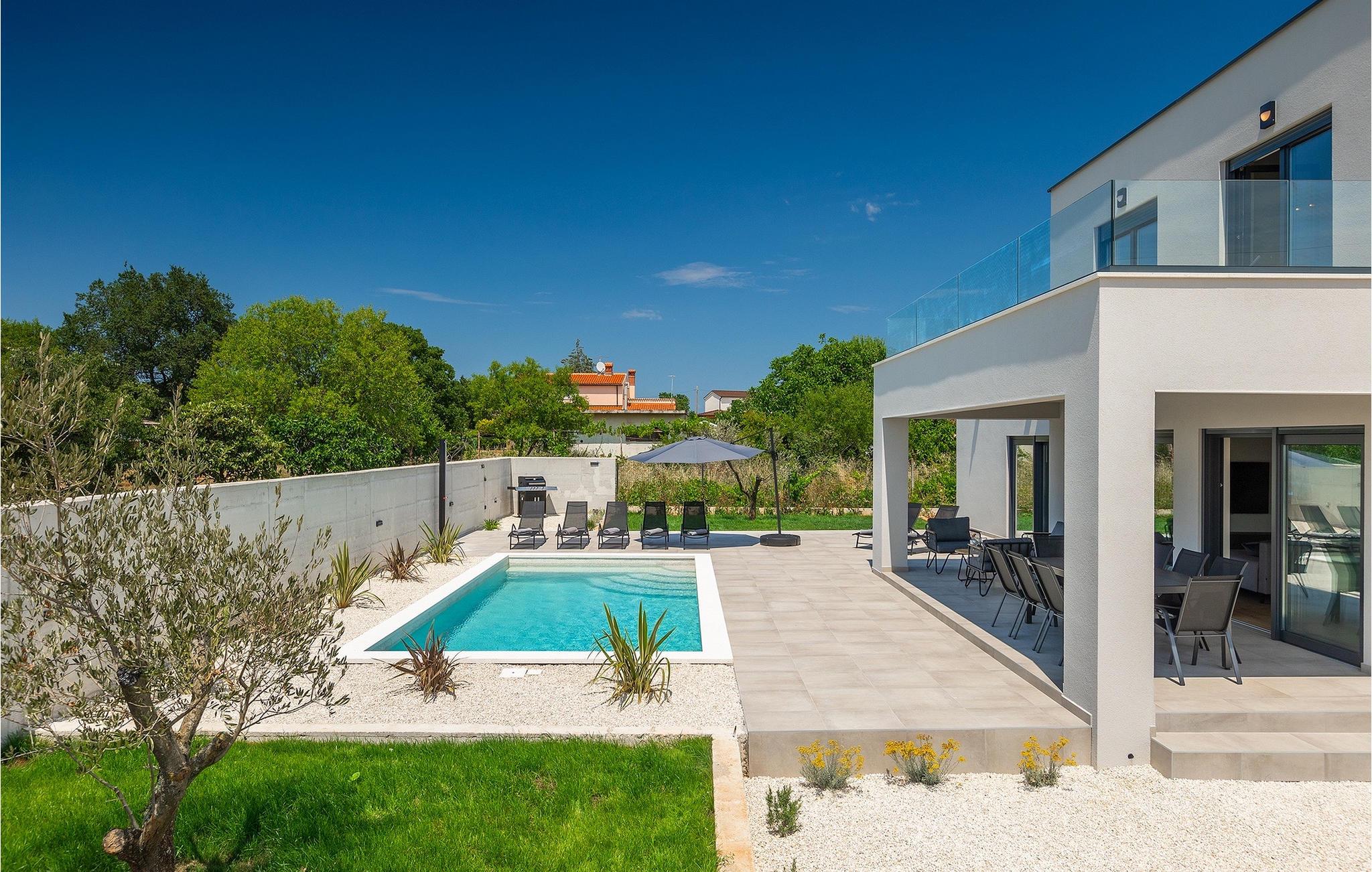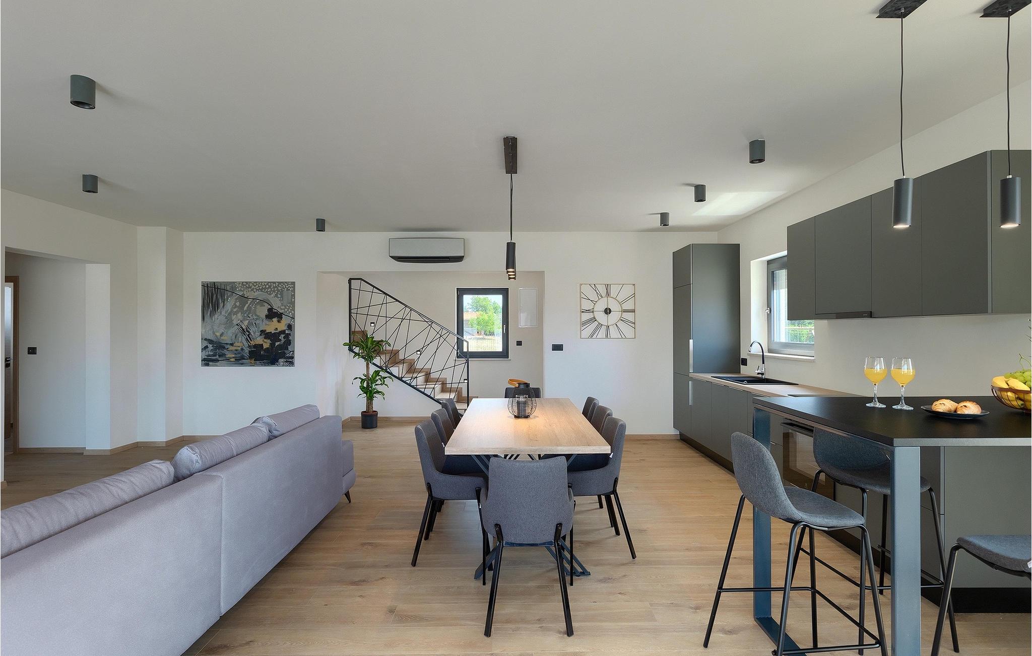 Villa Esire er det perfekte valg, hvis du leder efter en uforglemmelig ferie fuld af fred og afslapning! Det er den ideelle kombination af moderne luksusferie med et strejf af middelhavscharme. Udendørsområdet byder på en privat pool med liggestole, så du kan slappe af og nyde selv de varmeste sommerdage. Til din rådighed er også en overdækket spiseplads og en grill. Brug dette til at sætte dine grillfærdigheder på prøve. Når du kommer ind i villaens indre fra terrassen, finder du en åben, smagfuldt indrettet opholdsstue med spisebord og fuldt udstyret køkken. Alt ser meget moderne og alligevel hjemligt ud. Villaen kan rumme i alt 8 personer med 4 komfortable soveværelser. To af soveværelserne er placeret i stueetagen og yderligere to soveværelser er placeret på anden sal. Hvert af de smart indrettede værelser har aircondition.Villa Esire ligger i en lille landsby, kun en kort køretur fra Pula og dens smukke strande. Mærk ånden fra svundne tider, mens du går gennem denne gamle by, og besøg dens vartegn, det verdensberømte amfiteater bygget under kejser Augustus. For dem, der elsker historie, anbefaler vi en guidet tur for at lære mange interessante ting om denne imponerende bygning. Cape Kamenjak, som ligger kun en kort køretur fra villaen, er et must at besøge, hvis du kan lide uberørt natur med vilde strande og smukke omgivelser. Istrien er en virkelig utrolig region kendt for sin skønhed, rige kulturelle arv og fremragende køkken. Vi anbefaler dig at besøge en af de smukkeste byer i Istrien - Rovinj. Mærk byens magi i de smalle middelaldergader og det varme middelhavsmiljø.