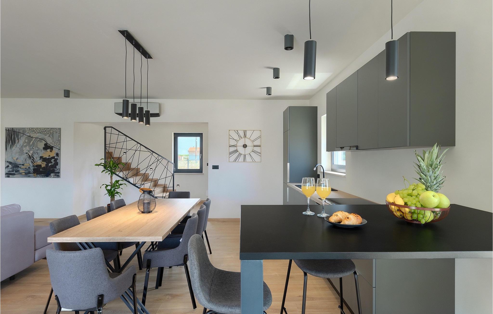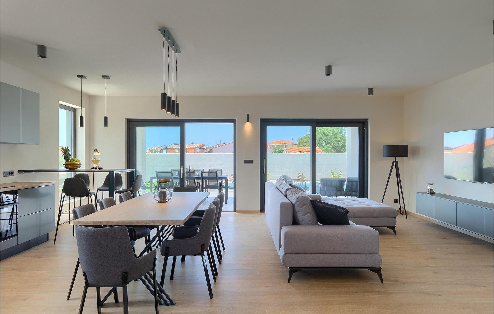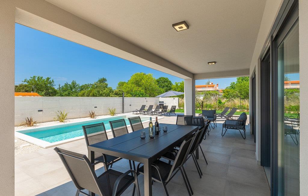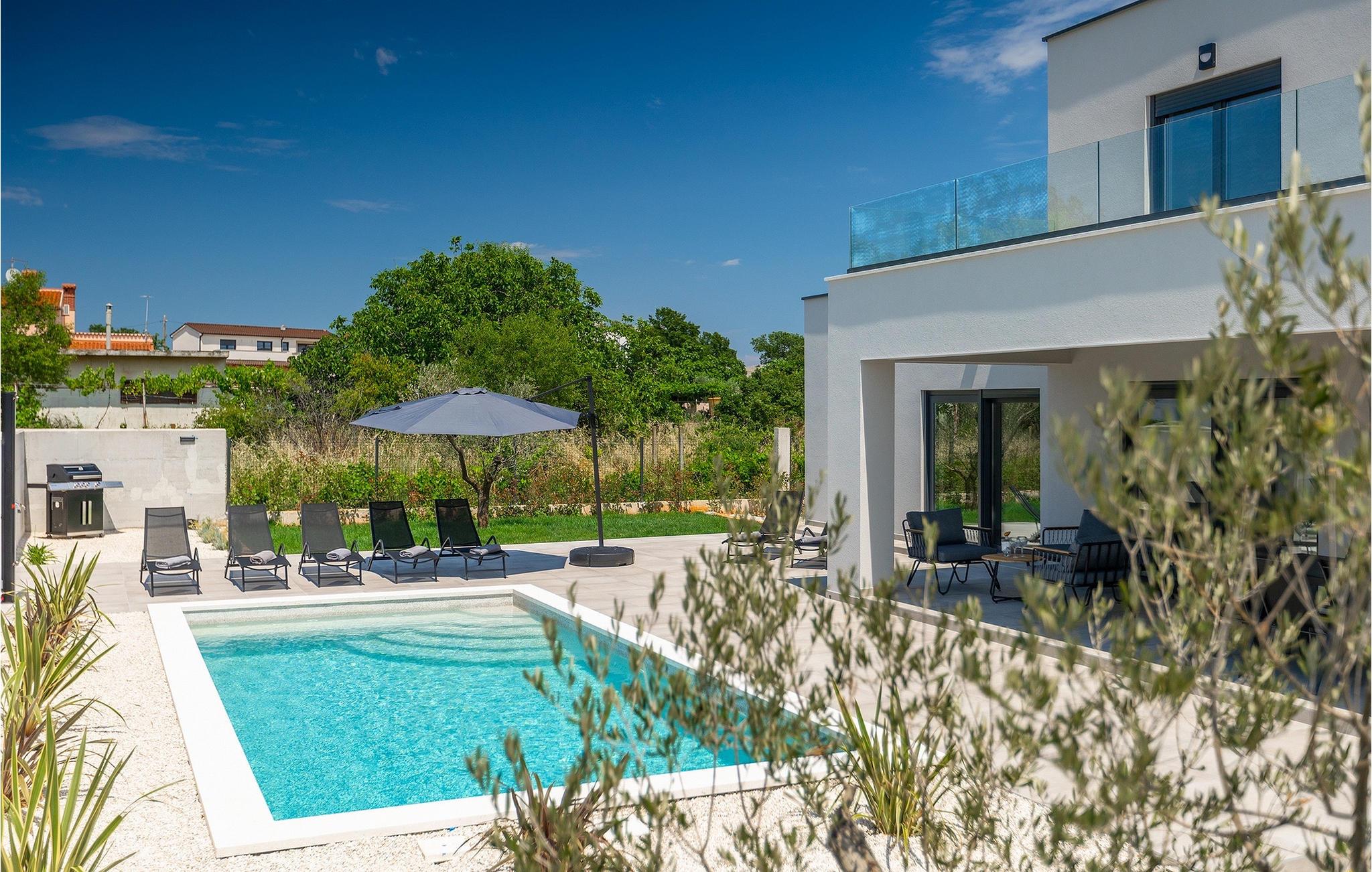 Villa Esire er det perfekte valg, hvis du leder efter en uforglemmelig ferie fuld af fred og afslapning! Det er den ideelle kombination af moderne luksusferie med et strejf af middelhavscharme. Udendørsområdet byder på en privat pool med liggestole, så du kan slappe af og nyde selv de varmeste sommerdage. Til din rådighed er også en overdækket spiseplads og en grill. Brug dette til at sætte dine grillfærdigheder på prøve. Når du kommer ind i villaens indre fra terrassen, finder du en åben, smagfuldt indrettet opholdsstue med spisebord og fuldt udstyret køkken. Alt ser meget moderne og alligevel hjemligt ud. Villaen kan rumme i alt 8 personer med 4 komfortable soveværelser. To af soveværelserne er placeret i stueetagen og yderligere to soveværelser er placeret på anden sal. Hvert af de smart indrettede værelser har aircondition.Villa Esire ligger i en lille landsby, kun en kort køretur fra Pula og dens smukke strande. Mærk ånden fra svundne tider, mens du går gennem denne gamle by, og besøg dens vartegn, det verdensberømte amfiteater bygget under kejser Augustus. For dem, der elsker historie, anbefaler vi en guidet tur for at lære mange interessante ting om denne imponerende bygning. Cape Kamenjak, som ligger kun en kort køretur fra villaen, er et must at besøge, hvis du kan lide uberørt natur med vilde strande og smukke omgivelser. Istrien er en virkelig utrolig region kendt for sin skønhed, rige kulturelle arv og fremragende køkken. Vi anbefaler dig at besøge en af de smukkeste byer i Istrien - Rovinj. Mærk byens magi i de smalle middelaldergader og det varme middelhavsmiljø.