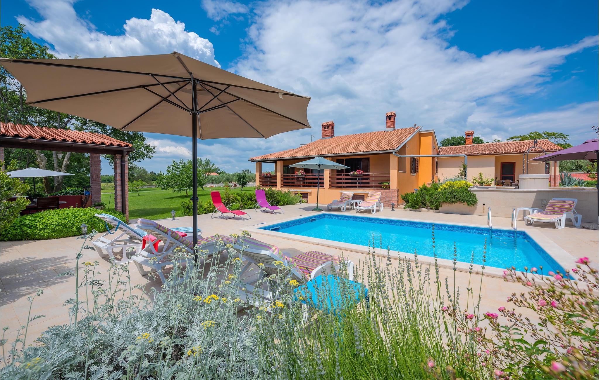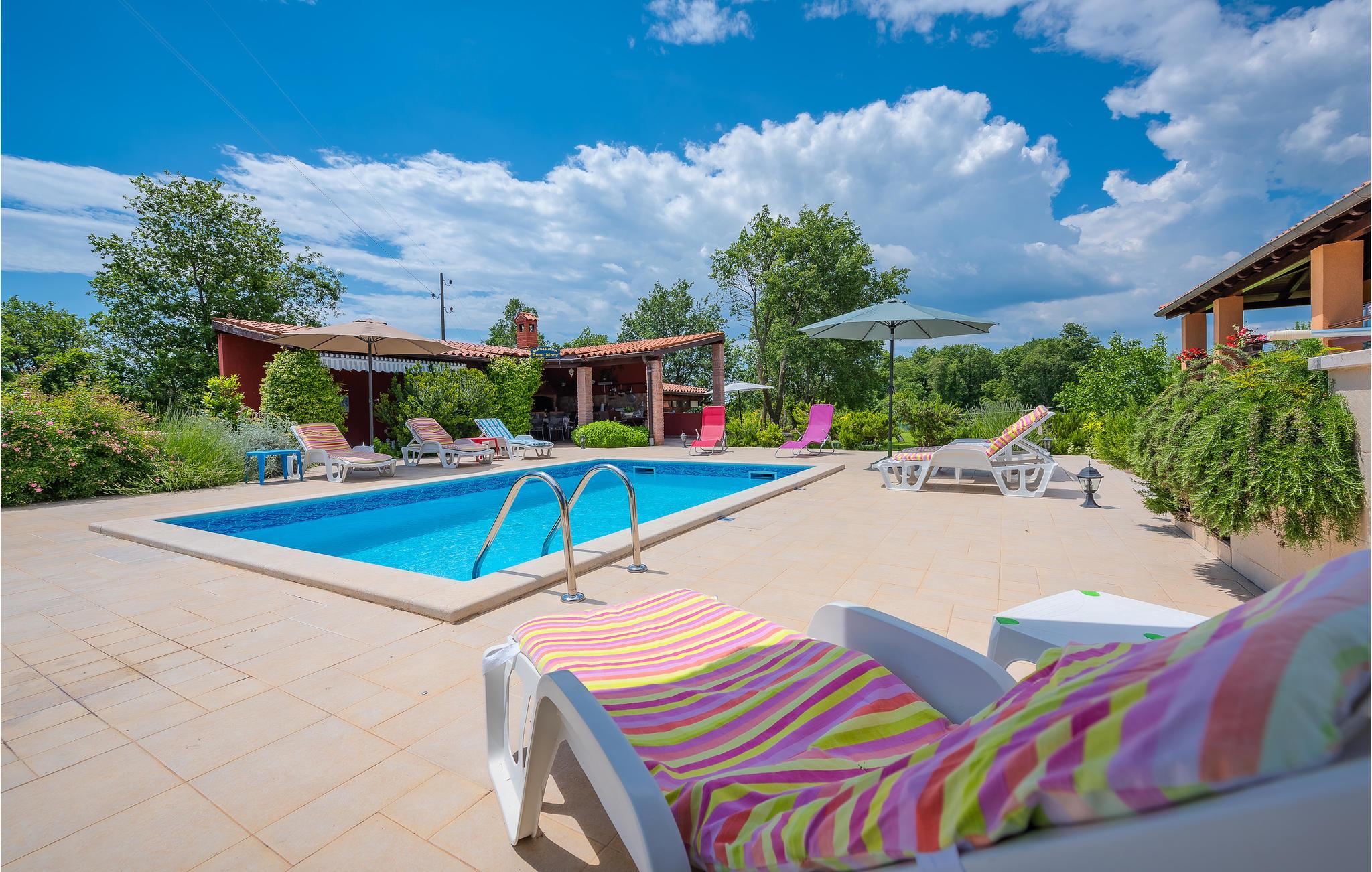 På mere end 11.000 m² indhegnet ejendom kan gæsterne nyde privatlivets fred, slappe af i den private pool og tilberede lækre måltider i det fuldt udstyrede sommerkøkken med alle apparater og en opvaskemaskine og spise dem på stedet.