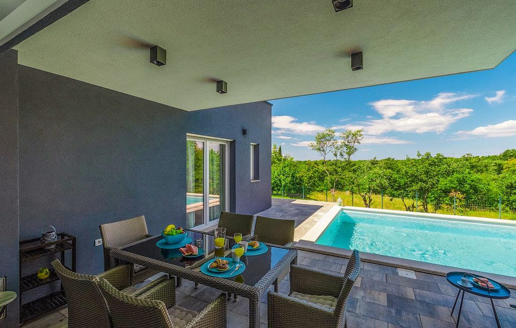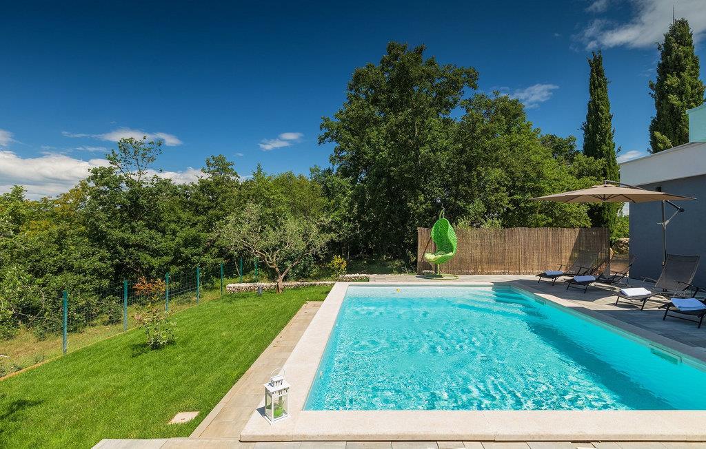 I løbet af dagen vil du helt sikkert gerne bruge det meste af din tid på at svømme i poolen og bare slappe af. Den overdækkede udendørs spiseplads er perfekt til at forkæle dig selv med et glas kold drik over en middag med levende lys på en varm sommeraften. Nyd aftenbrisen og den vidunderlige stjerneklare aftenhimmel fra en af liggestolene eller den store gyngestol. Smuk Villa Noemi ligger i en lille landsby i Istrien kaldet Krvavici. Som de fleste landsbyer i Istrien er Krvavici omgivet af betagende natur, grønne bakker og landbrugsområder, hvilket gør det til et perfekt sted for en afslappende ferie.
