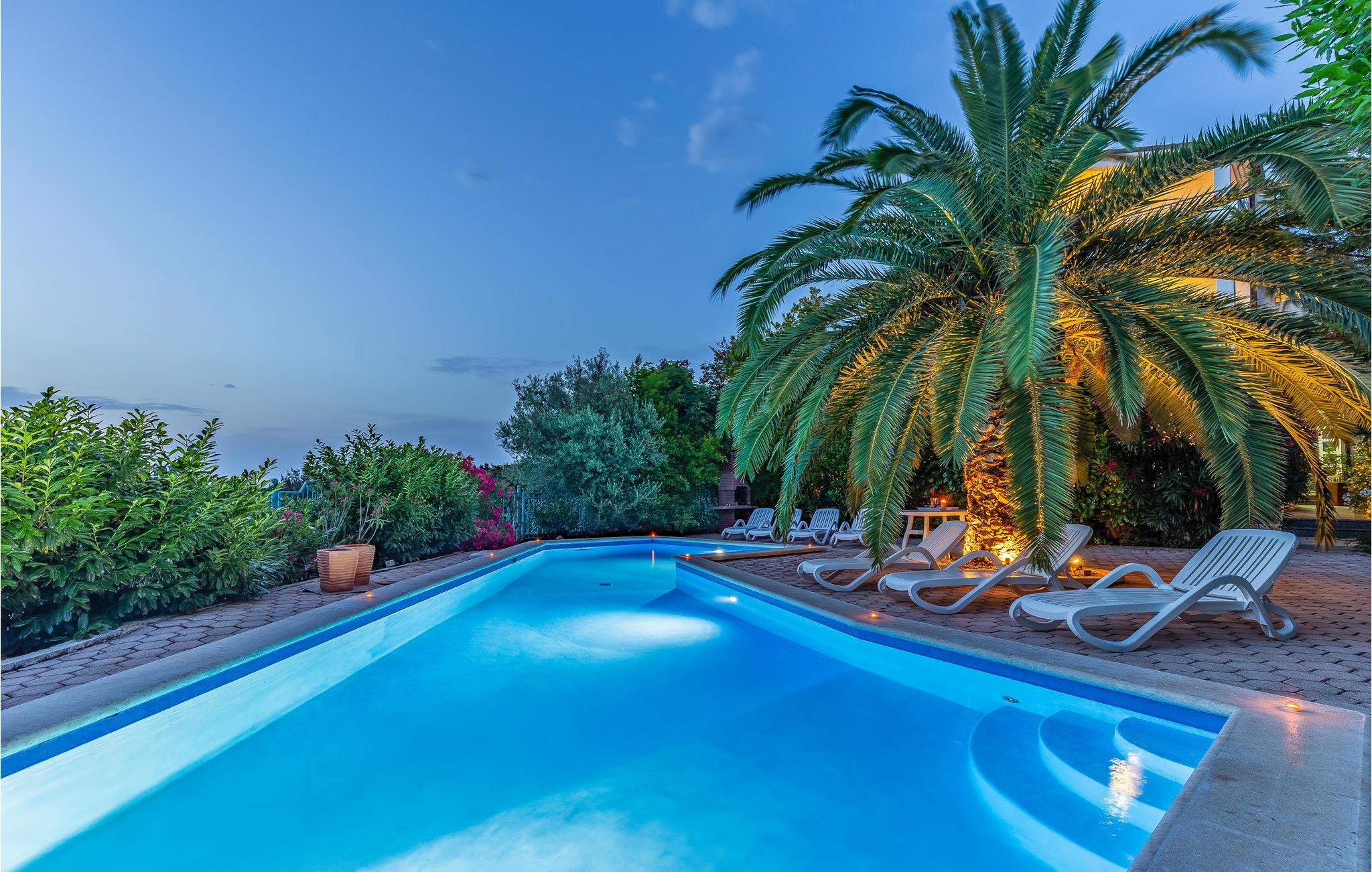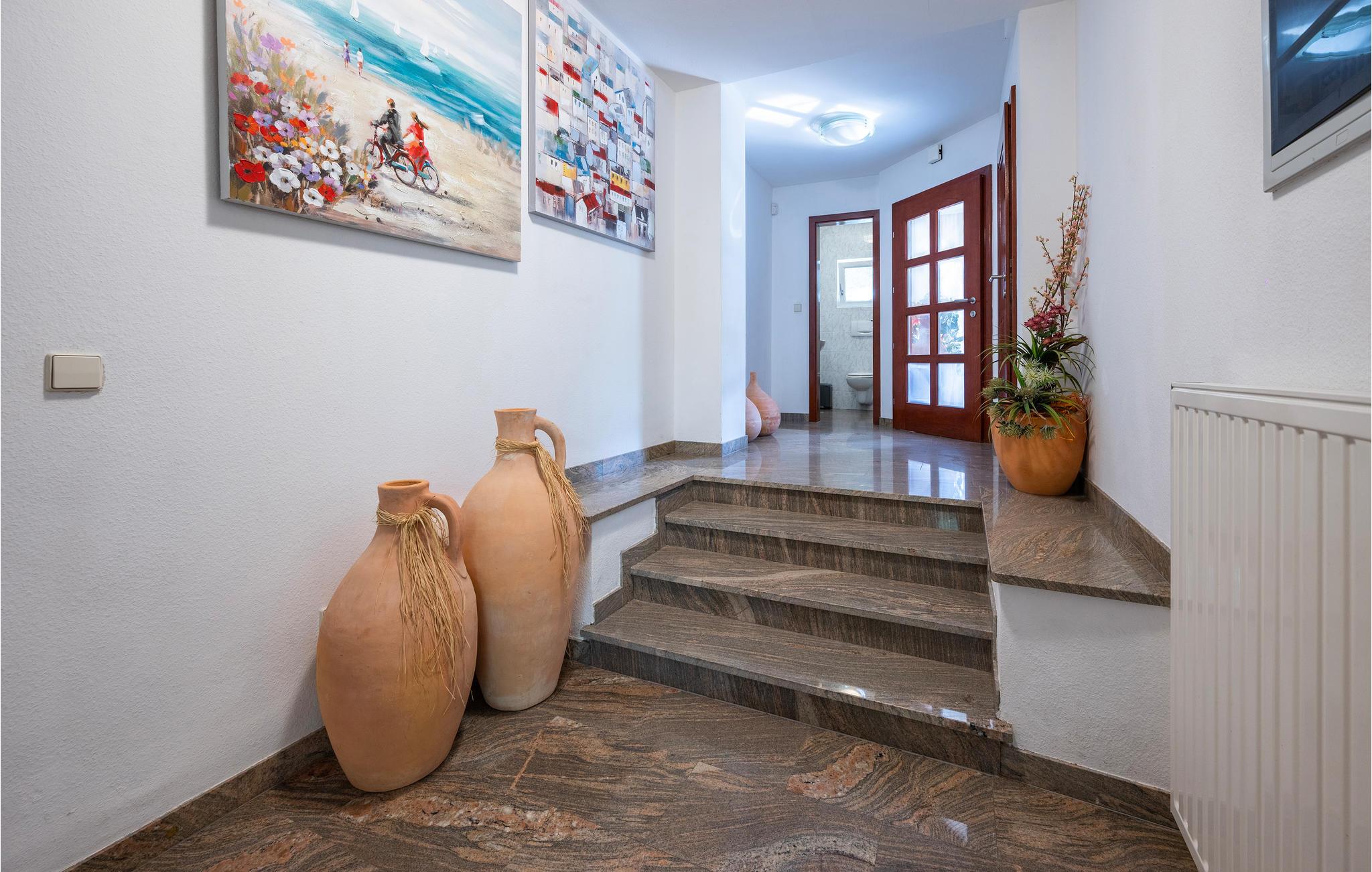På en bakke i Pjescana Uvala, et malerisk feriested kun 3 km fra den romerske by Pula, ligger denne dejlige villa med flere ferielejligheder. Alle lejligheder har smagfulde møbler og en god altan. Fra altanen har næsten alle lejligheder panoramaudsigt over omgivelserne og kysten CIP132 strækker sig over hele 2. sal og består af 4 små enheder, med fem soveværelser. 3 af disse har eget badeværelser, to soveværelser deler badeværelse. På den meget velholdte grund er der en flot pool. Ved poolen står der en grillkamin til rådighed for alle gæsterne. For at komme ned til sand- og grusstranden skal I bare gå 200 m ad en trappe. I kan gå hen til populære restauranter, bl.a. to slowfood-restauranter, på få minutter. I nærheden af havnen i Pula ligger det flotte amfiteatret med de mange forskellige arrangementer. Ejeren udlejer cykler og i perioden fra 1.9 til den 1.6 er denne service sågar gratis. Besøg feriebyen Verudela, som ligger på halvøen overfor Pjescana Uvala. På restauranterne bliver man forkælet med det lokale. Halvøen har mange grus- og klippestrande, strandbarer og sågar et kasino. Pula indbyder til gadefester, og her findes seværdigheder, butikker og hyggelige cafeer.