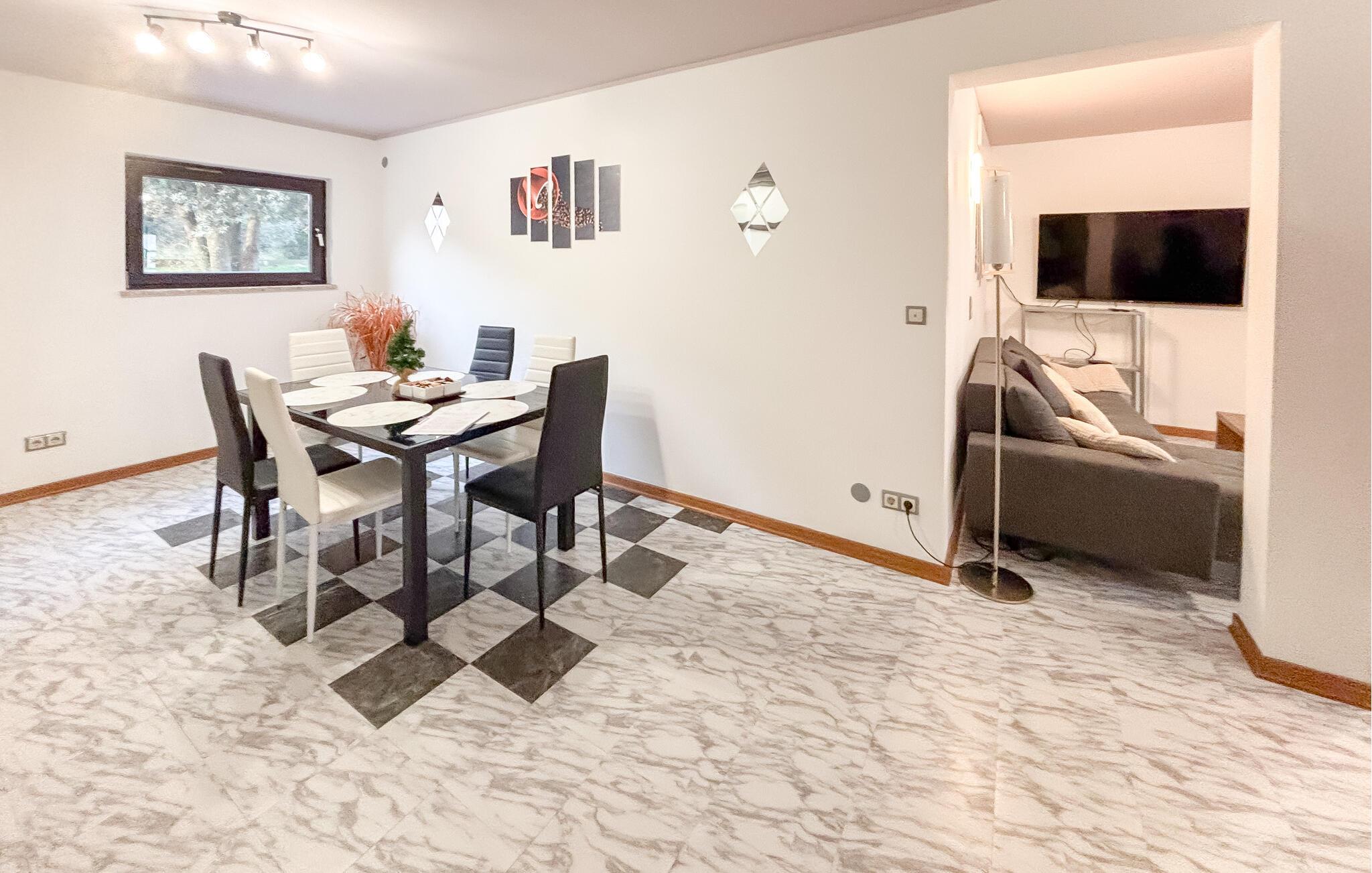 Nyd en komfortabel ferie i denne rummelige ferielejlighed nær stranden. Kun en kort gåtur fra Adriaterhavets klare vand tilbyder denne rummelige og smagfuldt møblerede lejlighed et hyggeligt tilflugtssted, hvor I kan lægge hverdagen langt bag jer. Tilbered lækre måltider, planlæg jeres udflugter til afslappede måltider, og brug det indbydende spisebord til hyggelige spilleaftener eller hyg jer sammen i sofaen med en film. Server morgenmad på terrassen, inden I slentrer til stranden, og tænd grillen ved solnedgang for at nyde stemningsfulde aftener med vin og stearinlys. I Pula kan I besøge det imponerende amfiteater og de romerske ruiner, tage en bådtur langs Istriens kyst og snorkle i skjulte bugter. Cykl gennem de maleriske olivenlunde og vinmarker omkring Pjescana Uvala, og stop ved en lokal vingård eller kro for at prøve istriske specialiteter. Besøg de idylliske strande i Medulin eller Verudela, og vandr gennem den idylliske naturpark Kap Kamenjak.