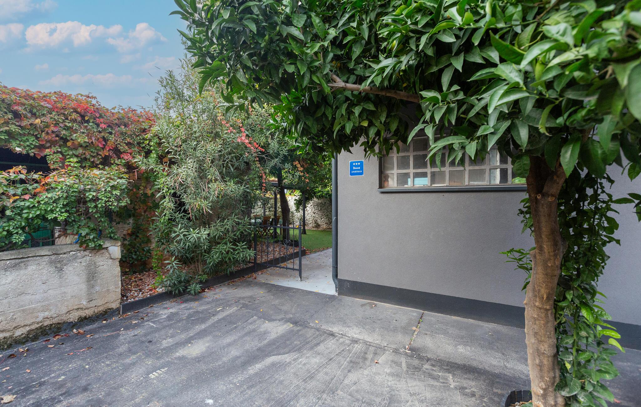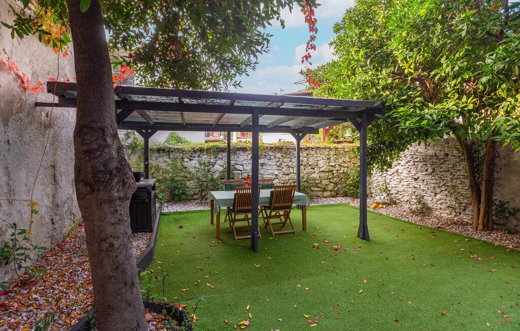 En overdækket terrasse i haven skaber en rolig oase, hvor I kan nyde en drink og afslutte dagen i afslappet stemning. Lejligheden er udstyret med alt, hvad I har brug for til et behageligt ophold.
