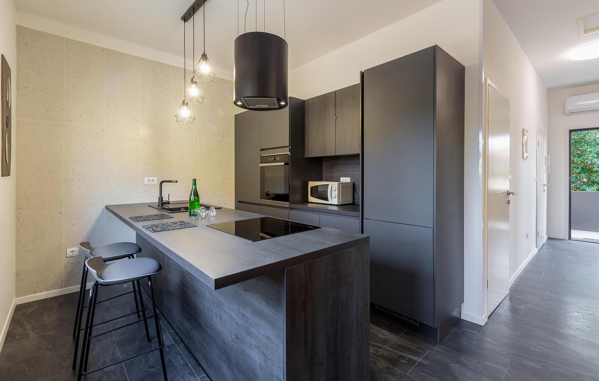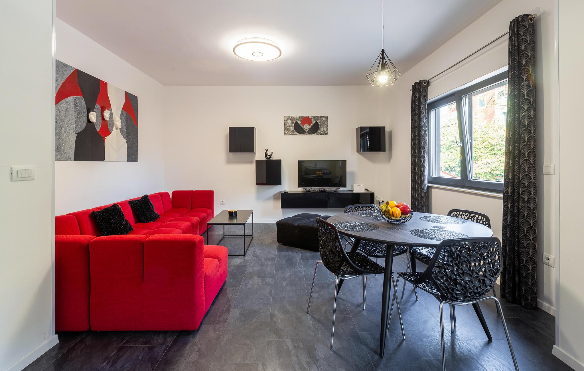 Denne elegante ferielejlighed i Pula kombinerer moderne komfort med sofistikeret indretning. Det veludstyrede køkken lægger op til at lave lækre måltider sammen, mens den åbne opholdsstue tilbyder det perfekte sted at slappe af efter en dag fyldt med oplevelser i byen eller ved stranden.