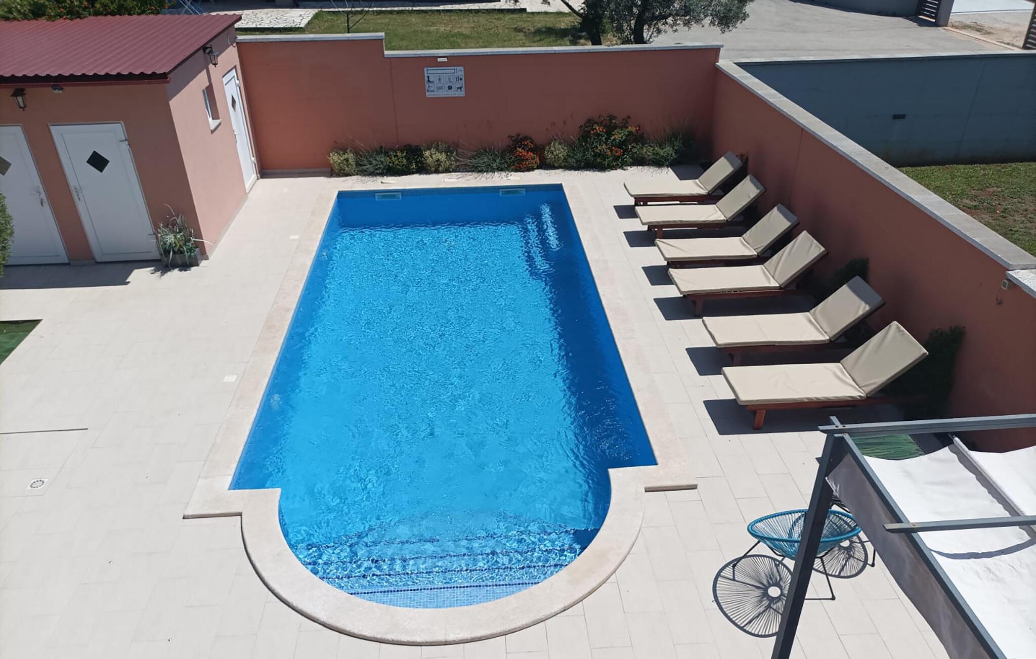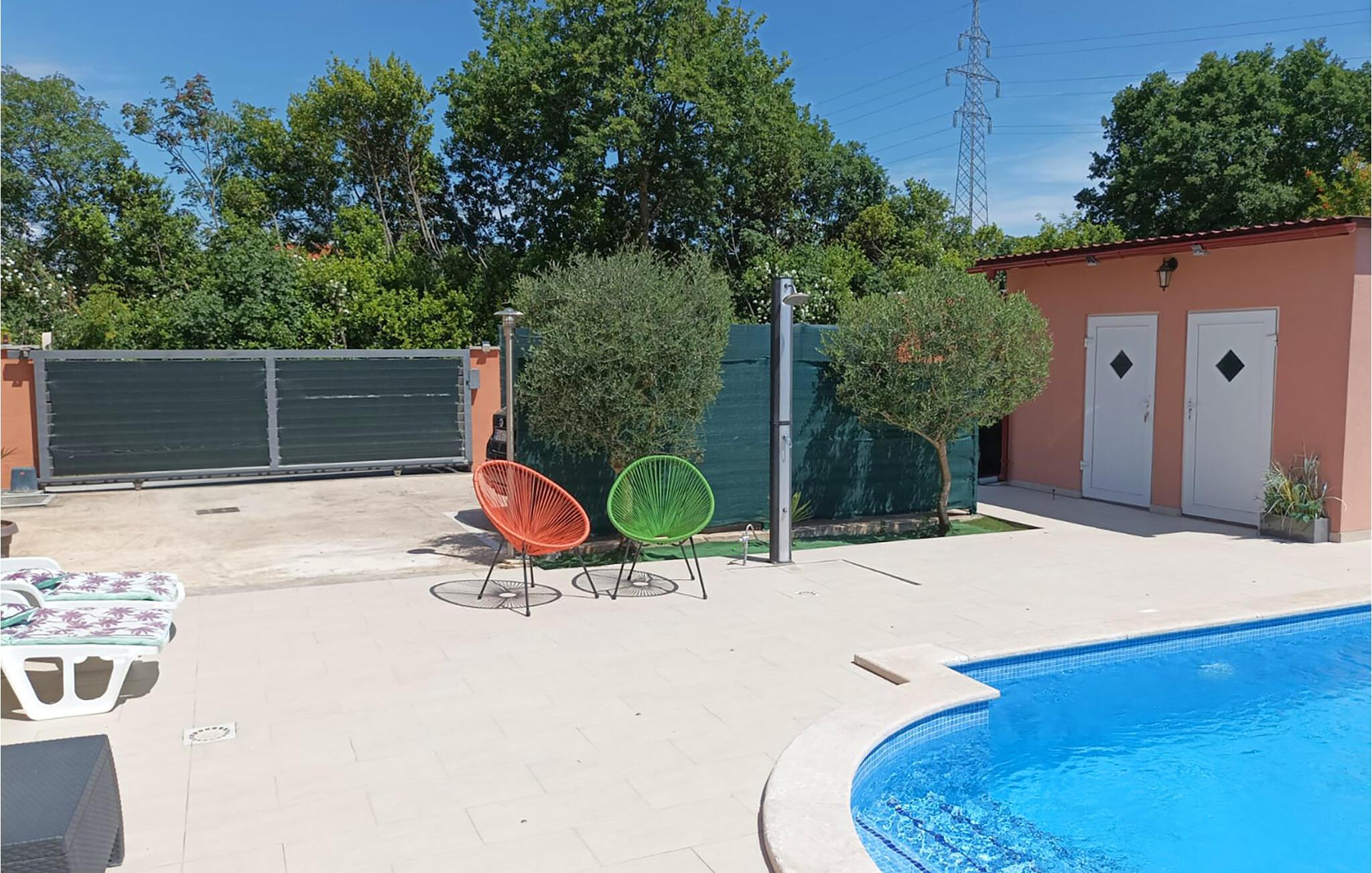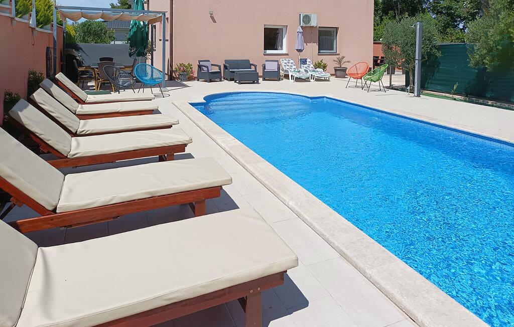 Udenfor er der en vidunderlig fælles pool og en rummelig solterrasse med komfortable liggestole. Forkæl jer selv med en forfriskning her og fejr en hyggelig grillaften i det fri.