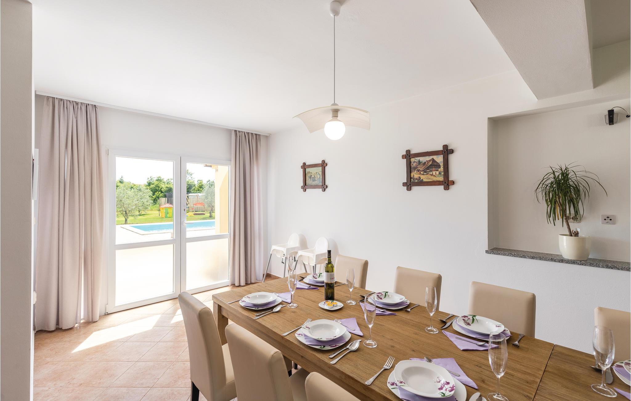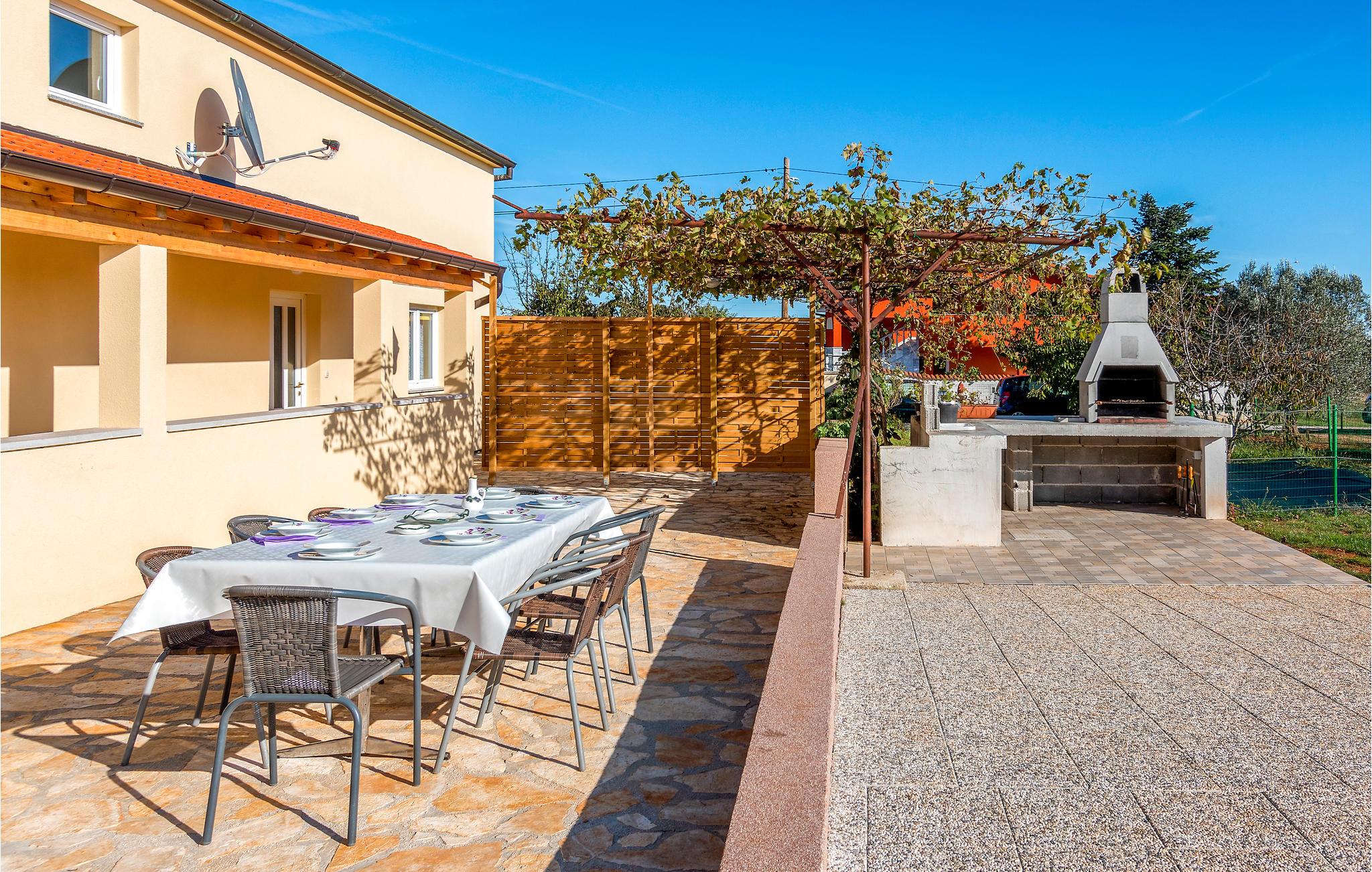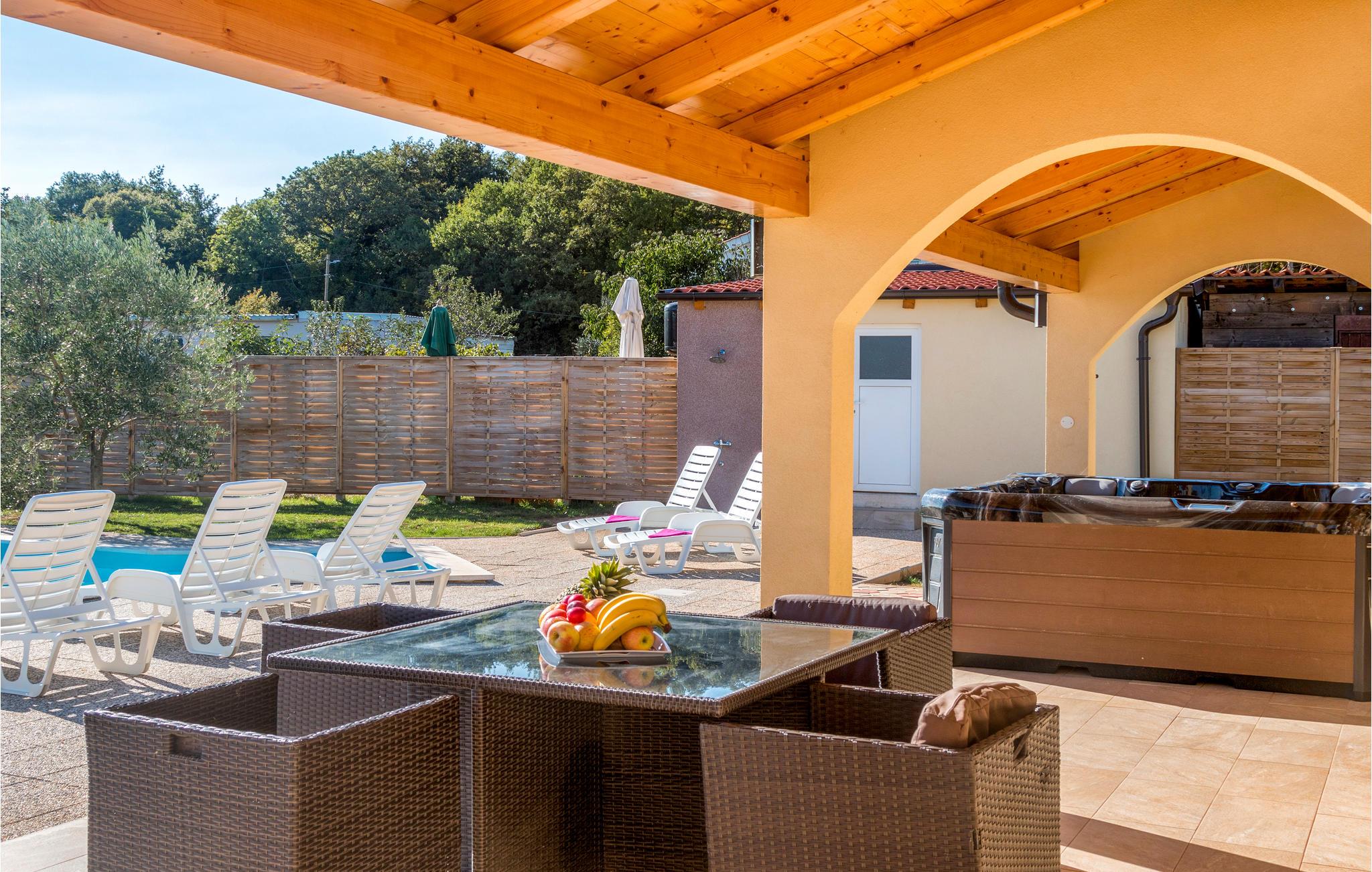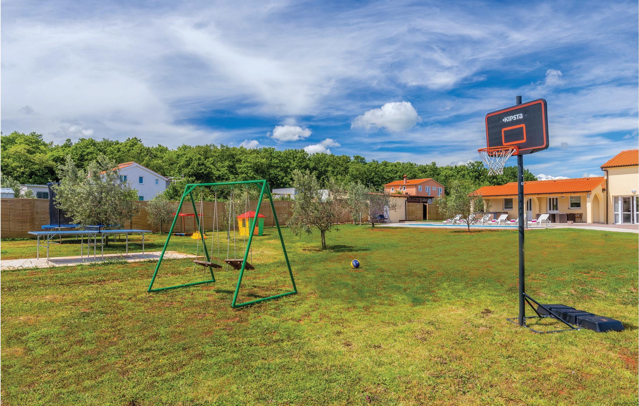 I den lille landsby Radeki Glavica, i nærheden af Pula ligger dette indbydende feriehus med stor Pool, whirlpool i det fri, Sauna og talrige aktivitetsmuligheder. På grund af størrelsen og det enestående udstyr er dette komfortable hus perfekt til store familier eller hvis vennegrupper rejser sammen. Grunden hvor der er pool, plæne, sportsredskaber, grill og terrasse er indhegnet, så børnene kan lege uforstyret. Selvom beliggenheden er dejlig rolig kan adrenalinhungrende feriegæster tage til de nærtliggende Quad Club, rideskolen eller I kan bade ved strandene Duga Uvala, Medulin, Premantura eller Pula med de mange historiske levn fra områdets romerske fortid.