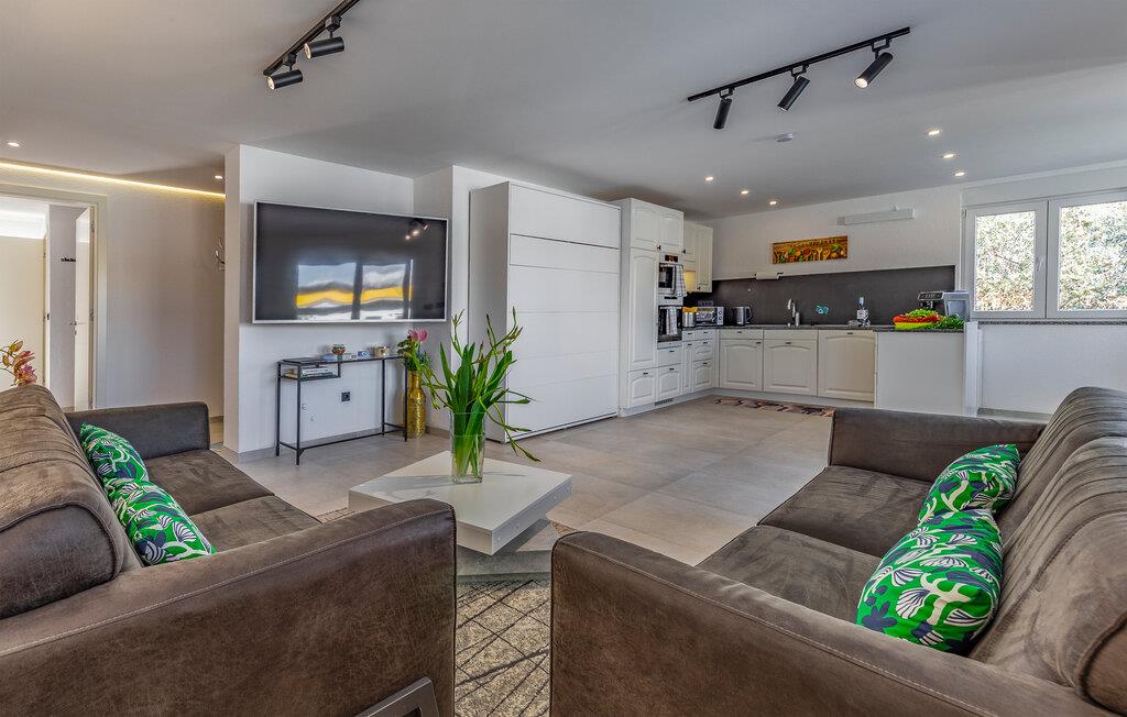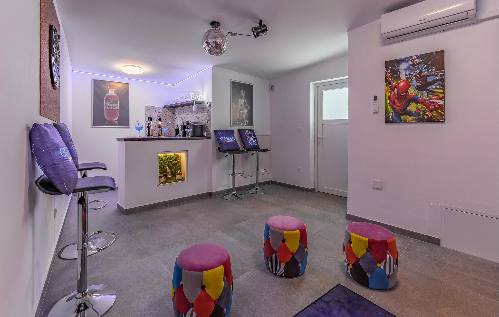 Dette rummelige feriehus forkæler jer med talrige ekstraudstyr og et lyst og stilfuldt interiør. Fremtrylle kulinariske højdepunkter i det moderne køkken, forkæl jer selv med behagelige stunder i saunaen, træn i fitnessrummet, spil Nintendo Wii eller organiser en filmaften.
