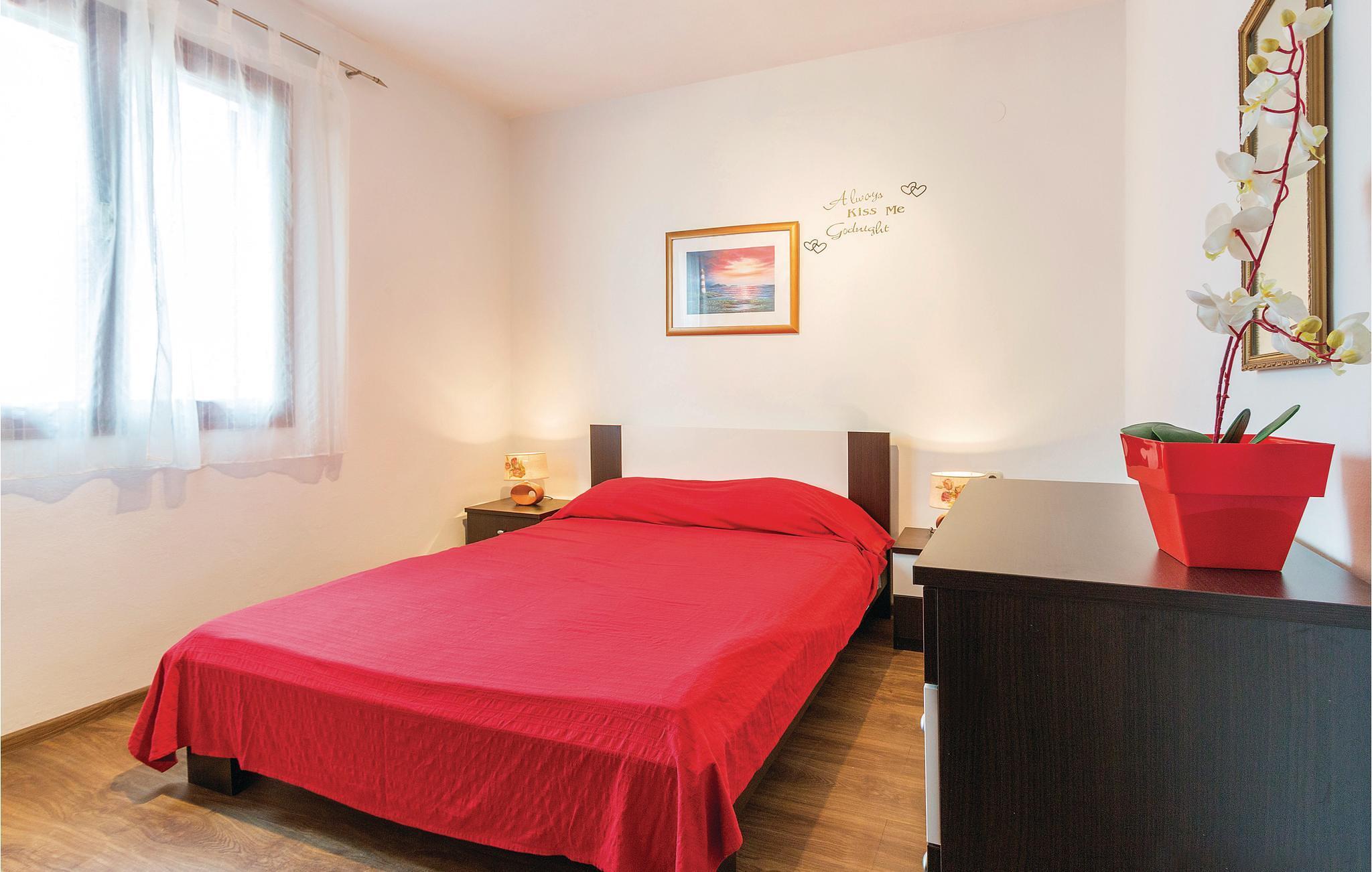 Medulin, Premantura og Banjole kan nås hurtigt i bil. Huset er praktisk og funktionelt møbleret, har en stue med aircondition, et udstyret køkken, to soveværelser, et badeværelse og en åben terrasse. På den indhegnede ejendom er der en grill og et skyggefuldt træ, hvor du kan tilberede lækre måltider til hele familien.