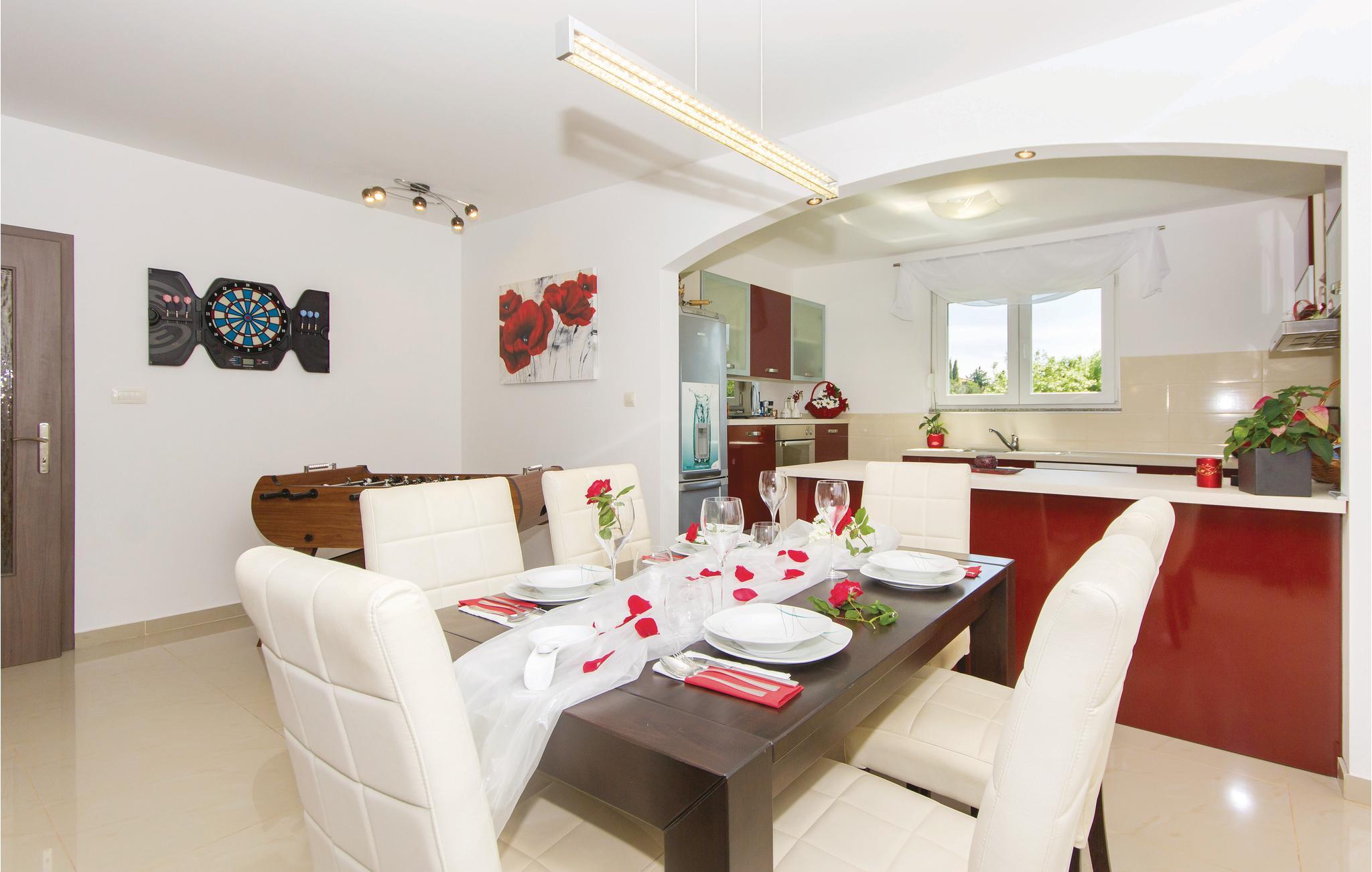 Dette skønne feriehus med pool ligger i den lille by Sisan, kun få minutter i bil fra skønne klippe og kiesstrande. På den indhegnede grund med velplejet have, er der swimmingpool, en grill og en åben terrasse. Huset rummer tre soveværelser, to badeværelser og en rummelig stue i åben kombination med køkken og spiseafdeling. I huset er der bordtennis, dart og bordfodbold – her behøver I ikke kede jer. Nær de populære turistmetropoler Pula og Medulin, her behøver I ikke kede jer! I kan også besøge de mange historiske seværdigheder og nyde sommerunderholdning under åben himmel i det berømte amfiteater.