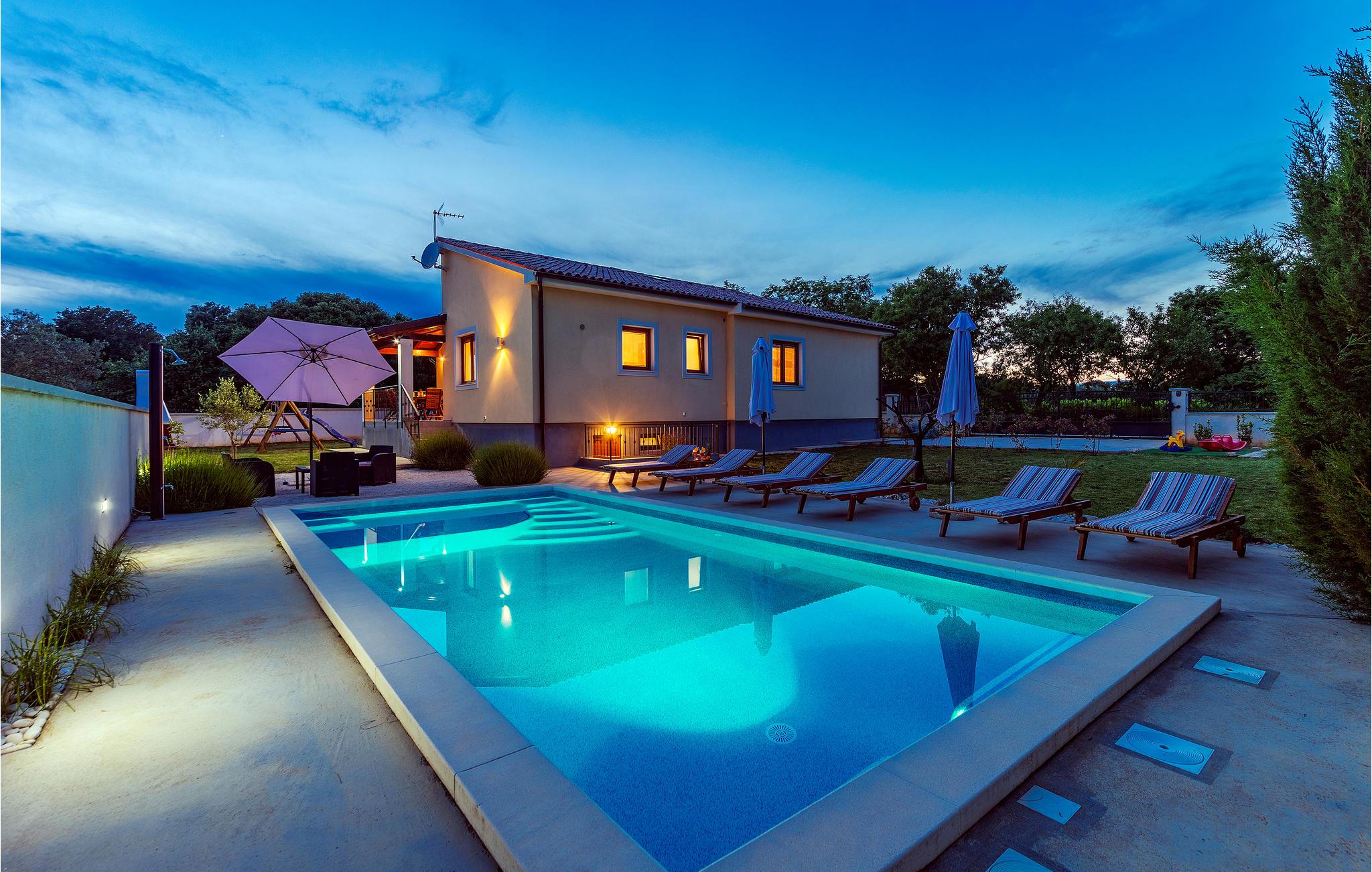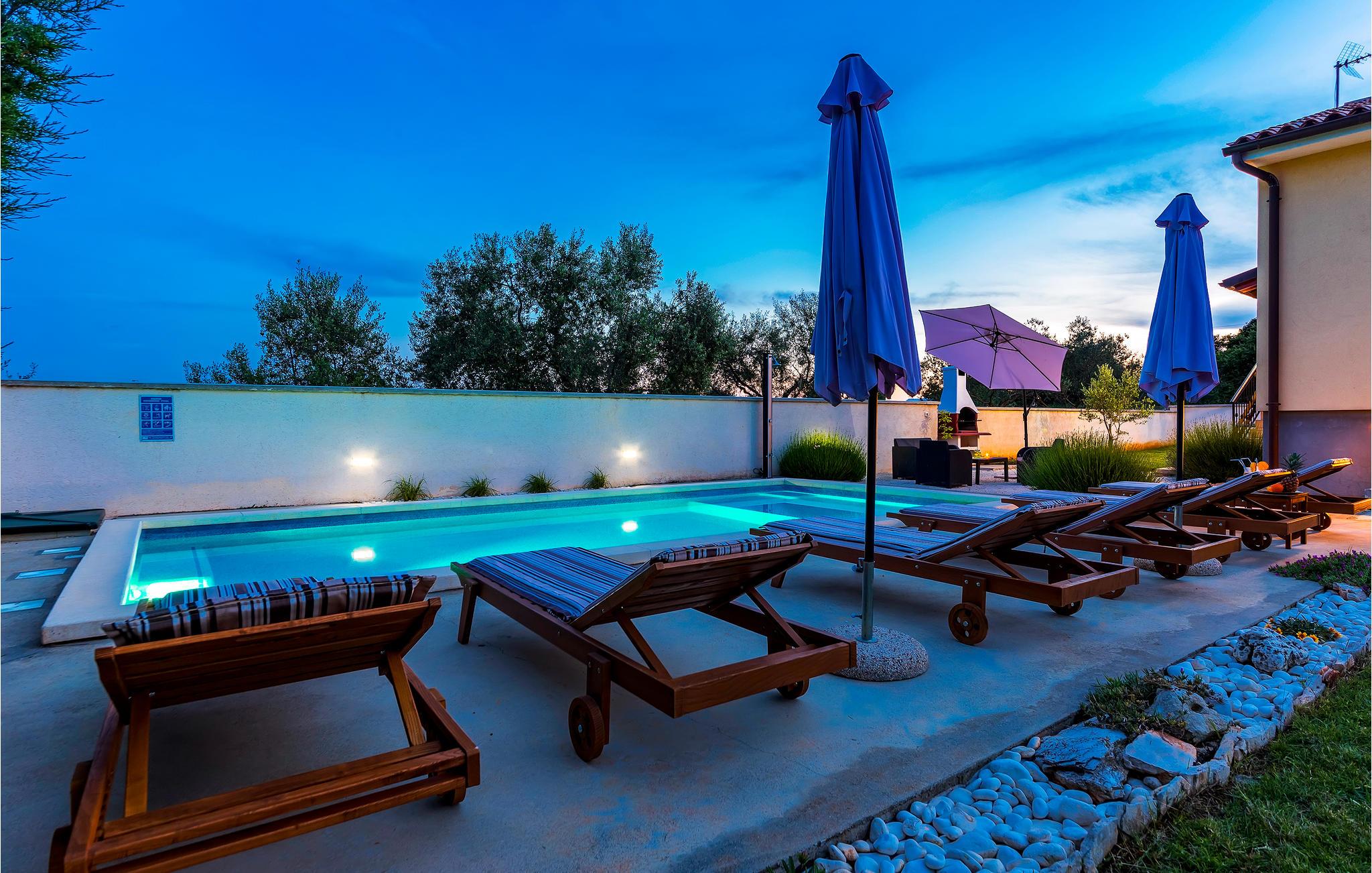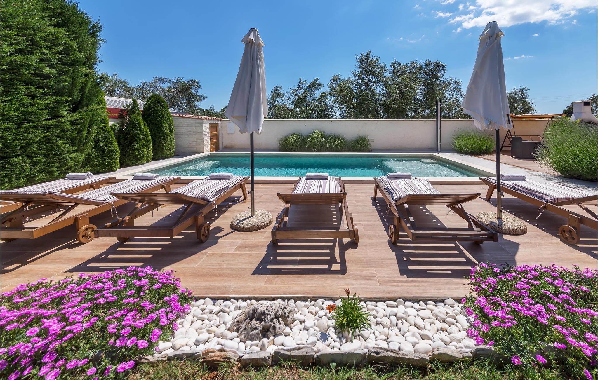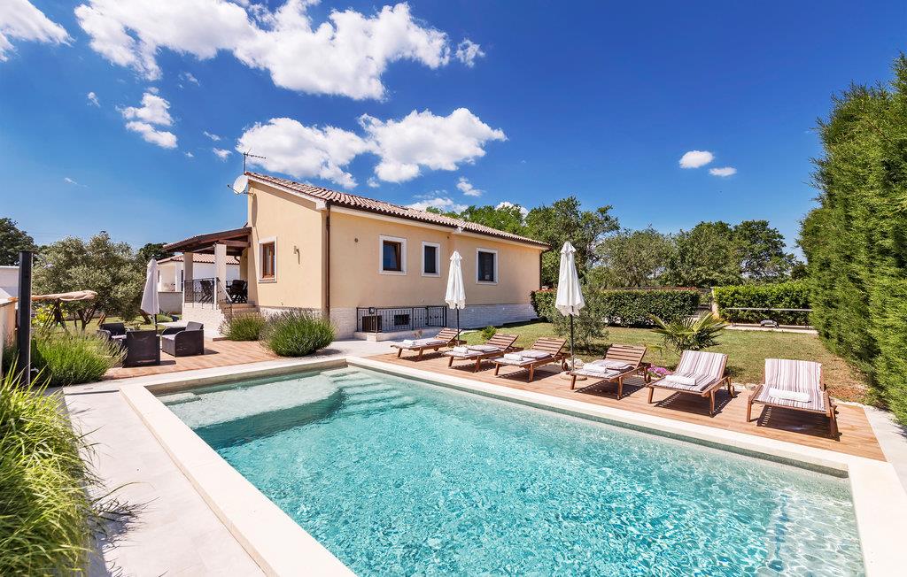 Dette sommerhus er beliggende i den lille og roligt by Sisan kun få kilometer fra Pula, Istriens største by. Med moderne møbler og udsigt over vinmarker og olivenlunde er denne feriebolig det ideelle sted for ro og afslapning fra hverdagens stress. Fra huset kan du gå direkte ud på terrassen, hvor du kan læse din avis i fred. Hvis du ønsker en aktiv ferie er her mulighed for gå- og cykleture samt ridning. De sidste halvtreds meter op til huset er af en grusvej.