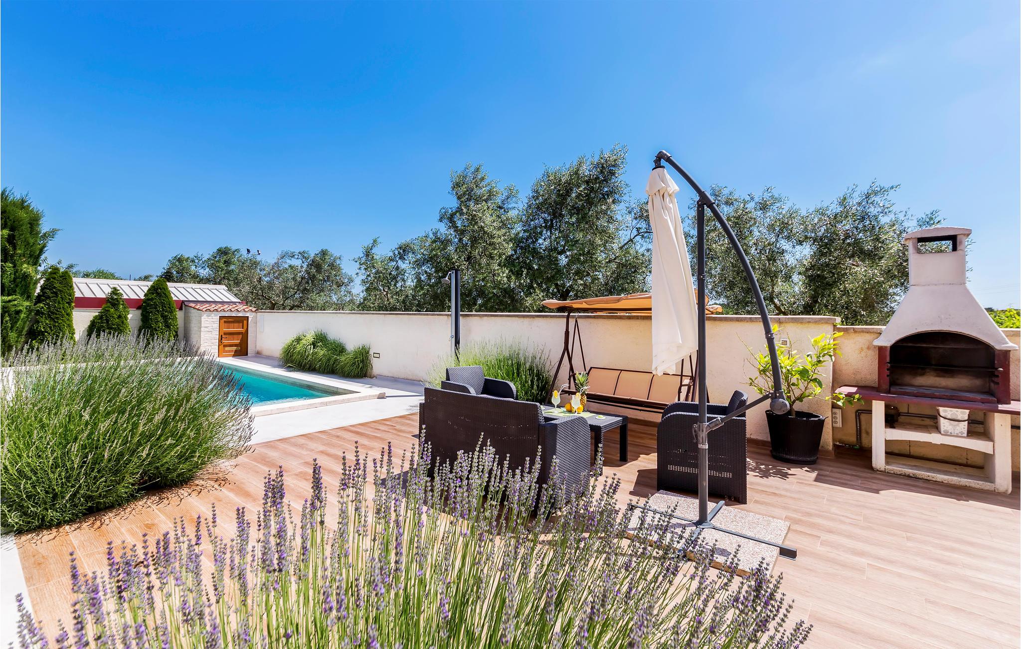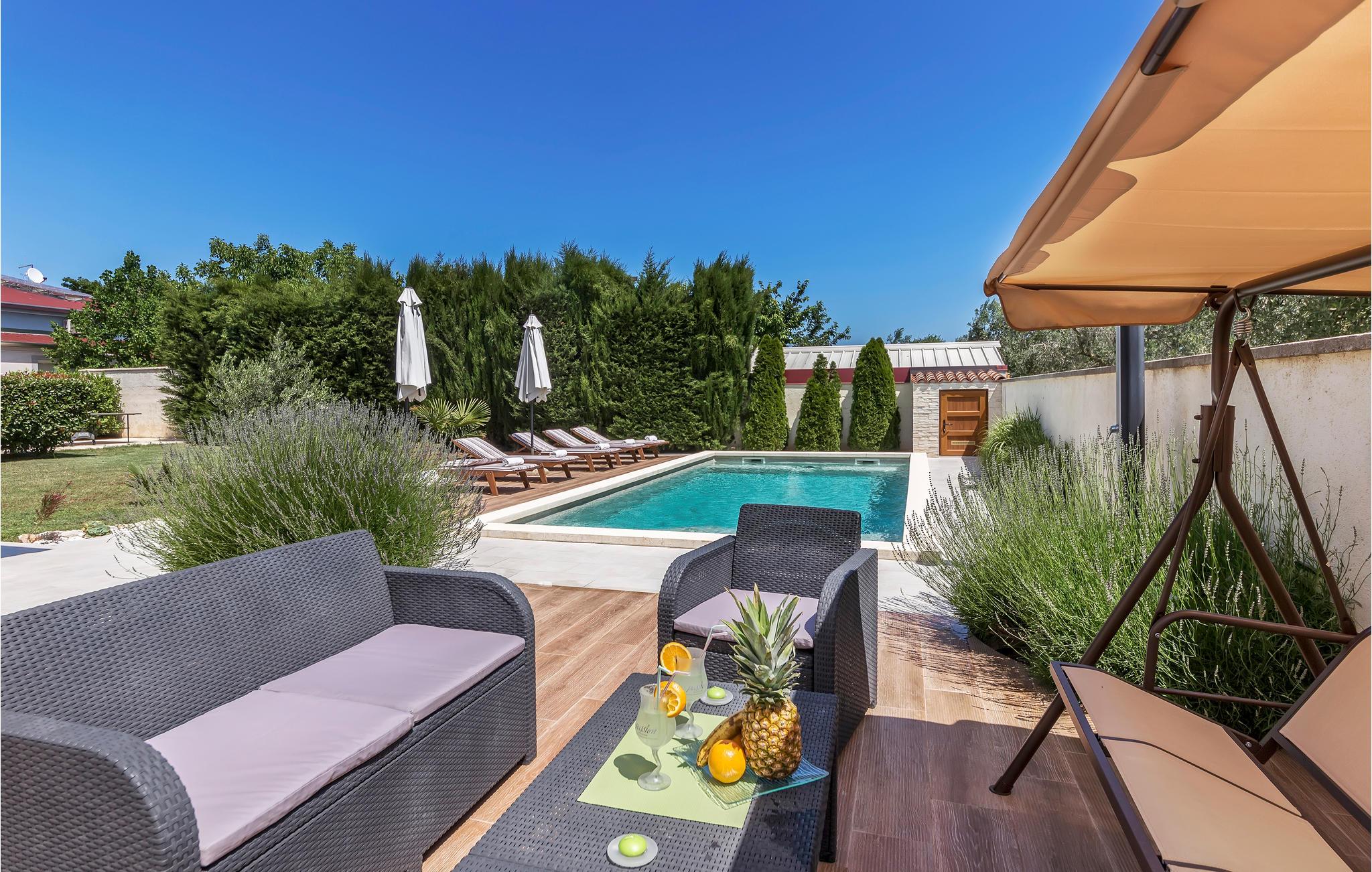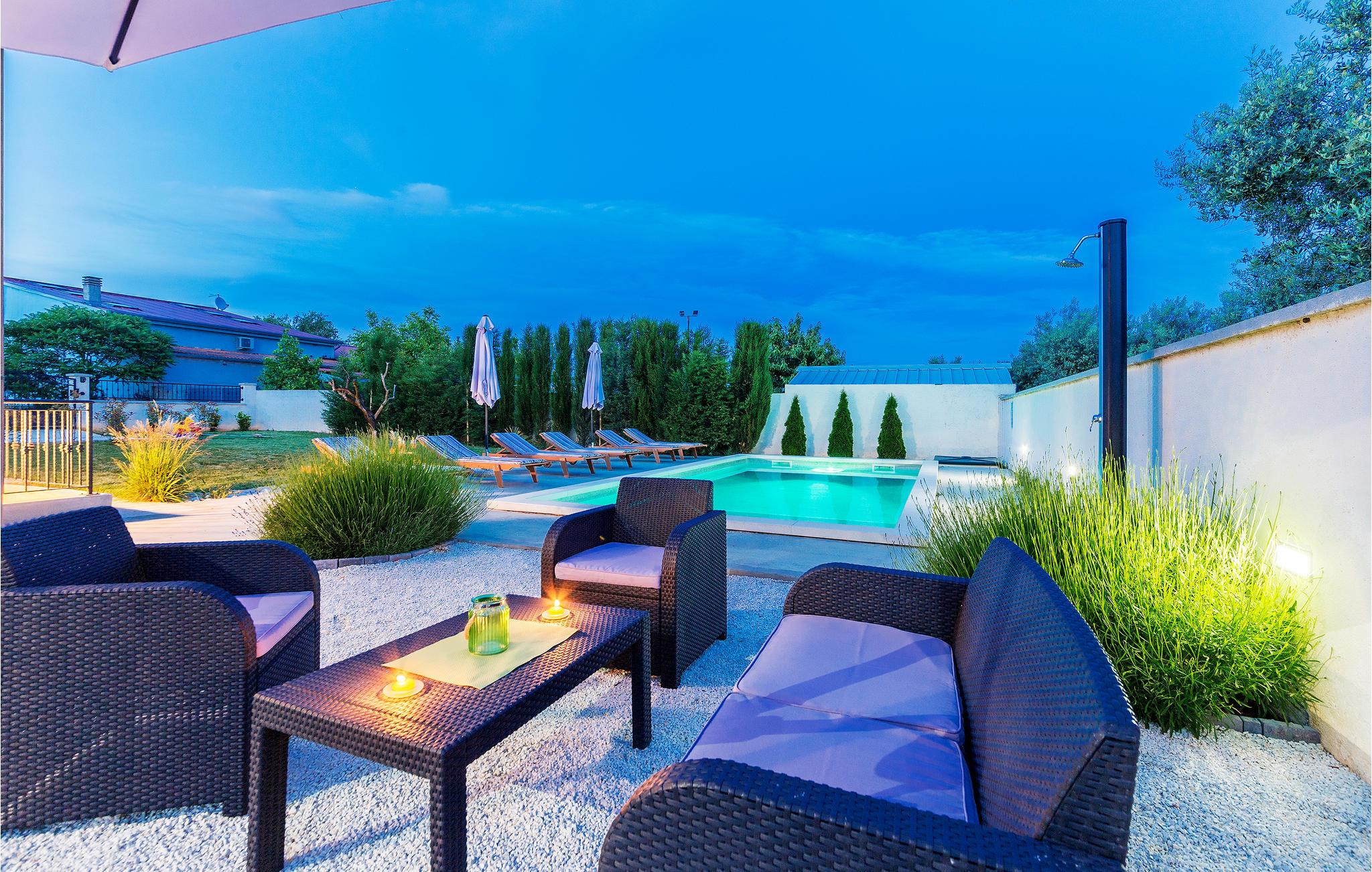 Dette sommerhus er beliggende i den lille og roligt by Sisan kun få kilometer fra Pula, Istriens største by. Med moderne møbler og udsigt over vinmarker og olivenlunde er denne feriebolig det ideelle sted for ro og afslapning fra hverdagens stress. Fra huset kan du gå direkte ud på terrassen, hvor du kan læse din avis i fred. Hvis du ønsker en aktiv ferie er her mulighed for gå- og cykleture samt ridning. De sidste halvtreds meter op til huset er af en grusvej.