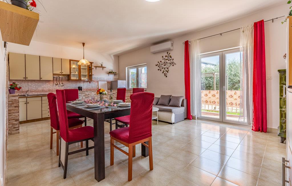 Denne halvdel af et dobbelthus har egen private pool og ligger i en rolig del af den lille by Sisan. I bor kun i stueplan da første sal er lukket af. Det råder over separat indgang og en indhegnet del af grunden. I poolen kan I svømme en afslappende runde, tørre jer i solen. På klippestrandene i nærheden kan I opleve sol, hav og lifligt strandliv, eller I kan tage til Medulin med det store udbud af underholdning, mens den gamle by Pula med de mange romerske monumenter vil begejstre de historieinteresserede.