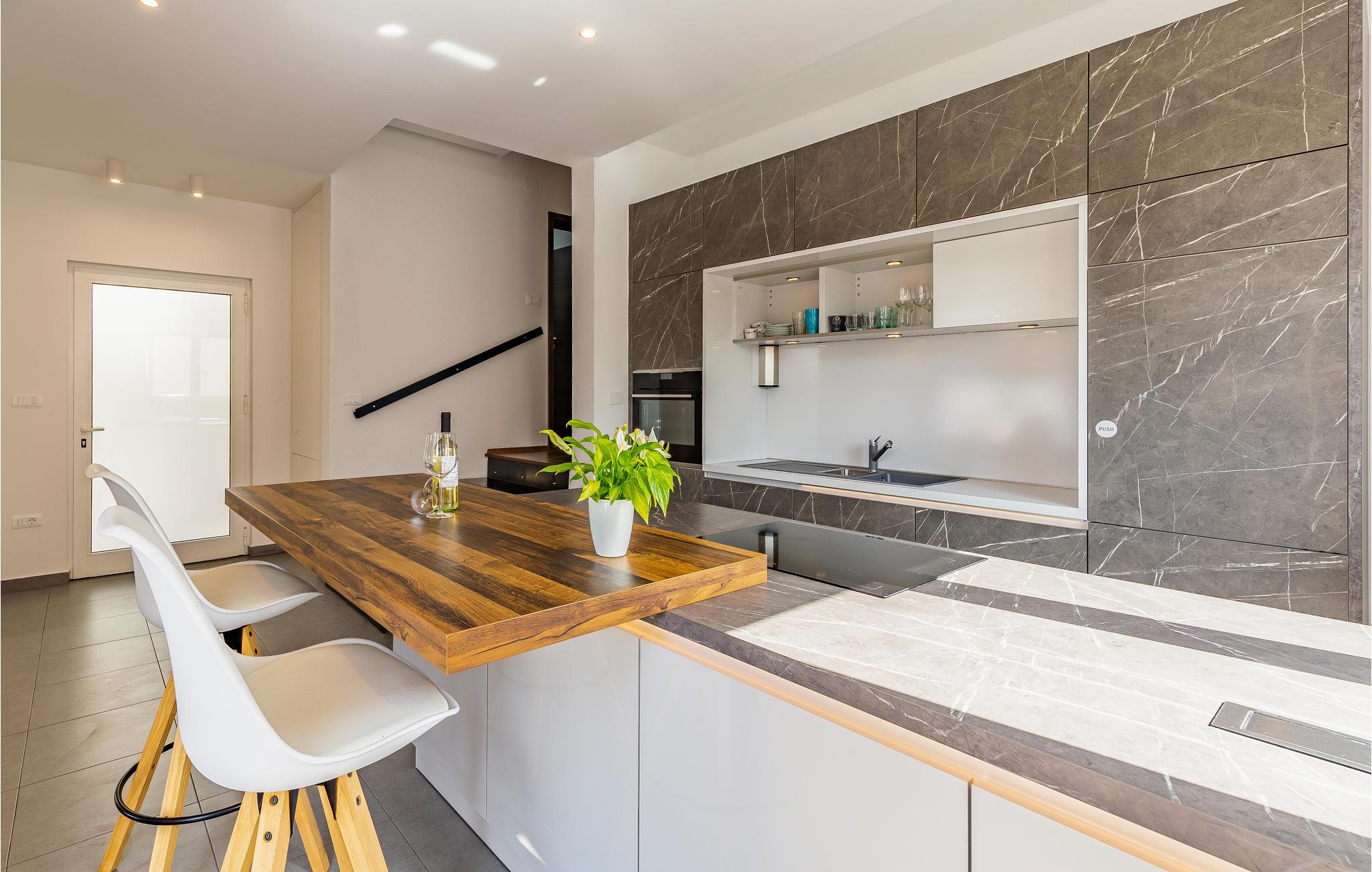 Dette smagfuldt indrettede feriehus ligger i en indhegnet have, i den lille by Šišan, ved den større by Pula med mange seværdigheder. Boligen strækker sig over to etager der er forbundet med indendørs trappe. I den indhegnede have er der overdækket terrasse og grill, her er det skøn at sidde om morgenen og spise morgenmad og så slappe af her om aftenen, mens maden steger på grillen og børnene leger i haven. I kan hoppe i poolen lige når I har lyst, til en svømmetur eller sjov og vandpjaskeri. Det er nemt og hurtigt at gå til centrum af byen, med lille supermarked, en konoba med lokale lækkerier og en glimrende restaurant. Tag en tur til Pula og se de mange seværdigheder fra romertiden og besøg den livlige lille badeby Medulin, hvor I kan tilbringe lange badedage på byens strande.