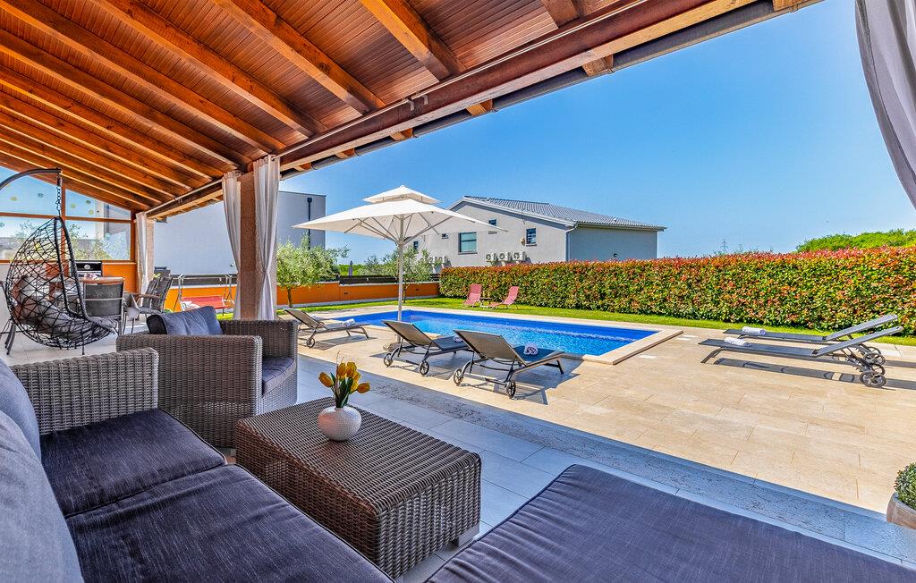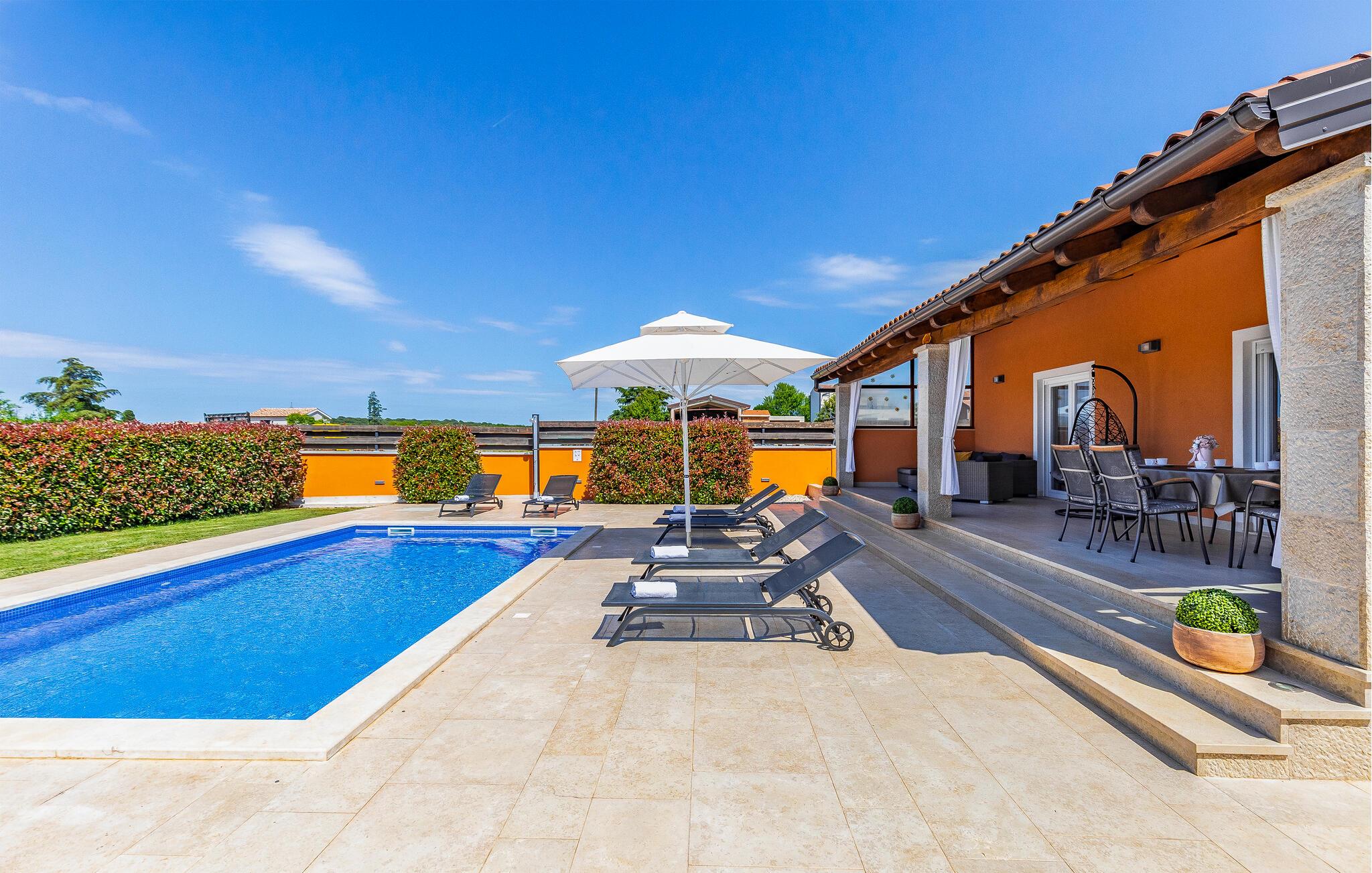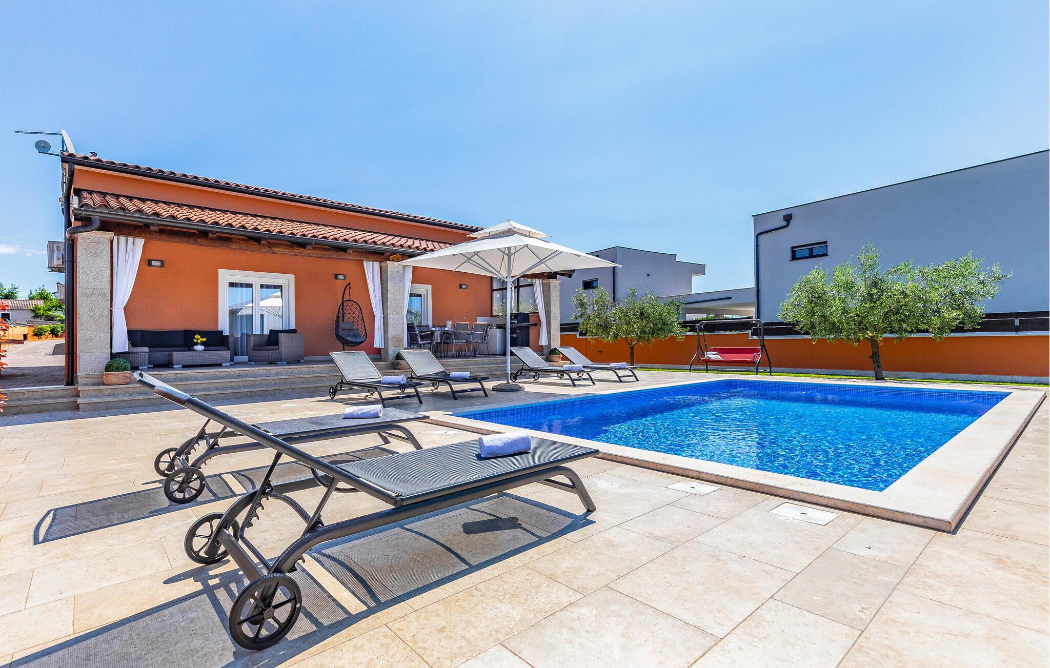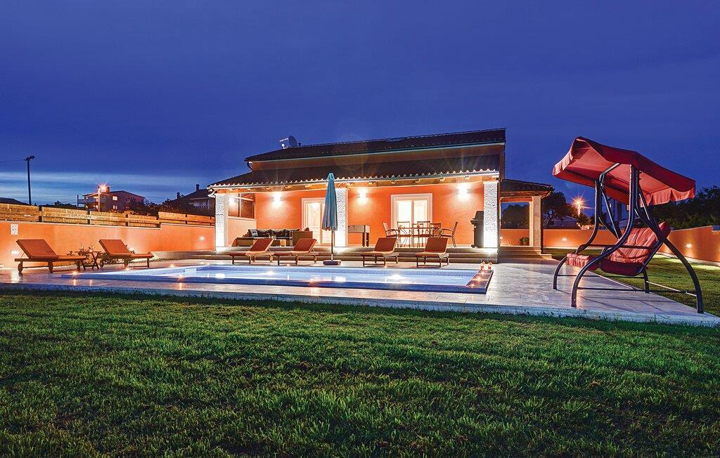 Tilbring en dejlig ferie i denne bungalow ved Pula. Her er I på rette sted til at slippe for hverdagens jag, men heller ikke vil undvære at kunne nå byens centrum samt alle strandene i nærheden på kun ti minutters kørsel. Jeres børn kan nyde ubesværet leg på den store, indhegnede grund, og I kan forfriske jer i poolen. Der er heller ikke langt til en legeplads. Tilbring hyggelige grillaftener på den overdækkede terrasse med udendørs køkken. Besøg feriebyen Medulin med sandstrand, mange fritidsmuligheder og restauranter. Nyd det krystalklare hav, de skjulte bugter og det usædvanlige dyre- og planteliv ved Kap Kamenjak.