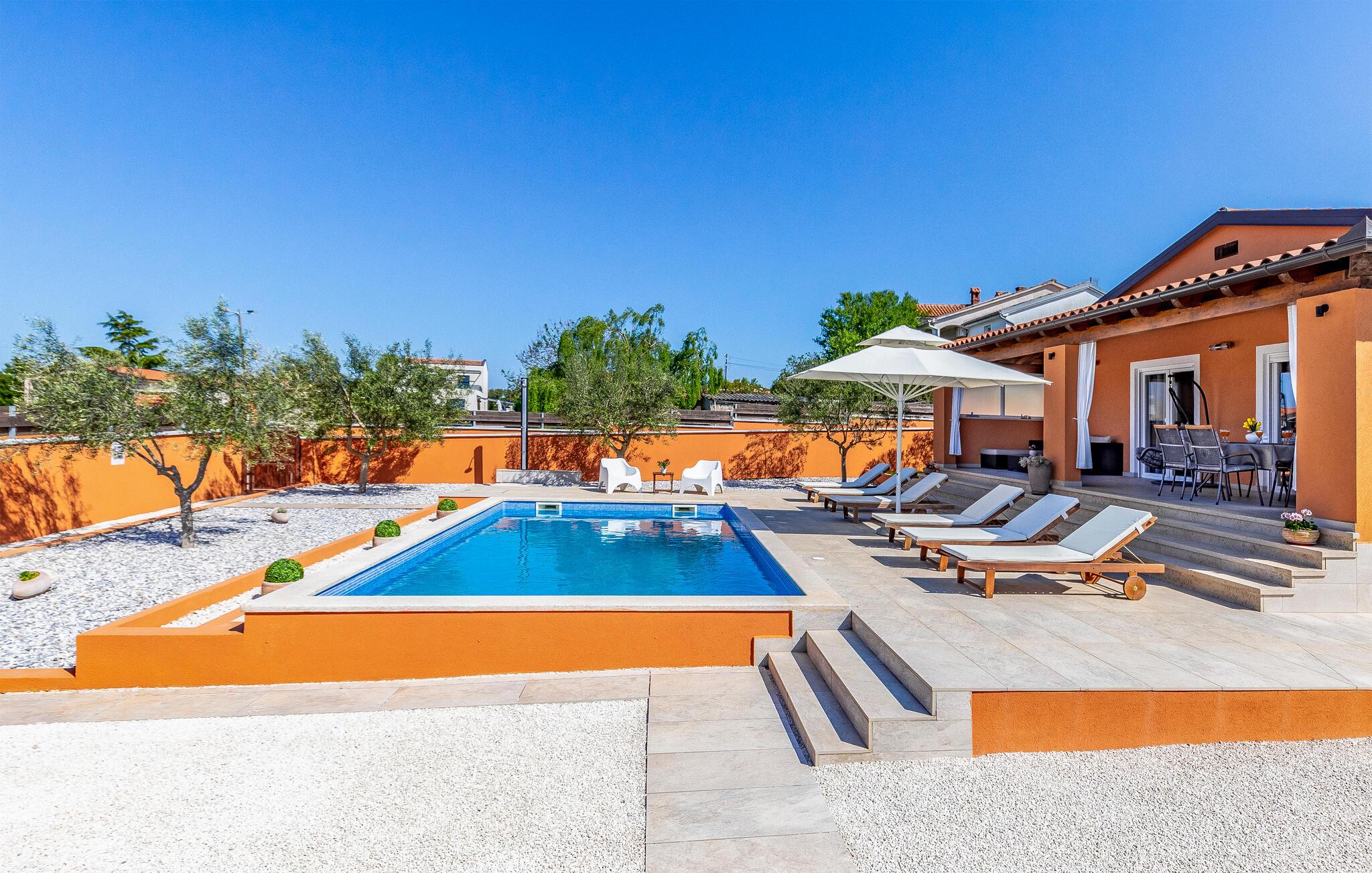 Det ligger i nærheden af ??byen Pula og er ideel til feriegæster, der ønsker at nyde roen her og få batterierne ladet op. På få minutter i bil kan I nå byens centrum og forskellige strande, men badeglæden er faktisk endnu tættere. En forfriskende pool venter på jeg på den indhegnede ejendom. Efter lange badedage kan I sidde behageligt sammen med familie og venner på den overdækkede terrasse, mens I griller.