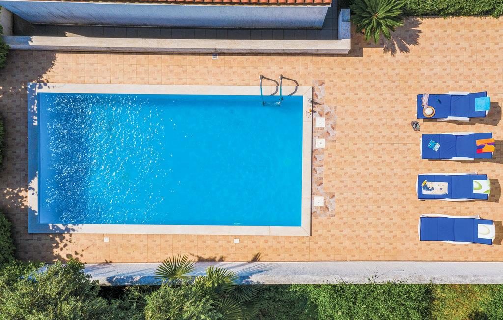 I den sydvestlige del af halvøen Istrien ligger dette store og rummelige hus, som indbyder til en ferie med hele familien. Stranden ved Stinjan, der er omgivet af en pinjeskov, og de utallige små bugter er perfekte, når I bare vil solbade eller dyrke vandsport. Besøg også de mange fiskerlejer i området med de kendte istriske specialiteter. På den skønne terrasse kan I sidde og drikke en kop kaffe og lytte til fuglene der kvidrer lystigt. Efter en forfriskende svømmetur i poolen kan I nyde en cocktail. Tilbring dejlige hyggestunder sammen mens I tilbereder lækre retter på grillen. Den interessante by Pula byder på en bred vifte af kulturelle arrangementer og masser af underholdning, specielt under den kendte filmfestival. Pula ligger kun fem km væk og er ideel for en familieudflugt hvor I kan tage på sightseeing og opleve en del af de mange seværdigheder i byen. Et must under et besøg i Pula er blandt andet Pula Amfiteater.