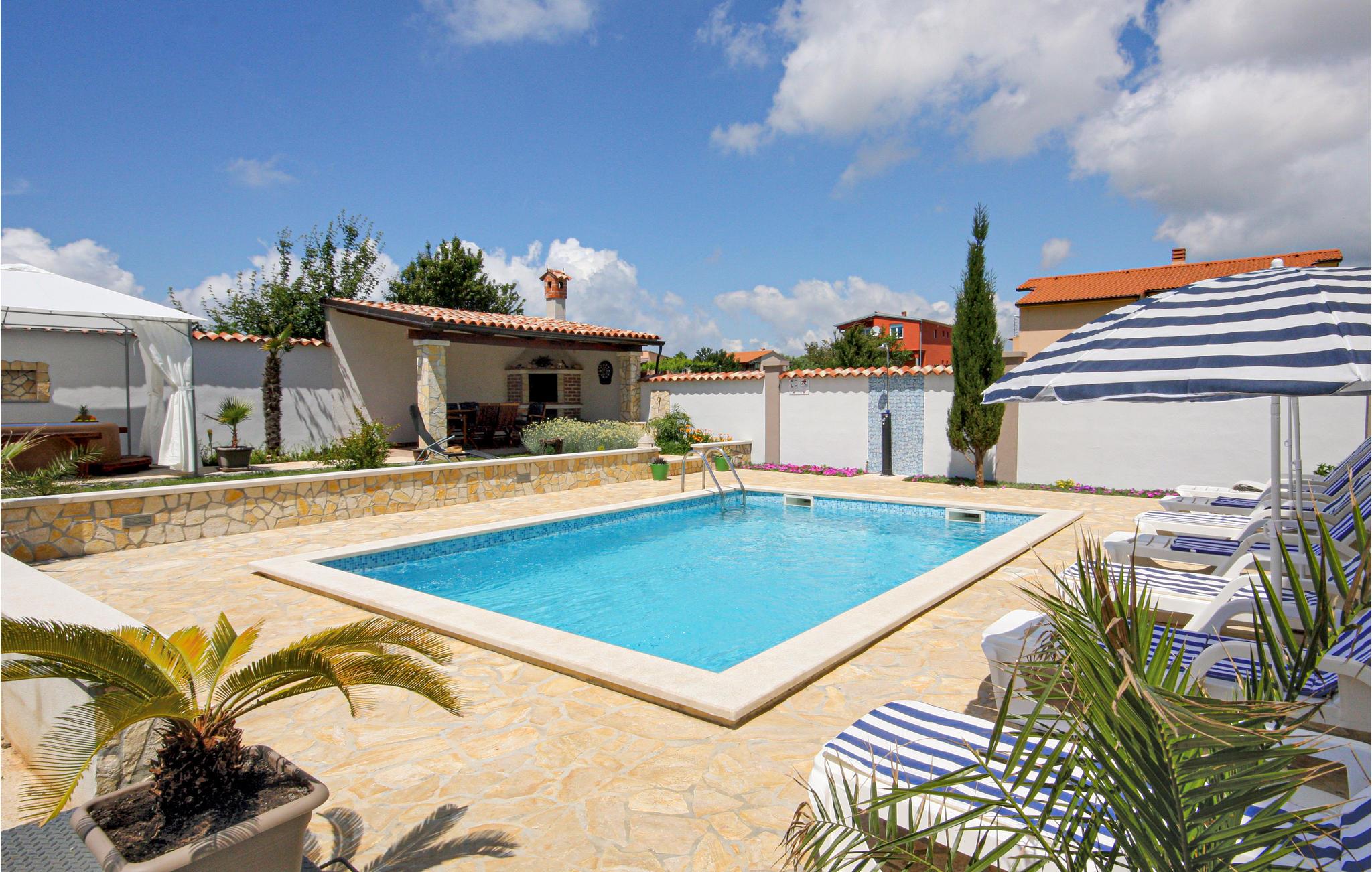 Dette feriehus ligger i en stille forstad og har en harmonisk have med pool og en overdækket terrasse med grill, hvor hyggelige aftener og unikke ferieminder bliver skabt.