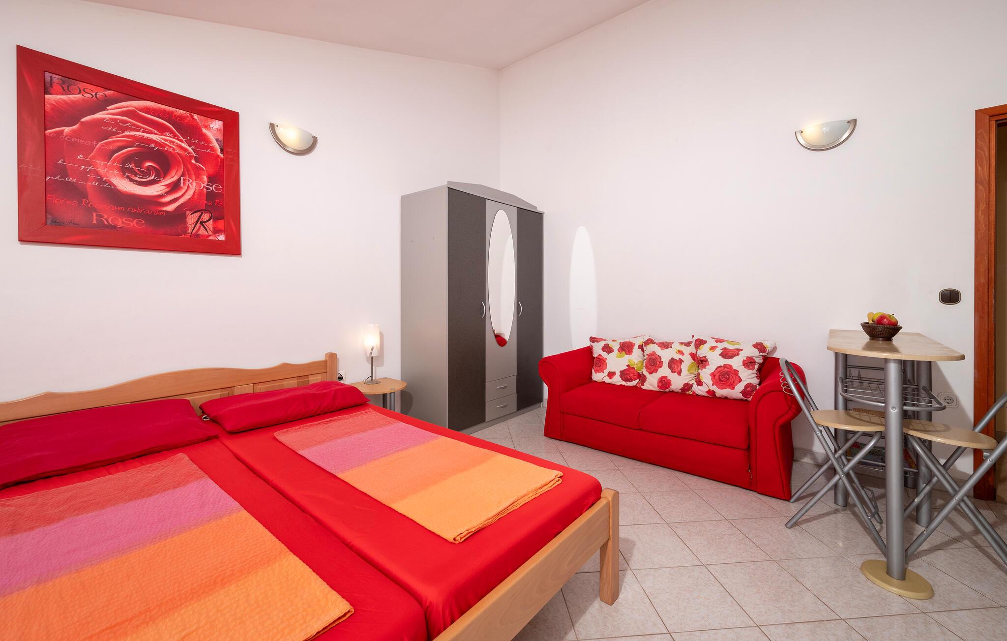 Denne lejlighed giver jer en komfortabel base, som er funktionelt og smagfuldt indrettet. Her har I alt, hvad I skal bruge til nogle fantastiske dage i Kroatien. I har også adgang til en overdækket altan, hvor I kan spise morgenmad og sidde i solen, mens I nyder udsigten til havet og Brijuni-øerne. Der er en ekstra terrasse, som er åben og deles med gæsterne i lejlighed CIP631, -32, -34 og 35. Her finder I også en udendørspool, en grill samt gynger og en vippe til børnene.