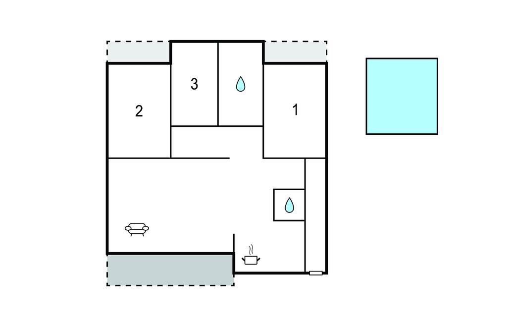 Opholdsstue/køkken - 2 Sovepladser. (Sofa, madras eller lignende).