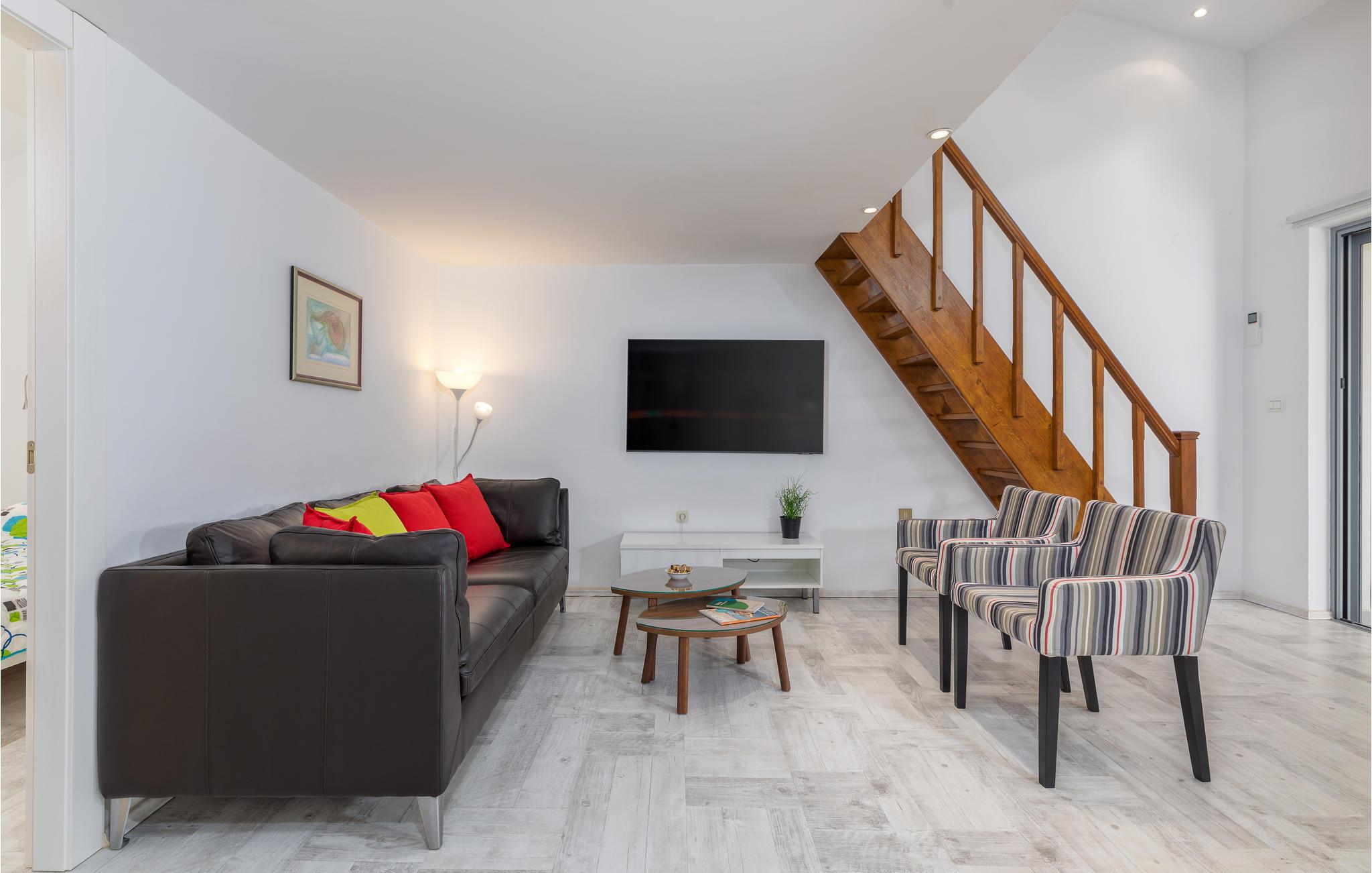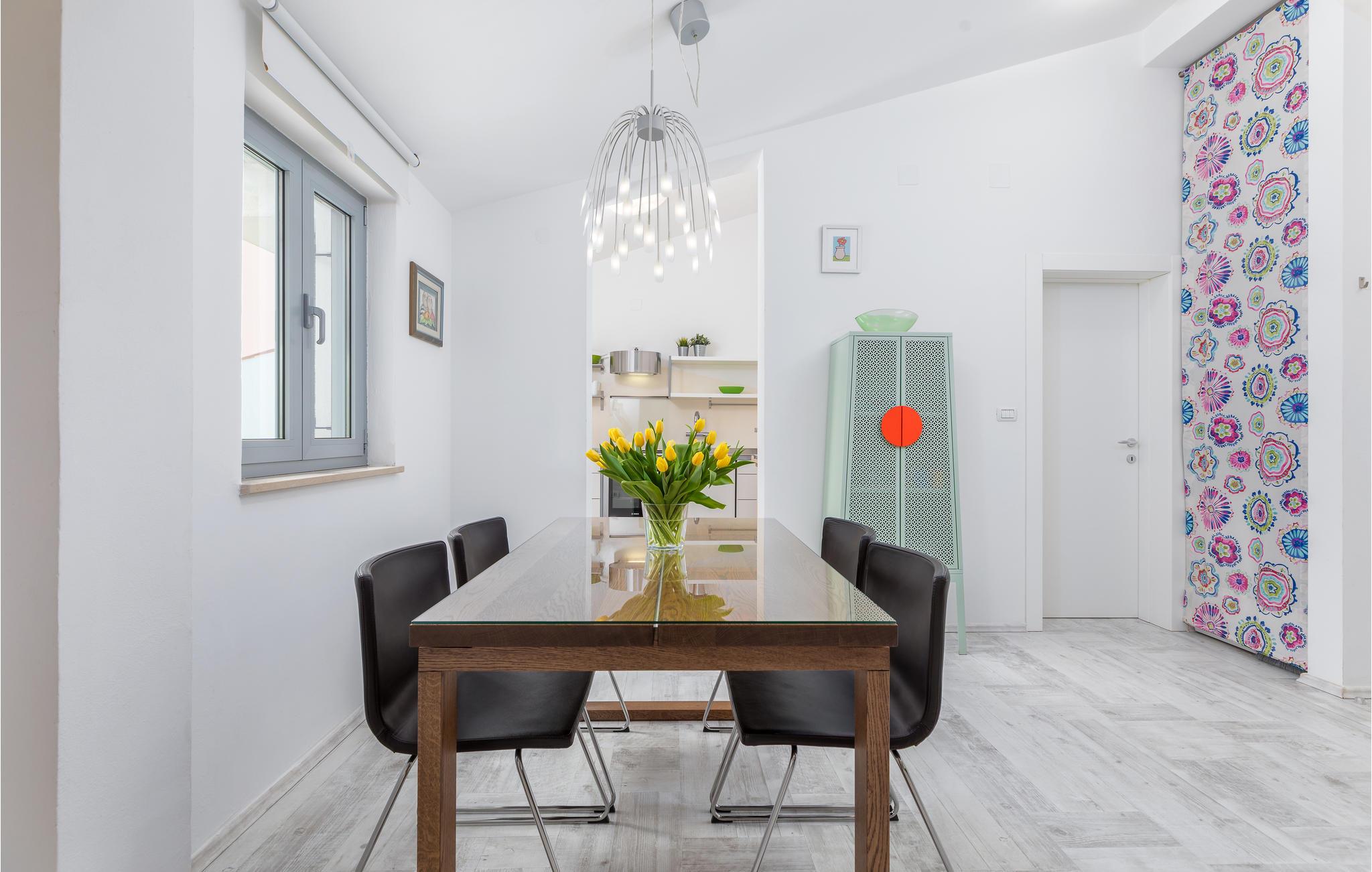 Dette feriehus i den lille by Stinjan ligger tæt på Pula. Det er moderne indrettet, og der er lagt særlig vægt på dejlige detaljer. Rummene er åbne og gennemstrømmet af lys. Opholdsområdet er tænkt som centralt rum med direkte adgang til den andre rum. Hemsen over opholdsområdet giver desuden en særlig charme. Den indhegnede gård og den overdækkede terrasse er ideelle steder til at nyde morgenkaffen og til at lade aftenen slutte harmonisk med et glas vin og grillretter. Kør også byen Pula med talrige mindesmærker og sommerarrangementer.