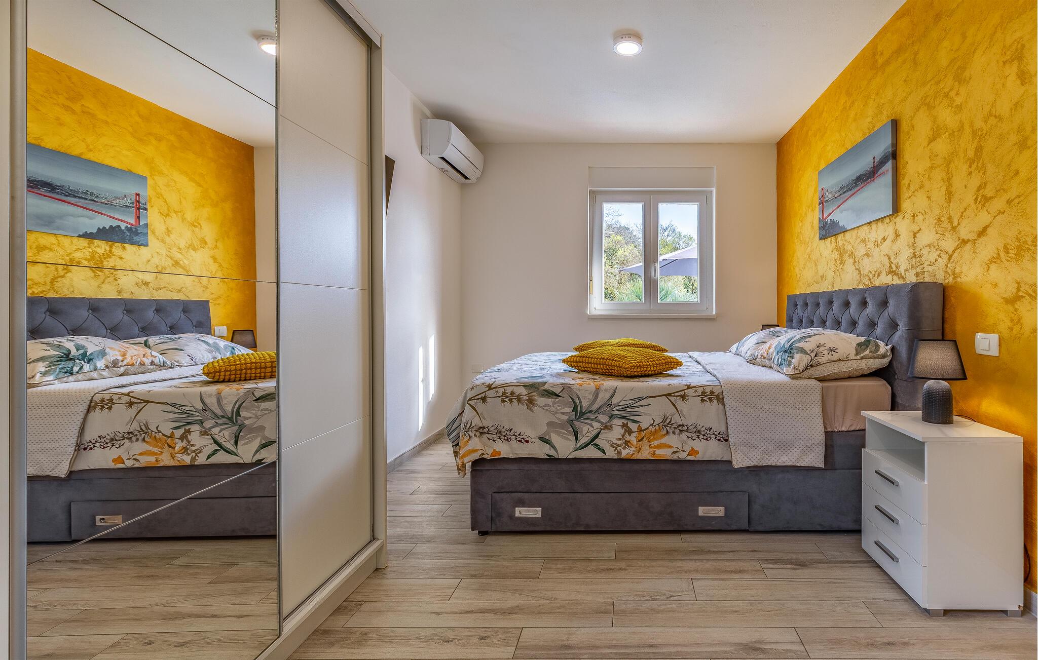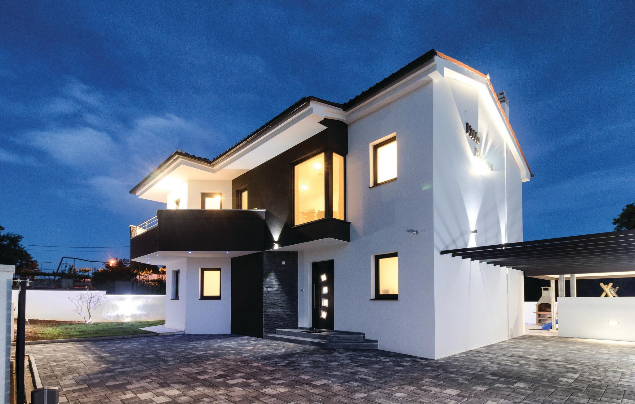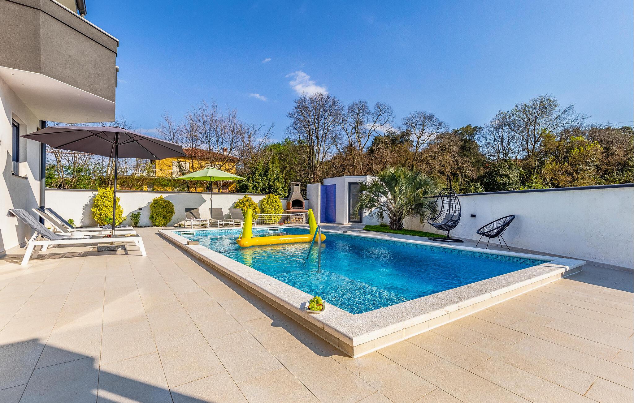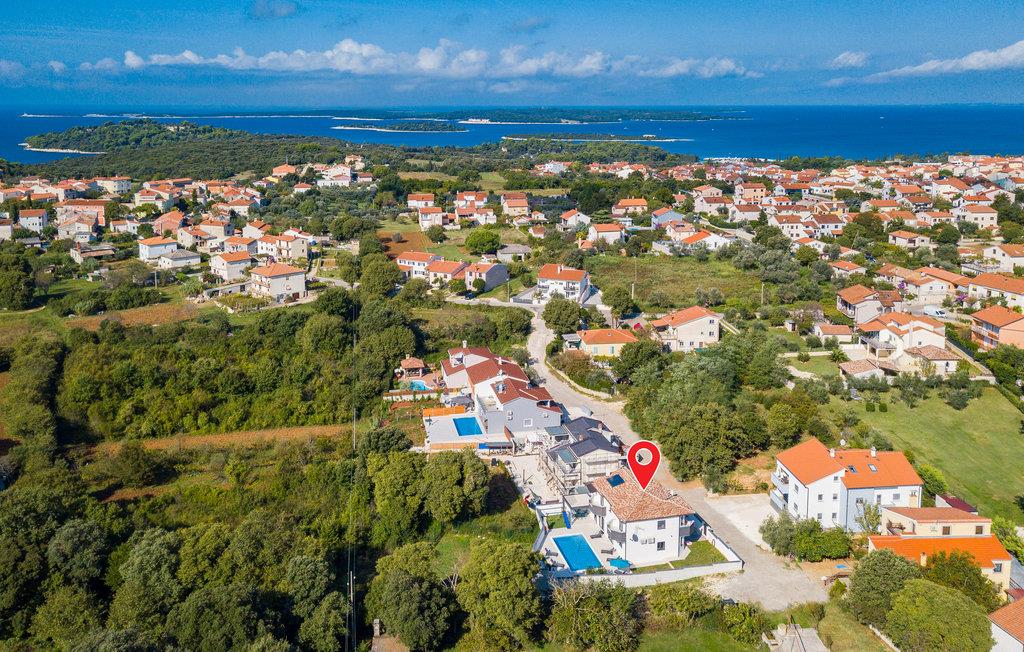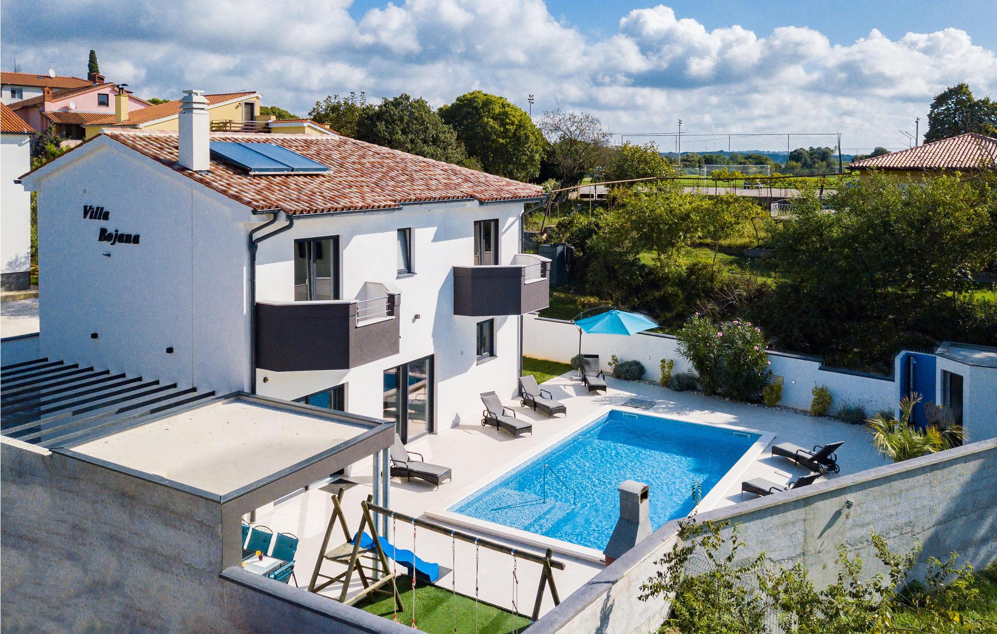 I den lille by Štinjan, ikke langt fra Pula, ligger dette dejlige hus med privat tilhørende pool. De rolige omgivelser er perfekte til en afslappet ferie. Husets er fordelt på to etager der er bekvemt indrettet med stue i åben forbindelse med køkken og spiseafdeling, et gæstetoilet og et soveværelse med badeværelse en suite i stueplan. En sauna i huset skaber de perfekte rammer for velvære og afslapning. Fra stuen er der en dejlig udsigt over både poolen og haven. På første sal er der tre soveværelser, hver med balkon, det ene soveværelse har badeværelse en suite og de to andre deles om et badeværelse nummer to. I haven står grillen parat til nem og lækker mad og mens maden steger færdig, kan I tage en dejlig svømmetur i poolen.