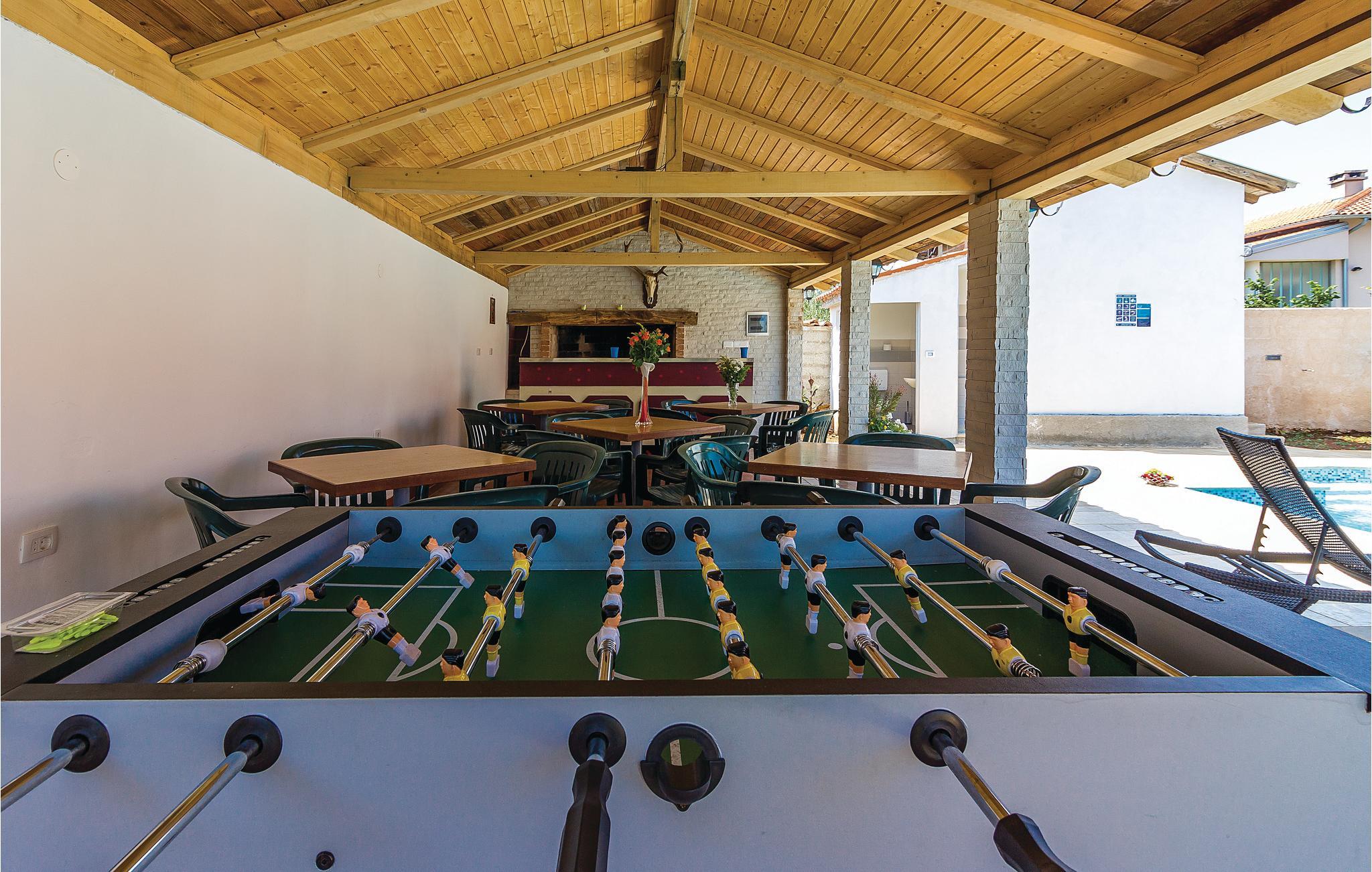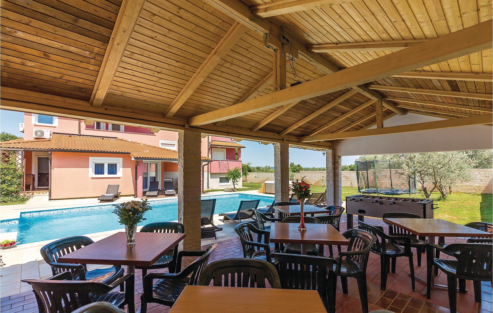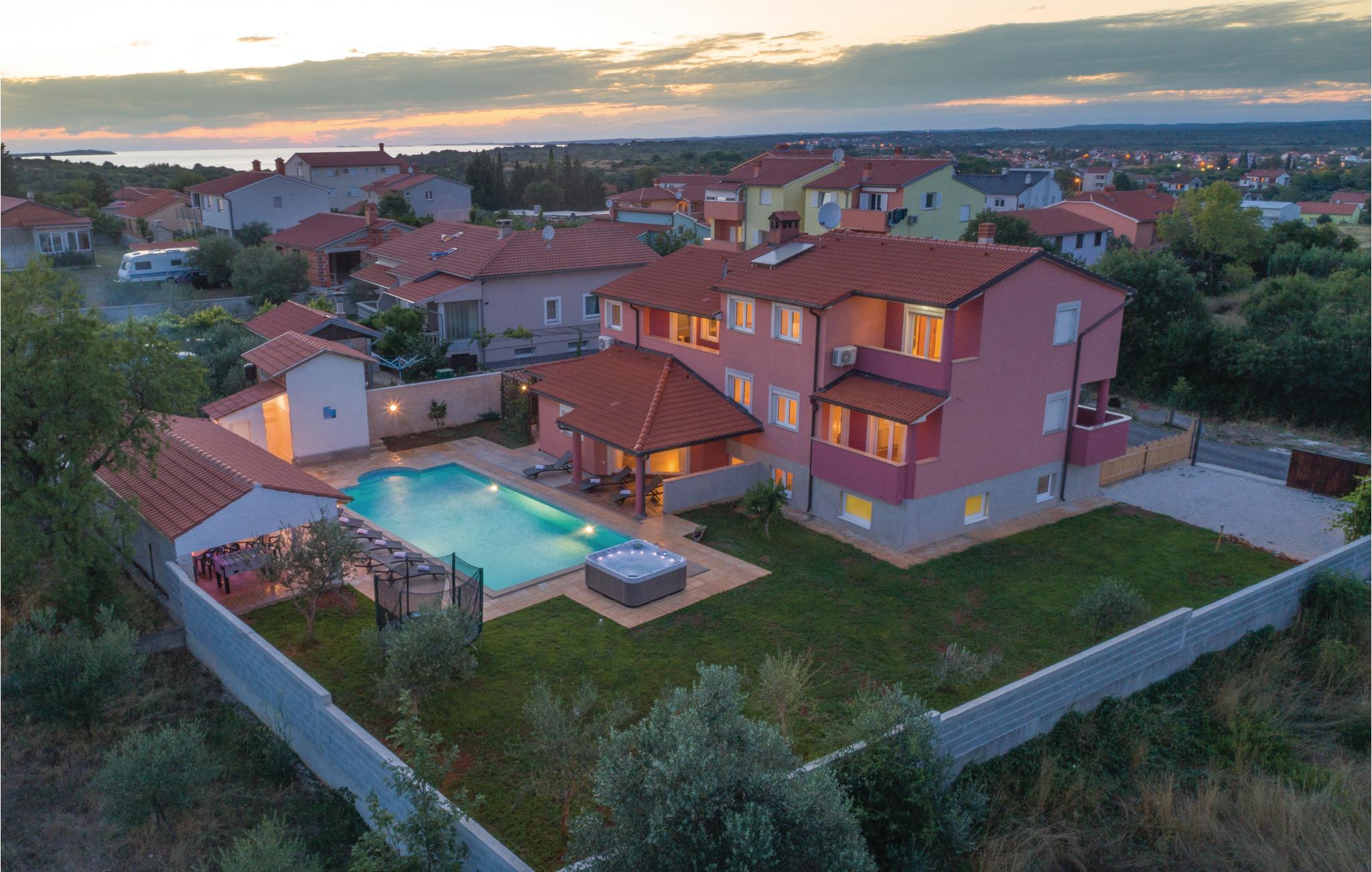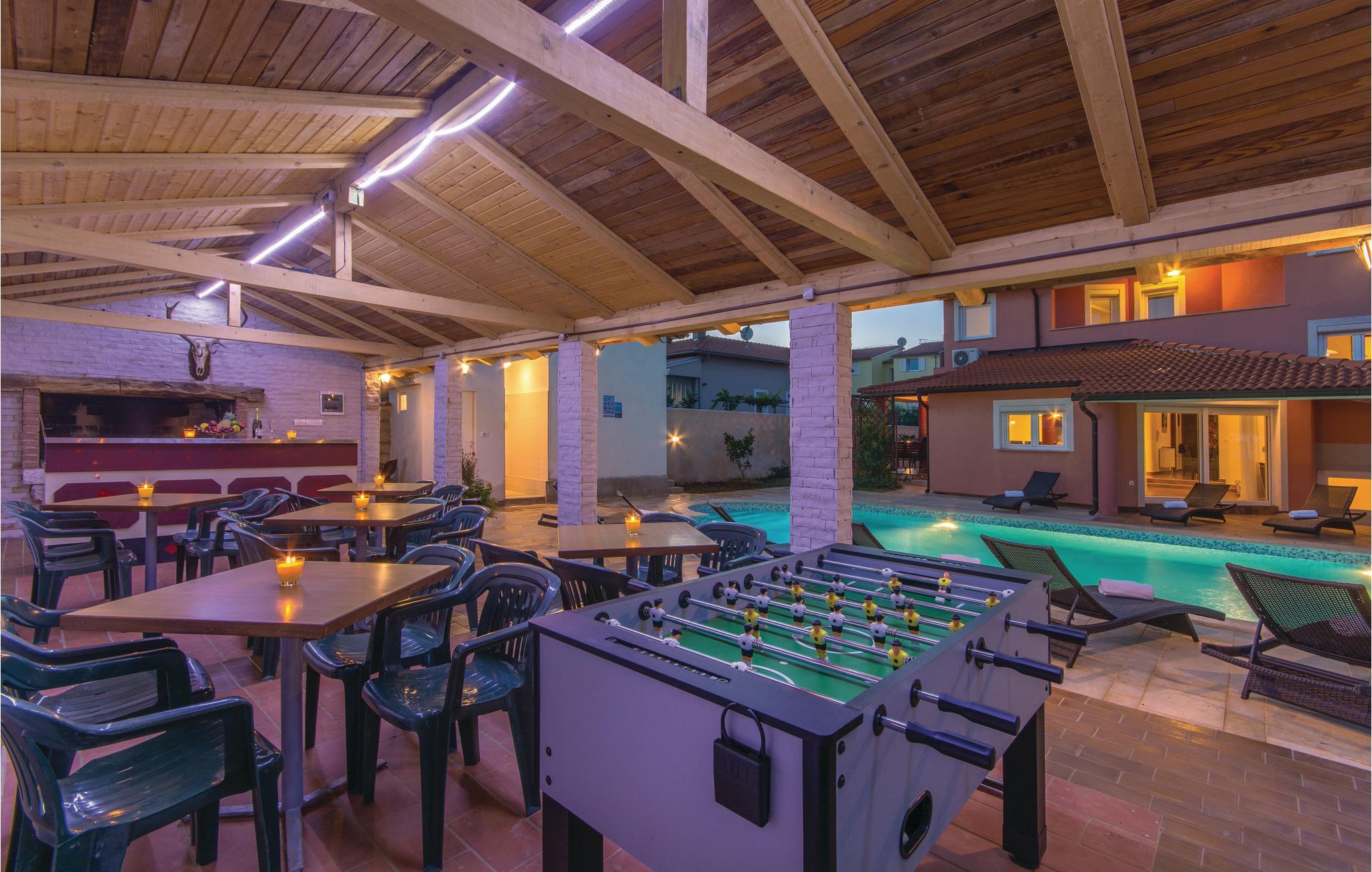 værelser er fordelt over to etager og består af i alt syv soveværelser og fire badeværelser. På ejendommen er der en stor swimmingpool og en whirlpool. Tag en tur langs havnefronten i nabobyen Fažana, som byder på mange barer og fremragende restauranter. Fra Fažana kan I også sejle til nationalparken på Brijuni-øerne. Hust også at besøge det romerske amfiteater og naturparken Kamenjak i feriebyen Premantura.