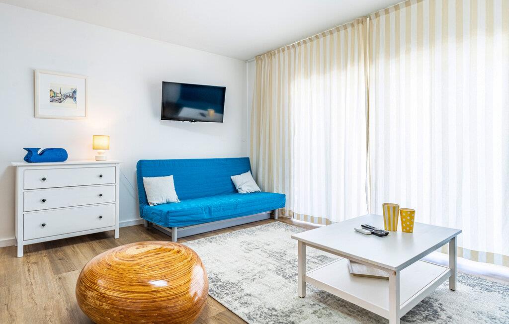 Nyd solen, roen og en friskbrygget kop kaffe på jeres private altan og læs en god bog, mens I fornemmer byen, der vågner roligt op til dåd. På den overdækkede terrasse med udekøkken og muret grill kan I tilbringe dejlige aftener i det fri og sludre med de andre gæster i huset. Udfordr flokken til en bordtennisturnering og dyp jer i den fælles udendørs pool. Jeres kæledyr er også velkomne her.