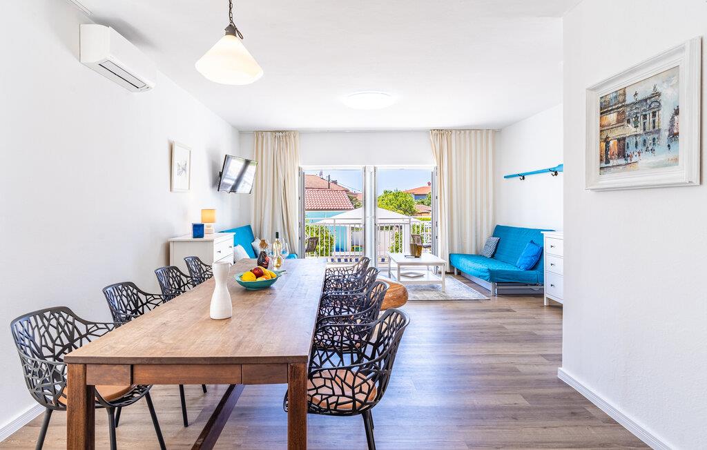 Velkommen til Stinjan, der ligger i dejlige omgivelser på det sydlige Istrien, og hvor der venter jer en komfortabel base i denne perle af en lejlighed. Omgivelserne er fredelige, og indvendigt fremtræder lejligheden flot og indbydende med behagelige farveskalaer, velholdte trægulve og moderne faciliteter, der alt sammen er med til at gøre jeres ophold helt og aldeles bekymringsfrit fra det øjeblik, I stiller kufferterne. Det stilsikre interiør får masser af dagslys gennem de store vinduespartier, der samtidig giver en skøn udsigt til udeområdet.