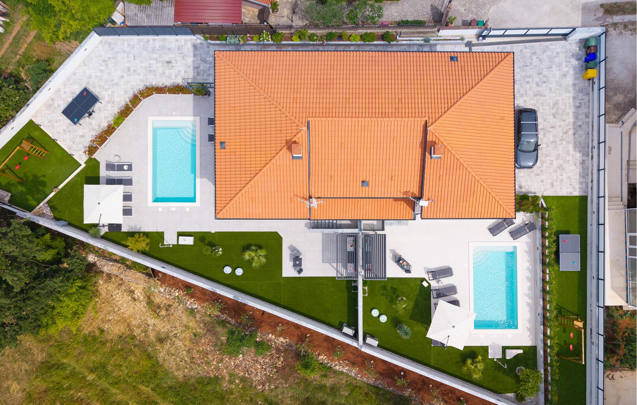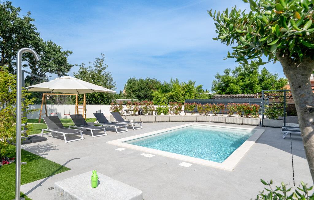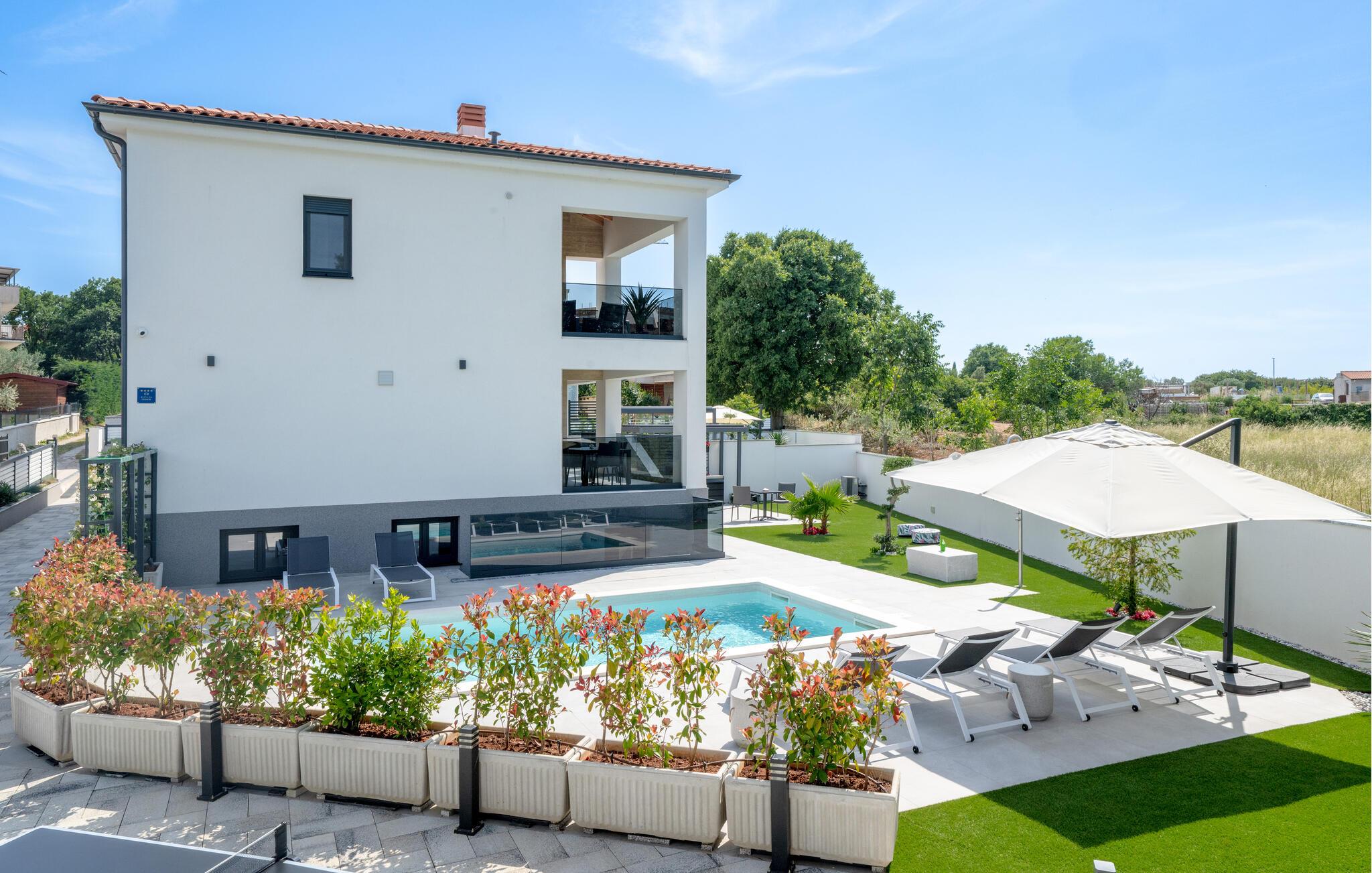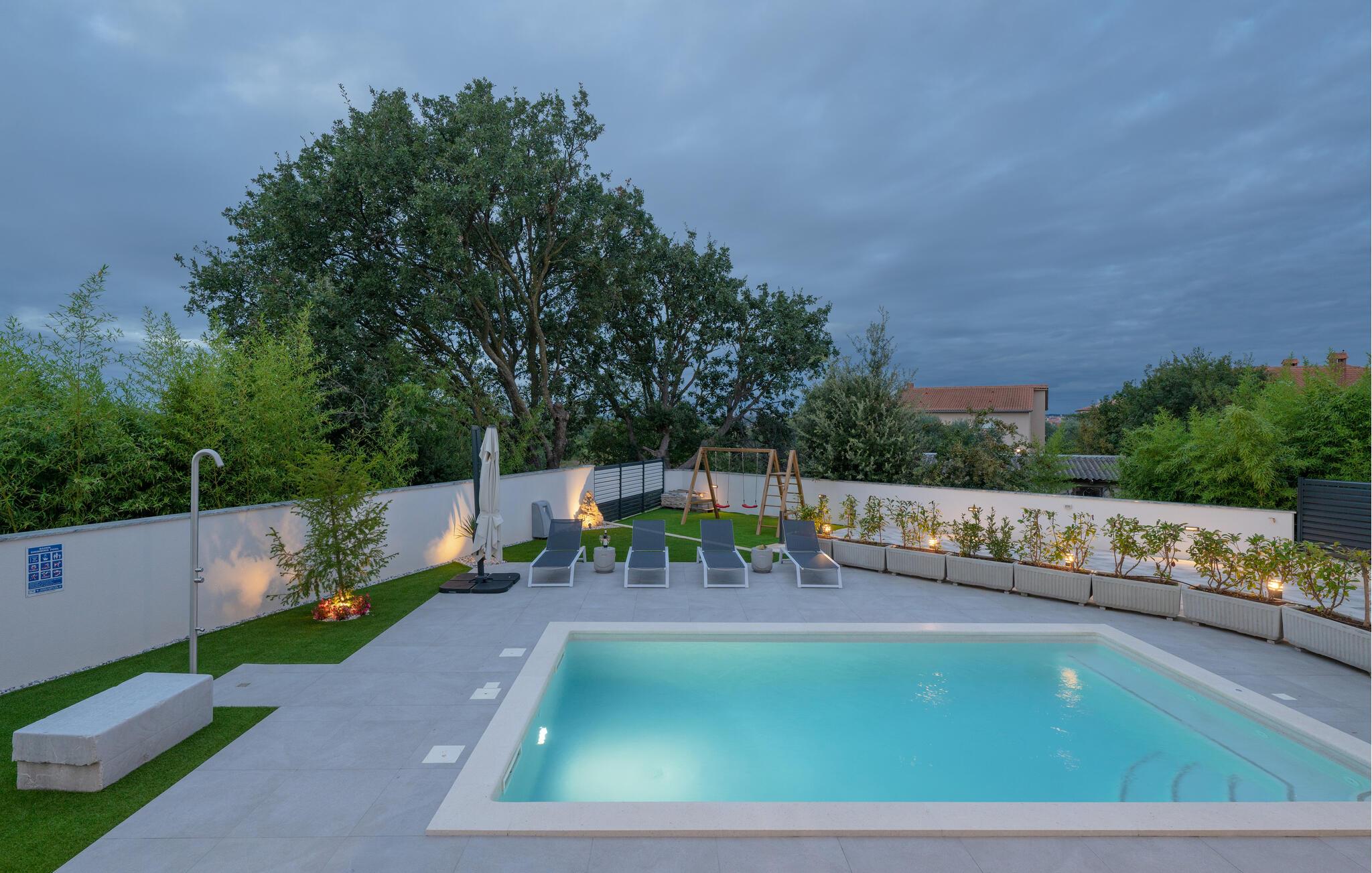 Jeres luksuriøse hus ved Istriens kyst tilbyder jer og jeres familie eller venner det ideelle tilflugtssted. Start dagen på den hyggelige terrasse, udstyret med et spisebord, som er ideelt til en morgenmad i det fri. Nyd udsigten til det smukke poolområde og lad roen falde over jer. Huset imponerer med et åbent og elegant boligkoncept. Gør jer det behageligt på den komfortable sofa og nyd jeres yndlingsfilm om aftenen. Den indbydende spisestue har plads til fælles måltider, og det veludstyrede køkken inspirerer til at tilberede lækre retter.