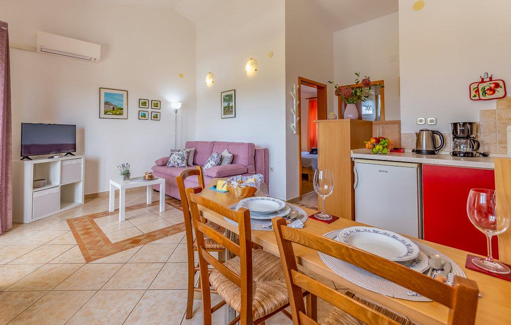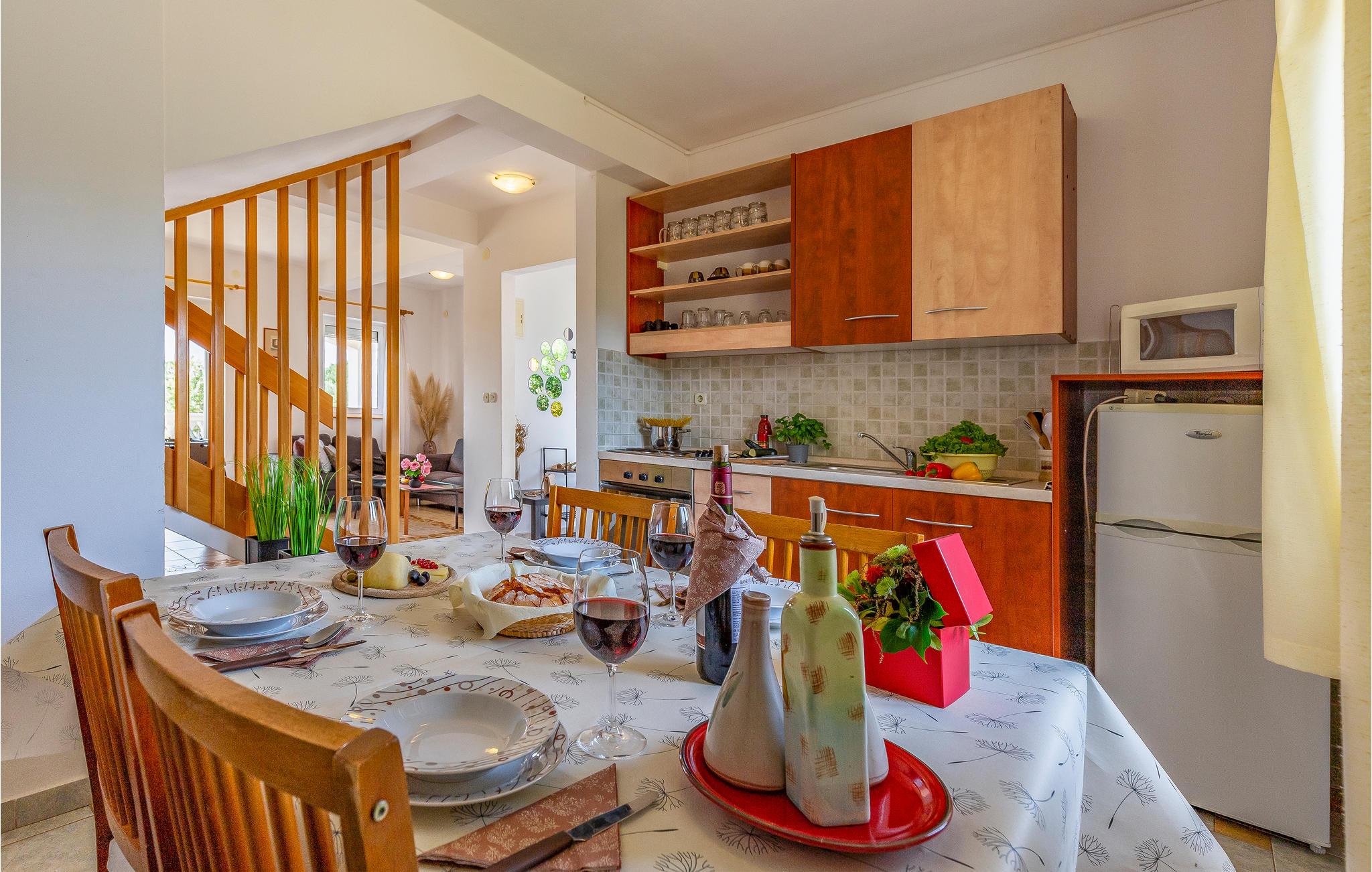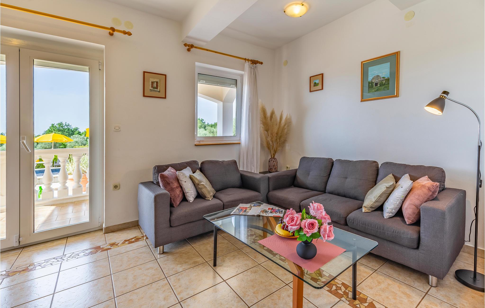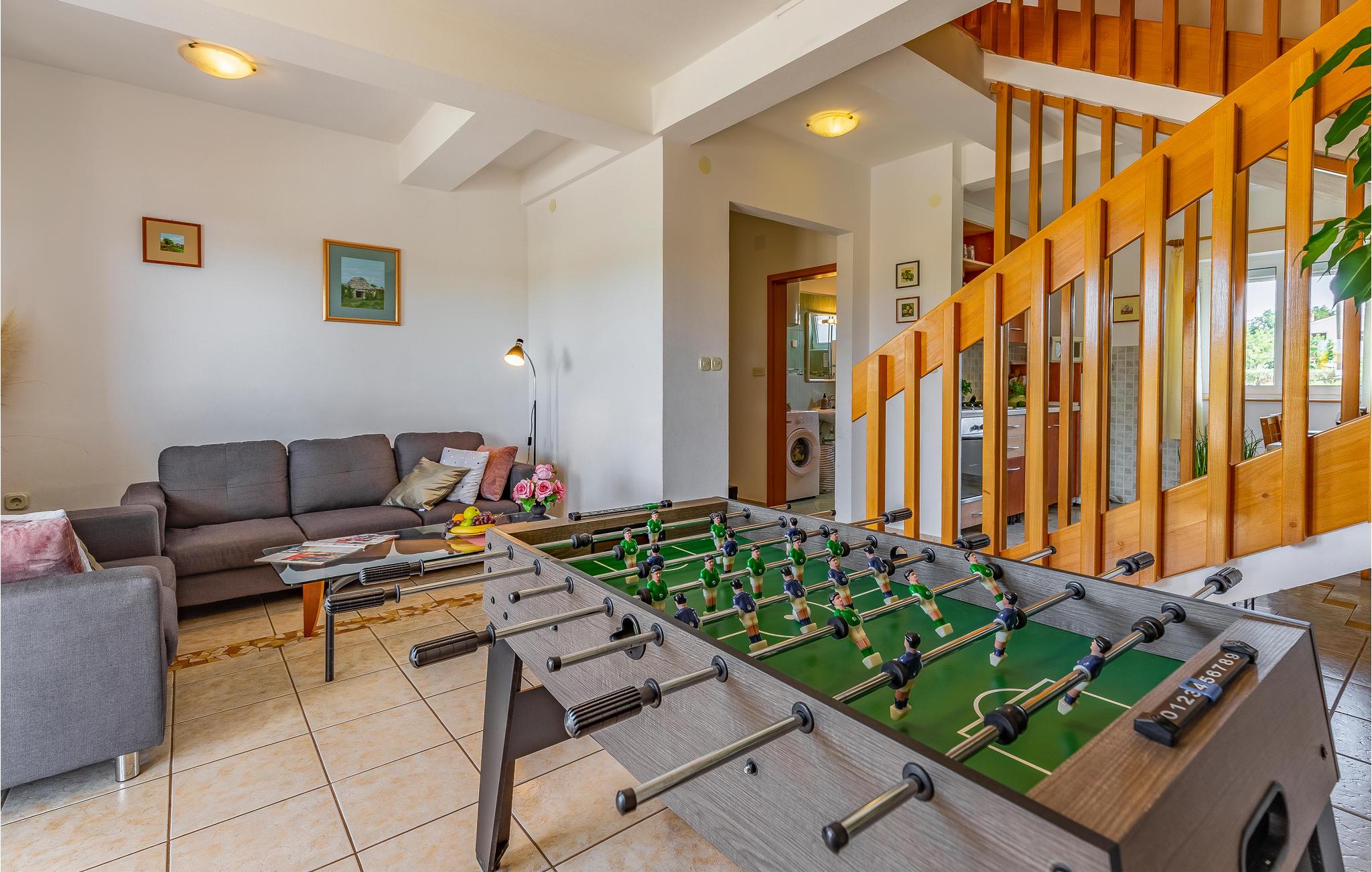 Dette dejlige feriehus består af tre boliger, som er forbundet af en udetrappe. Alle boligenenhederne er med klimaanlæg og fuldt udstyrede køkkener. Huset er velegnet til 3 familier eller en gruppe venner som ønsker at holde ferie sammen, men stadig nyde deres privatliv i deres værelser. Der er flere terrasser tilrådighed til gæsterne. På grunden er der swimmingpool, i hvis kant er mange behagelige solsenge og flere store parasoller. På grunden er også en legeplads til familiens børn. Den store terrasse med grill inviterer til mange hyggestunder både dage og aften. Ikke langt fra Valtura liggger udgravningerne af Nesakcium, som er den ældste by i Istrien. Nesakcium stammer tilbage fra romertiden. Få minutter fra huset i bil ligger der skønne sten og grusstrande med krystalklart vand. Pak picnickurven og tilbring den dejlige lange sommedag ved og i vandet.