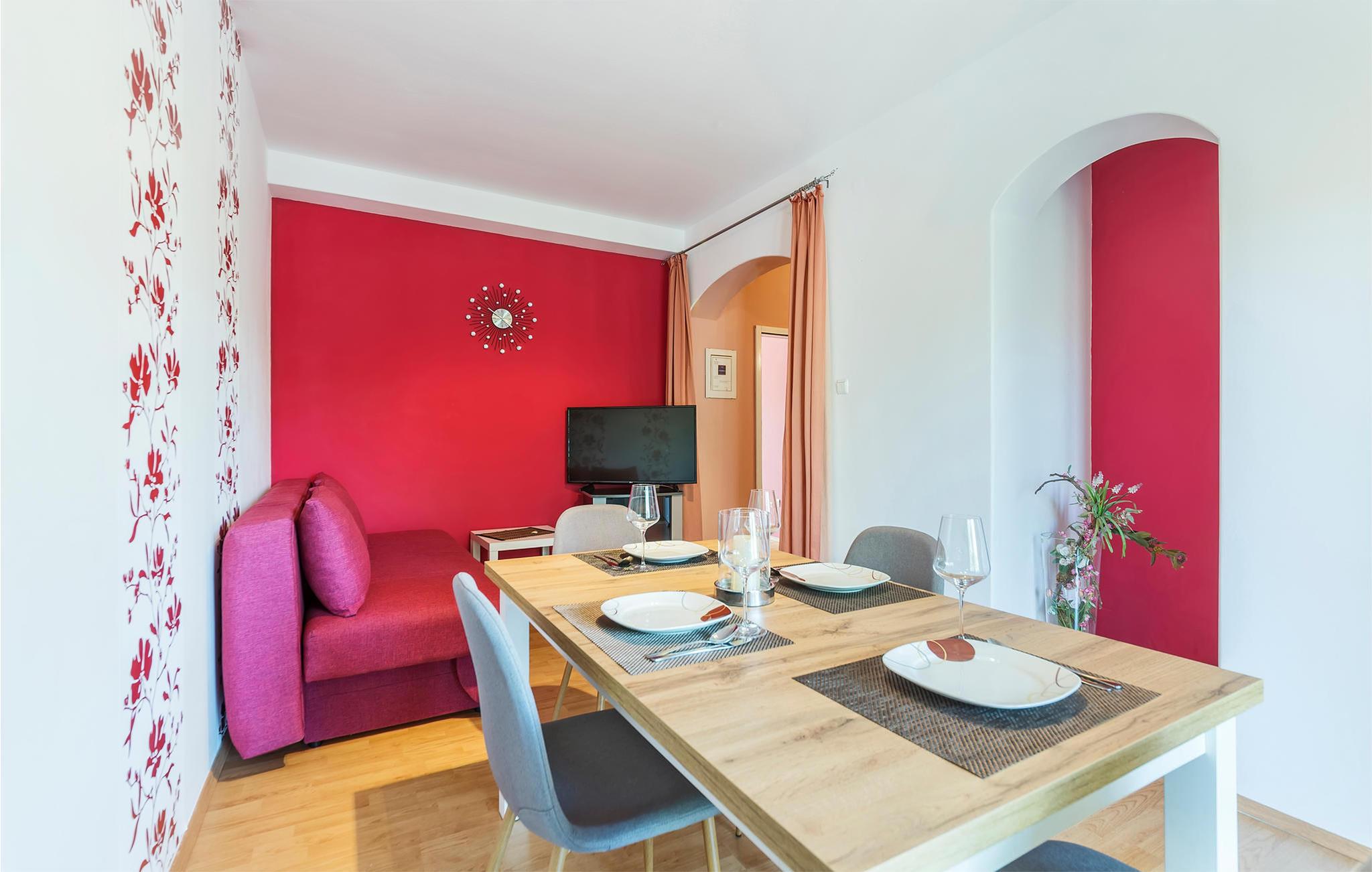 Denne enkelt og praktisk indrettede ferielejlighed ligger i Valtura, en lille by ikke langt fra den spændende historiske by Pula med sine utallige seværdigheder og former for underholdning. Boligen består af tre enheder, der er bundet sammen af en udendørs trappe. Til de yngste gæster er der en vippe, mens der til de voksne er to cykler til rådighed, til ture ud i den smukke natur. De landlige omgivelser giver en afslappet god følelse i kroppen, fra det øjeblik I ankommer. Kør en tur ud til kysten med de skønne naturstrande og lad jer fortrylle af det krystalklare og lune hav.