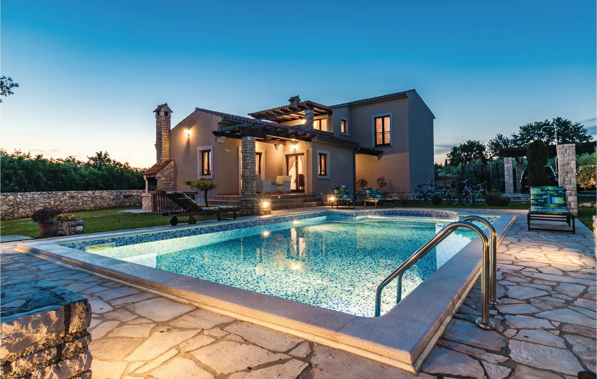 Dette nybyggede feriehus med pool har beliggenhed i Valtura, ne by cirka 10 kilometer fra Pula. Huset strækker sig over to etager. I stueetagen ligger køkkenet, opholdrum med spisestue, to soveværelser, samt badeværelse og toilet. På første etage er der to soveværelser, et badeværelse yderligere og den overdækkede terrasse. På varme sommerdage indbyder den dejlige udendørs pool til en nedkøling, og børnene kan lege uforstyrret på gyngerne og rutsjebanen. Husets beliggenhed er ideel for de gæster der gerne vil på udflugt til Pula, hvor der udover talrige monumenter også er masser af kultur- og underholdningstilbud. De smukke strande i Sisan og de nærmere omgivelser er, ligesom de mange traditionelle byer på fastlandet, også indenfor rækkevidde. Vi anbefaler en udflugt til det arkæologiske område af Istriens ældste by Nesakcium. Herudover indbyder den billedskønne natur til vandre- og cykelture.