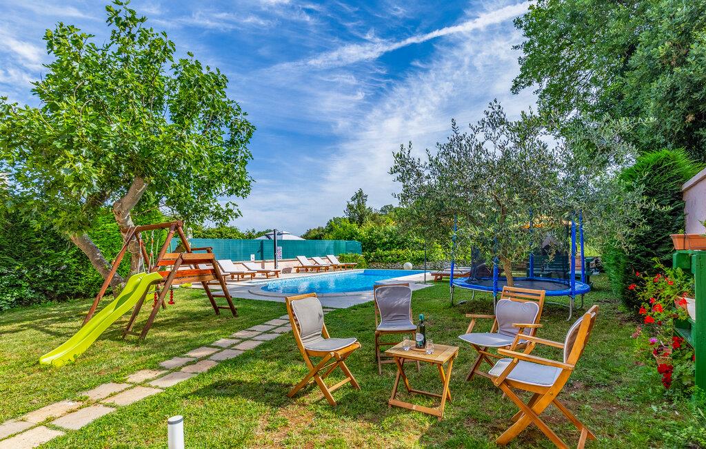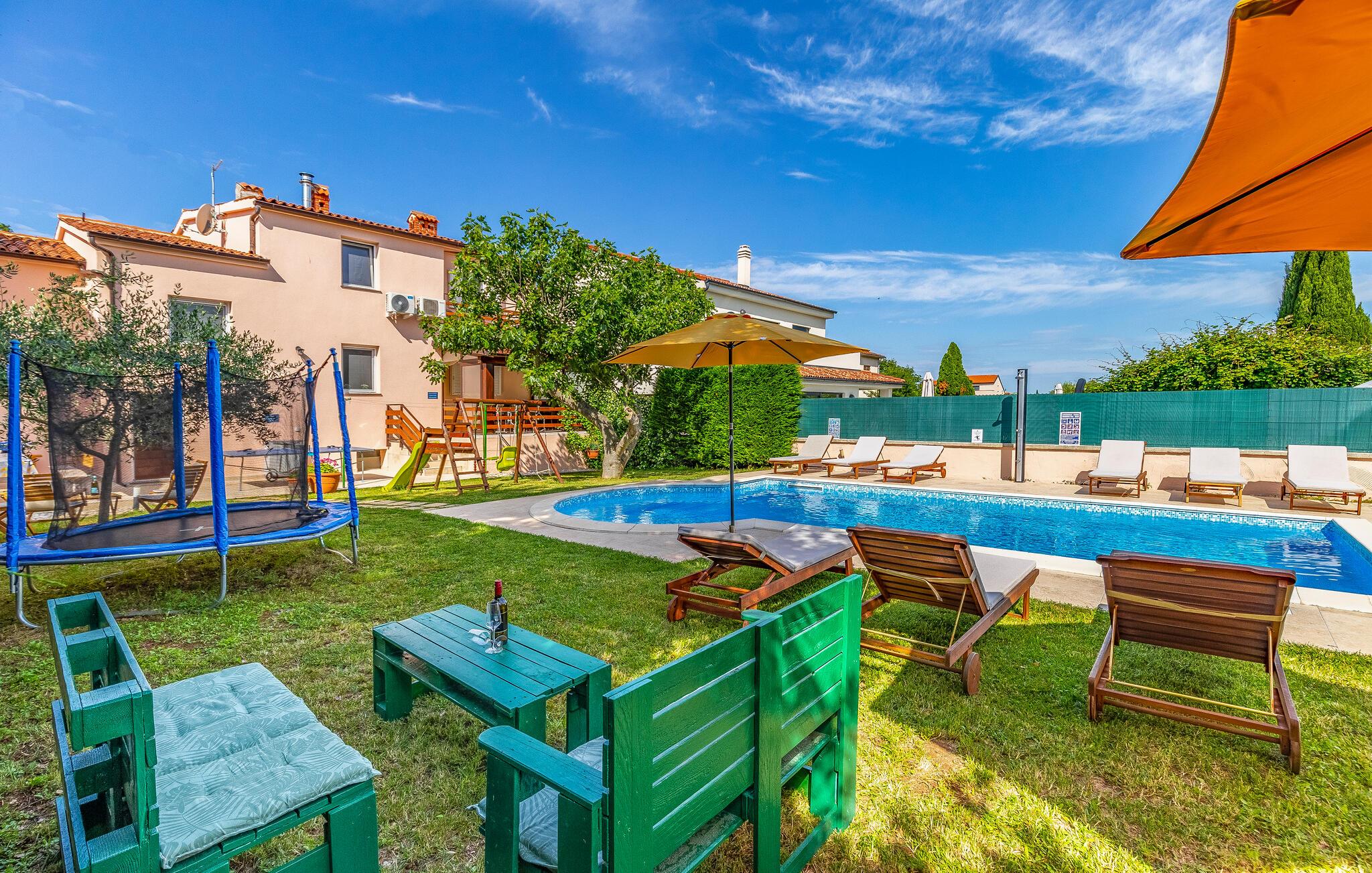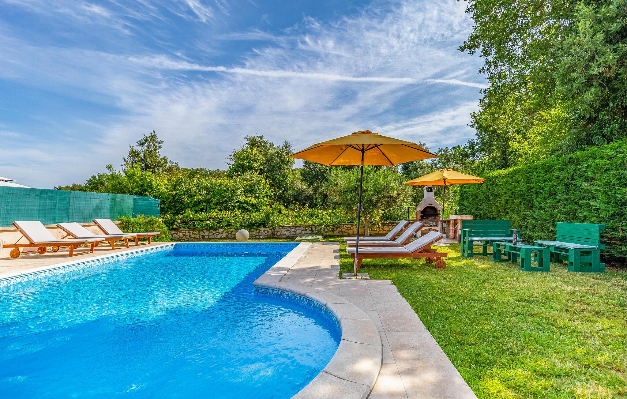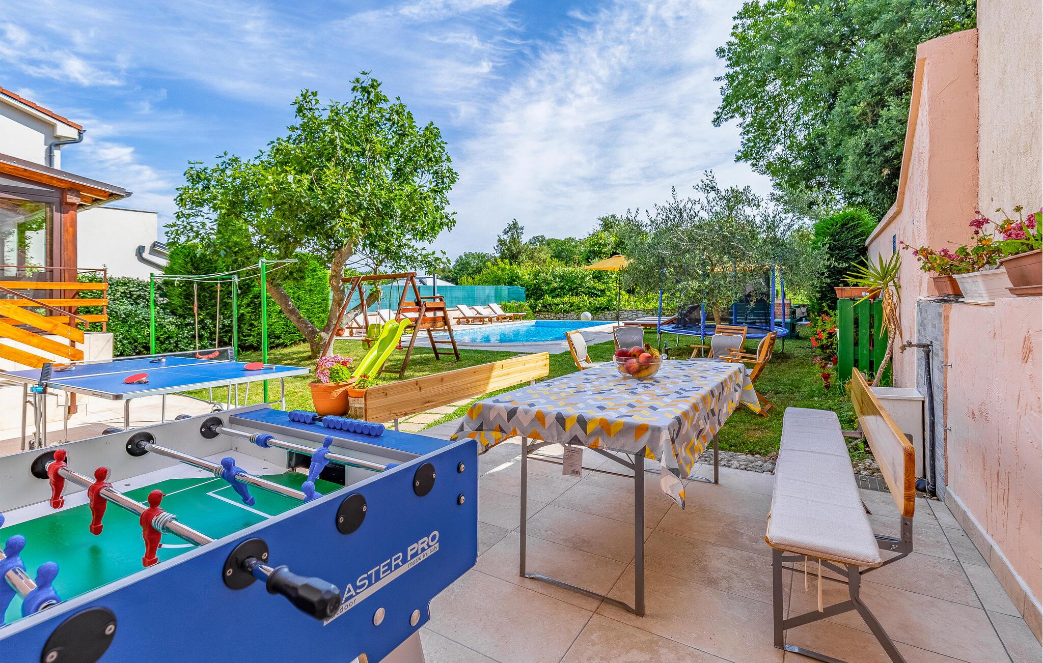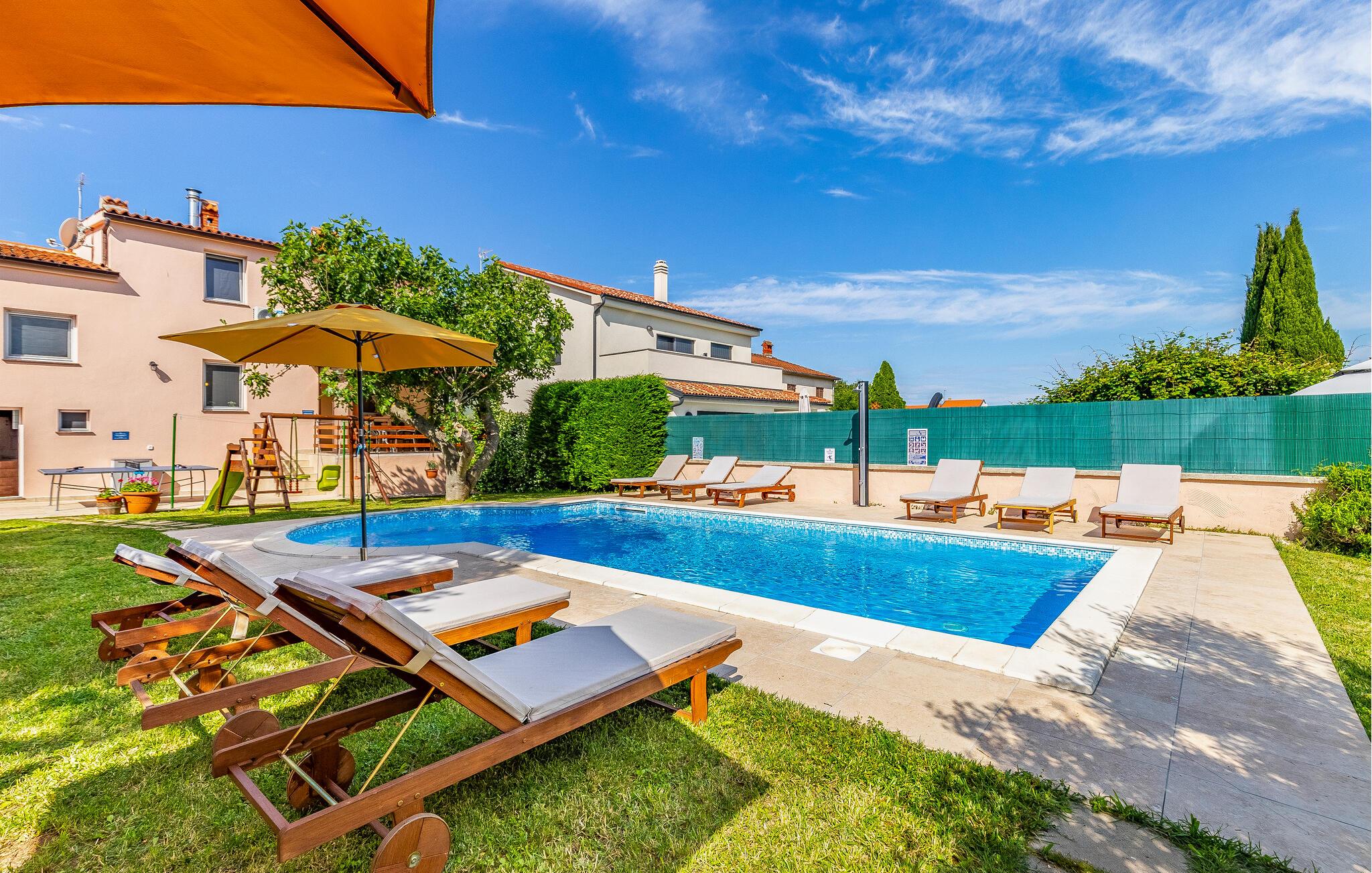 Dette dejlige dobbelthus ligger i den lille landsby Vinkuran, ikke langt fra den historiske by Pula. Huset består af tre fuldt møblerede og udstyrede boligenheder, som er forbundet med indvendige trapper og et særdeles veludstyret aktivitetsrum. Den største lejlighed ligger i stueetagen, hvor der er glimrende soveværelser og et ideelt sted til fælles måltider. Der er også udgang til den skønne terrasse med udsigt over poolen. Her kan i se frem til mange skønne, solbeskinnede stunder, og I kan glæde jer til at nyde de varme sommeraftener ved poolen.