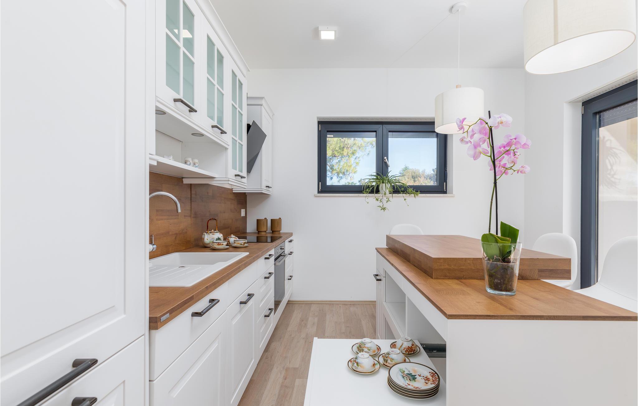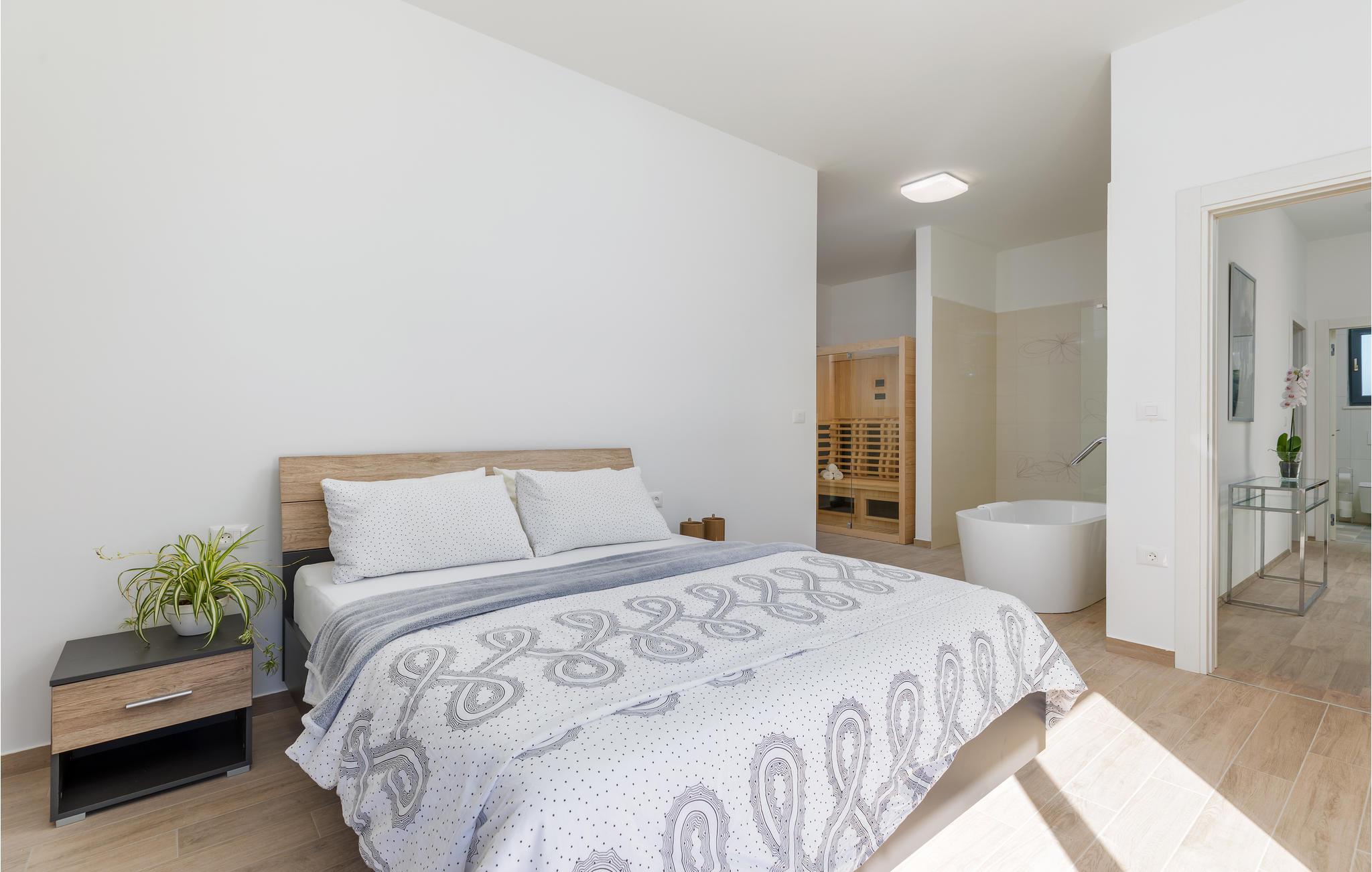I finder dette flotte og meget veludstyrede feriehus tæt på Pula. Huset byder på lyse og velmøblerede værelser, som har et stilrent indtryk. Glæd jer til at vågne op i husets hyggelige atmosfære og tilberede sommermåltider i det flotte køkken.