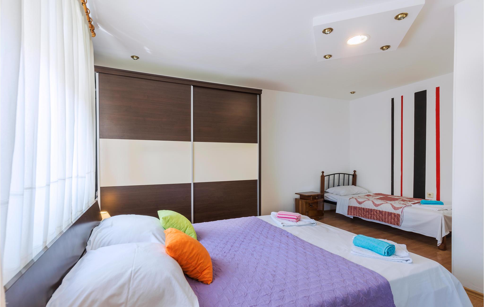 Disse komfortable ferielejligheder (CIP030 og 628) ligger i en familiepension, i en rolig del af Pula, i en sidegade. De er udstyret perfekt til en afslappet ferie. Gæsterne kan fælles bruge den store terrasse med en muret grill, hvor I kan tilberede lækre retter med lokale friske råvarer: fisk, kød og grønt. I den komplet udstyrede feriebolig kan I holde en dejlig ferie. Besøg de mange arrangementer i Pula, der frem for alt afholdes i højsæsonen. Fx i amfiteateret hvor I kan opleve koncerter og frem for alt filmfestivalen gennem sommeren.