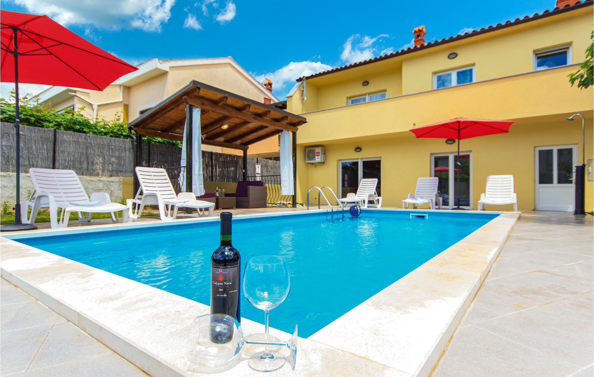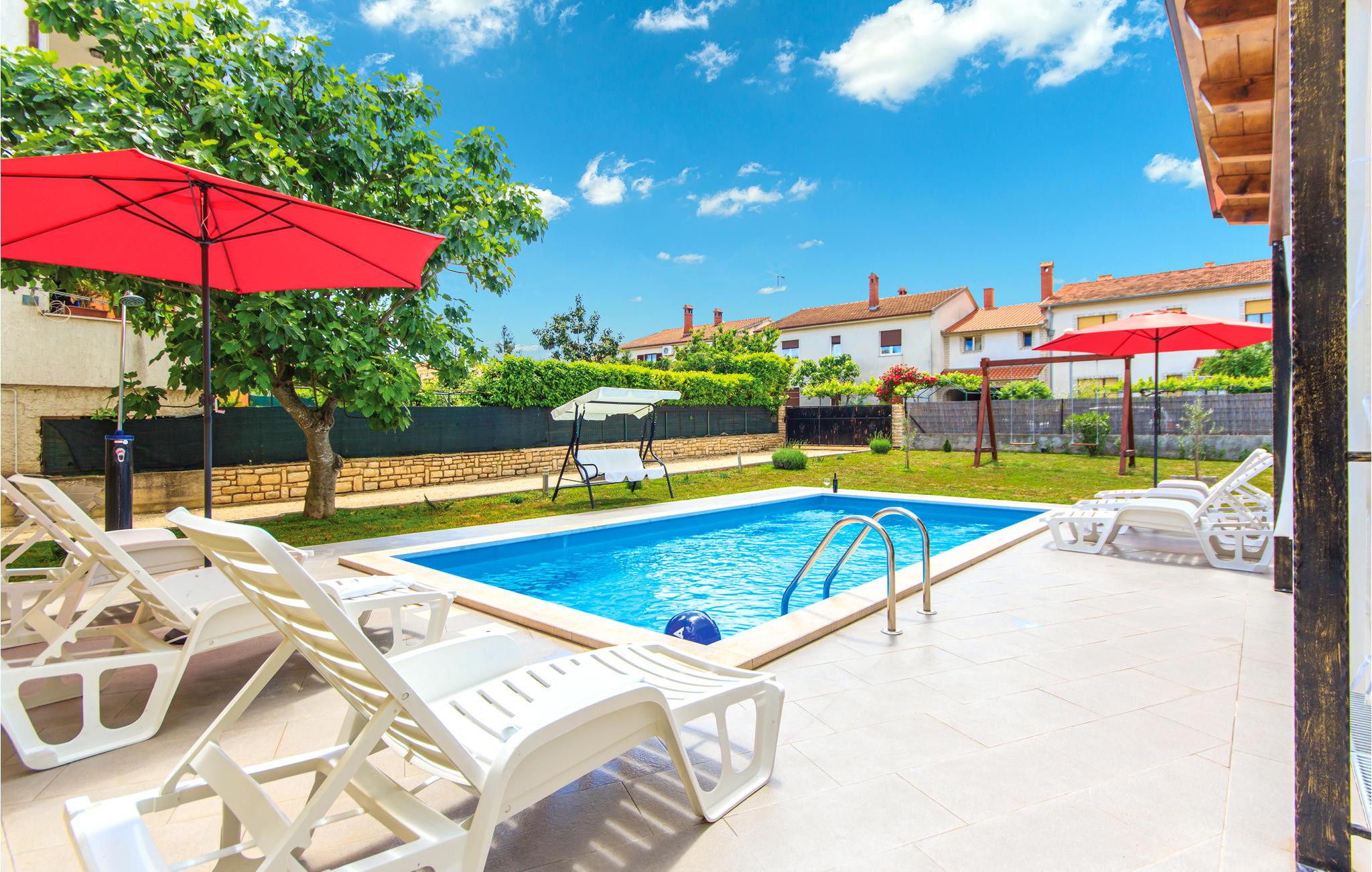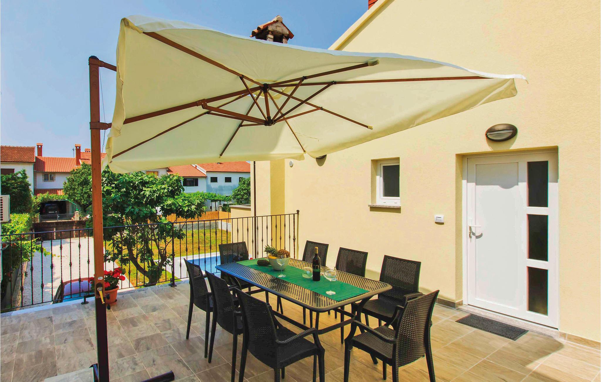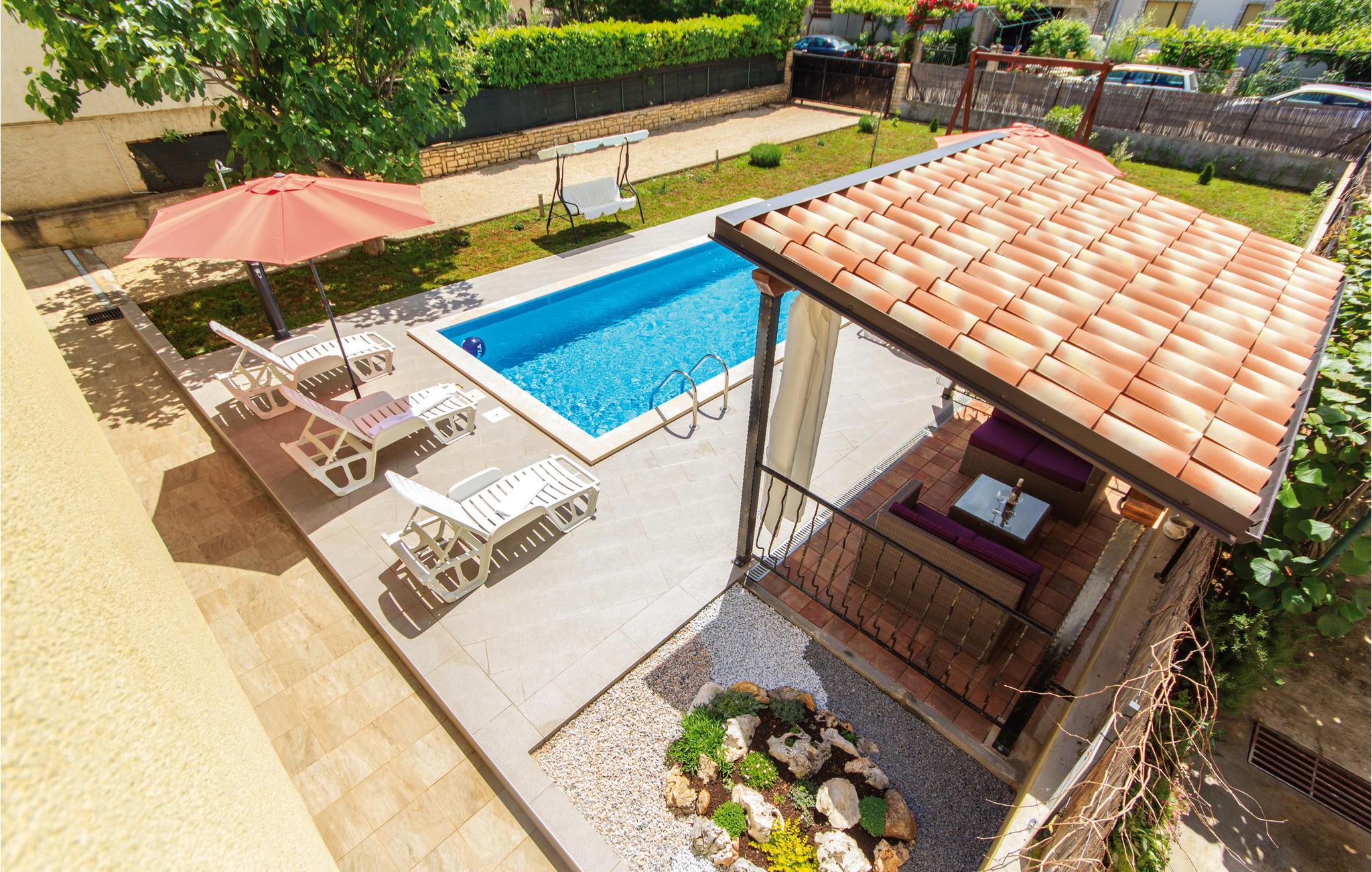 Dette lyse feriehus ligger i forstæderne til den antikke by Pula, et stykke væk fra byens larm og travlhed, men stadig tæt på en lang række kulturtilbud, historiske seværdigheder og andre oplevelser. Feriehuset byder på forskellige fritidsaktiviteter, herunder billard og dart, en motionscykel, en gynge og et fodboldmål. Huset er stilfuldt indrettet og har al den nødvendigt komfort til en behagelig ferie. Grunden er indhegnet, så børnene kan lege, mens I solbader ved poolen. Der er desuden en grill, og I kan både sidde udendørs på terrassen og altanen.