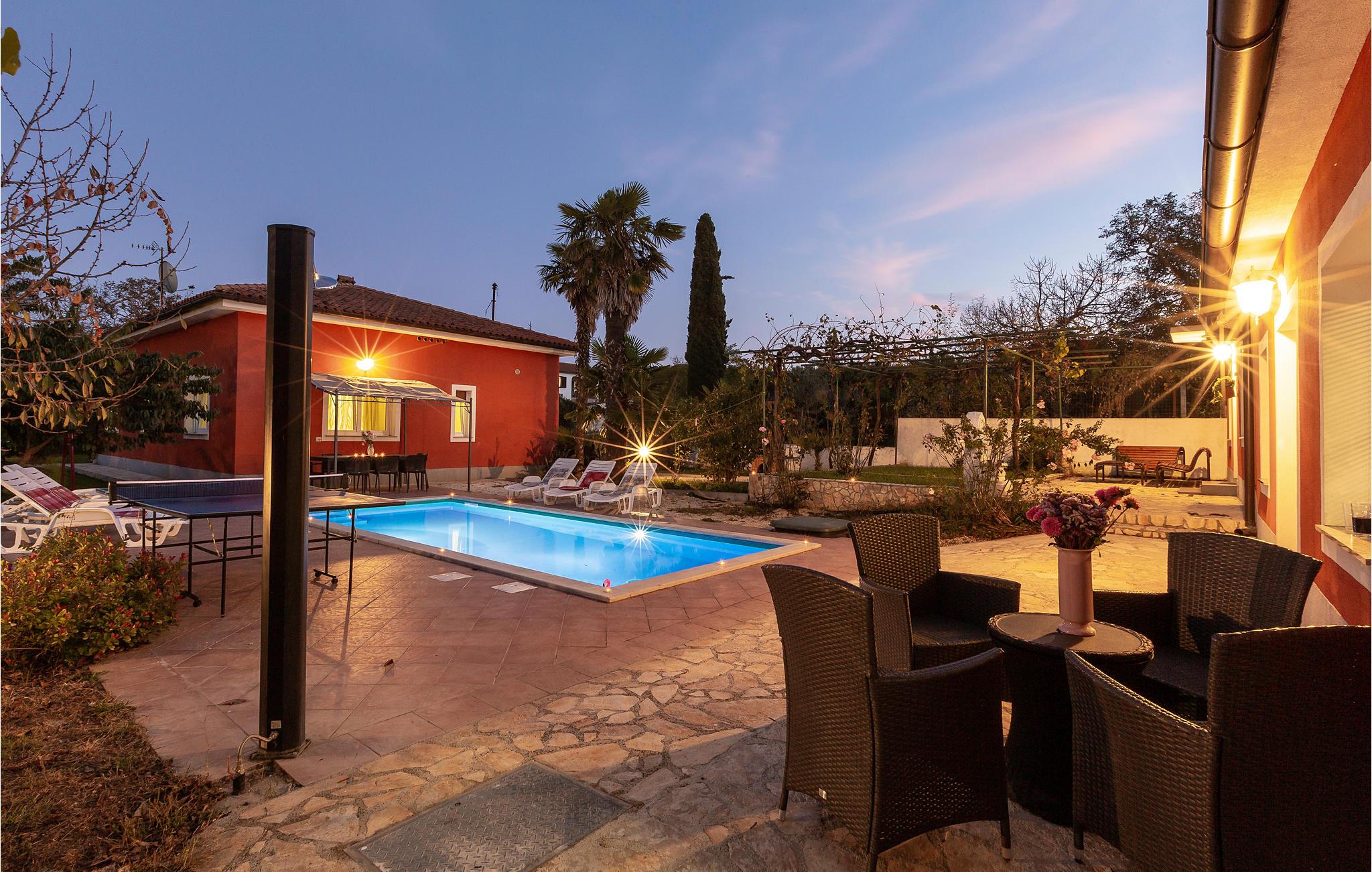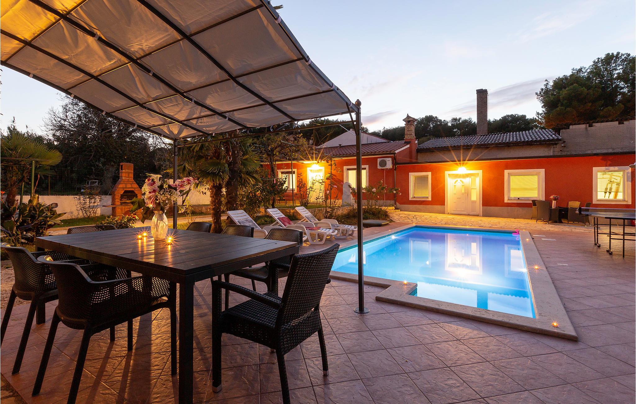 Denne feriebungalow er ideel for dem, der nyder naturen og alligevel vil være tæt på byens centrum. Huset består af to adskilte boligenheder, hvoraf den største indeholder to soveværelser med bad, toilet, spise- og dagligstue. Den anden består af to soveværelser, bad og fritidsrum. Den indendørs indretning er komfortabel, og i haveområdet kan børnene lege uforstyrret. Forfrisk jer på varme sommerdage i swimmingpoolen eller på de nærliggende strande, som I når med ca. 10 minutters kørsel.