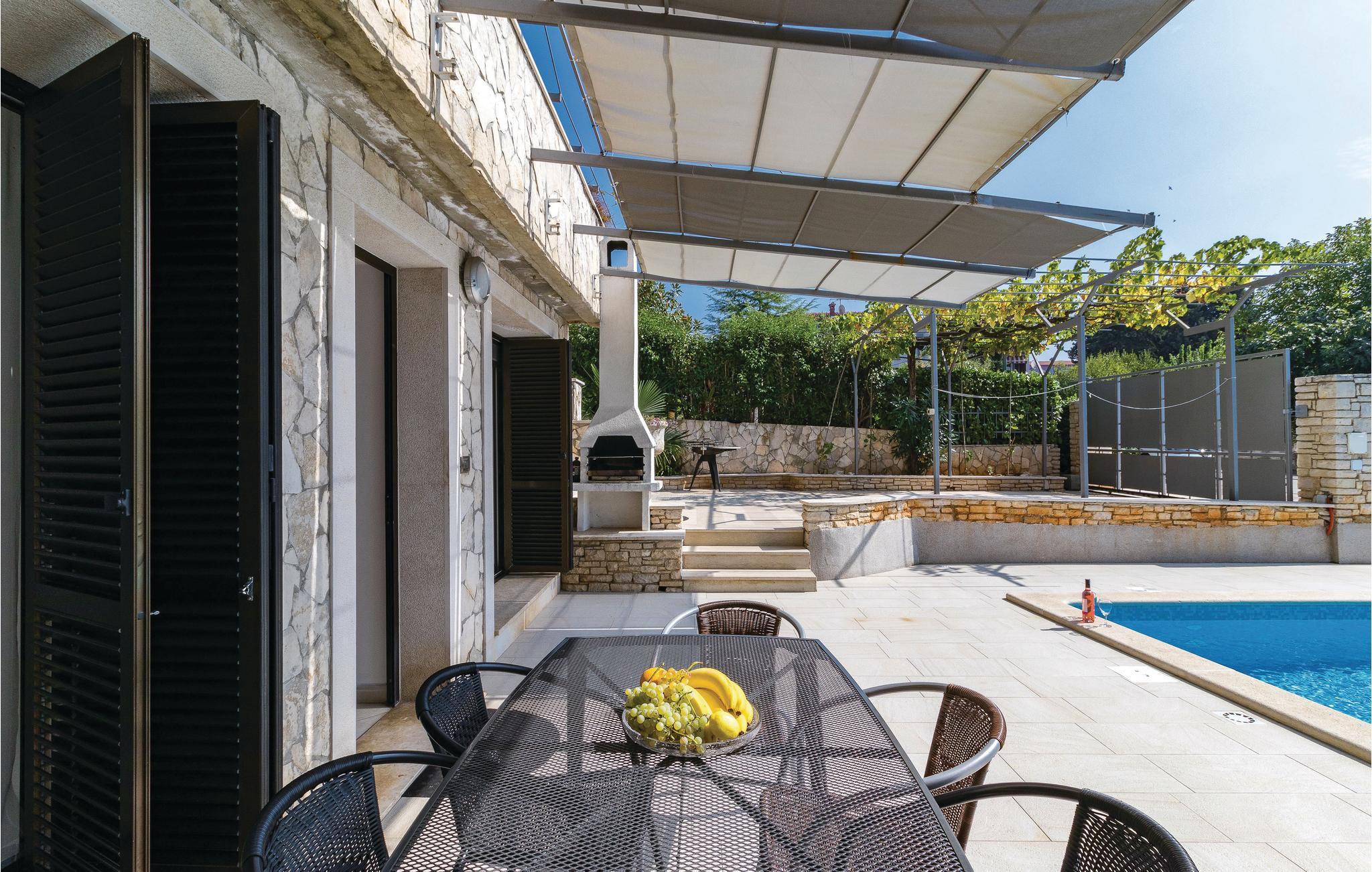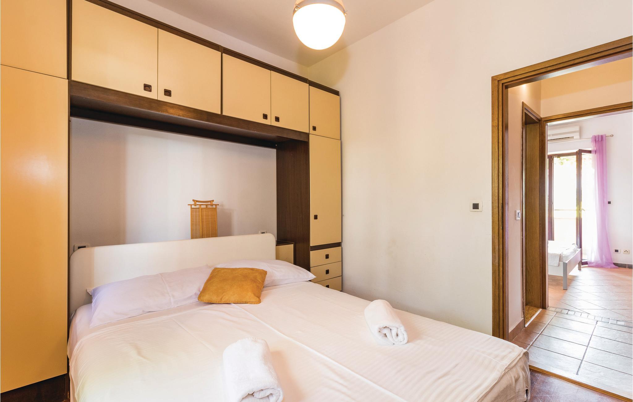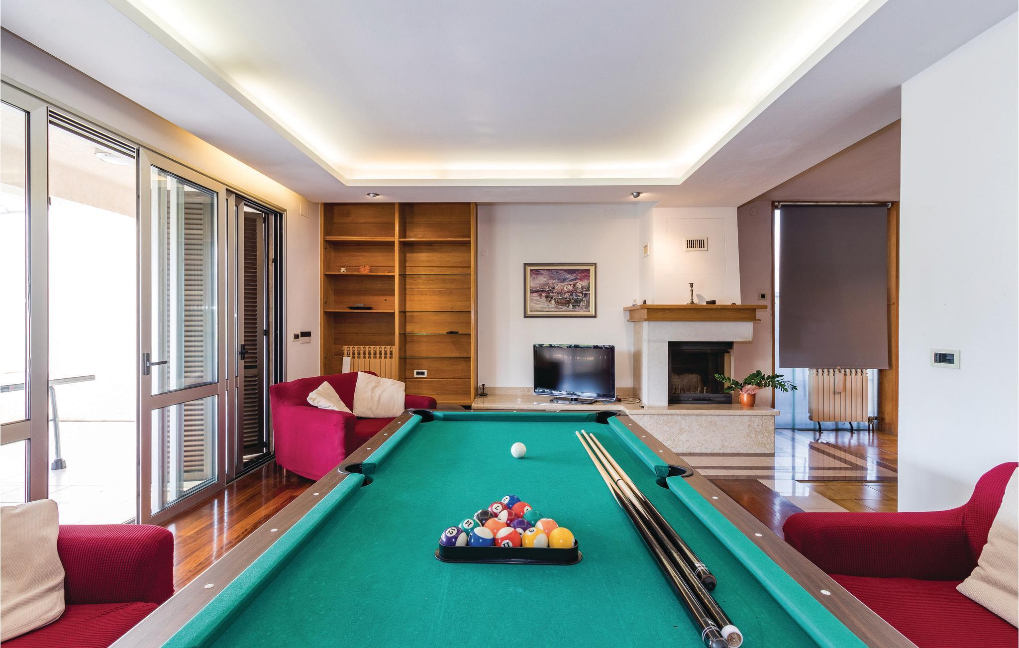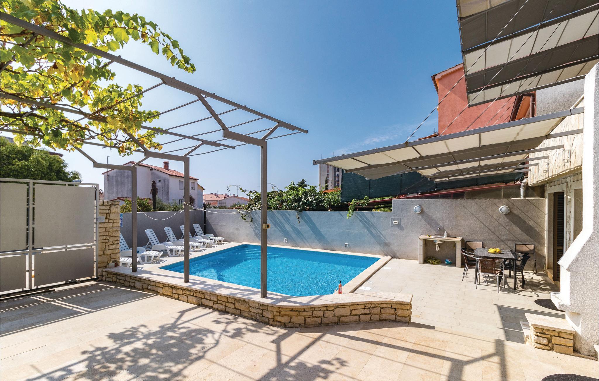 Dette rækkehus ligger i en forstad til Pula, blot et få minutters spadseretur fra de skønne bystrande. Huset er ideelt til et større selskab. I stueplan ligger fitnessrummet, saunaen og en fælles spisestue kombineret med køkken. Foran køkkenet ligger terrassen, hvor grillen står. På første sal ligger den rummelige stue, endnu et fuldt udstyret køkken, en terrasse og to soveværelser. På anden sal er der fire soveværelser, mens der ligger tre soveværelser på tagetagen. Det ene af disse har udgang til en skøn terrasse med havudsigt. I kan tage en dejlig svømmetur i poolen, som er udstyret med massagebad. I byens centrum er der mange seværdigheder fra antikken og sjov underholdning, især i løbet af højsommeren. Til huset hører også en garage.