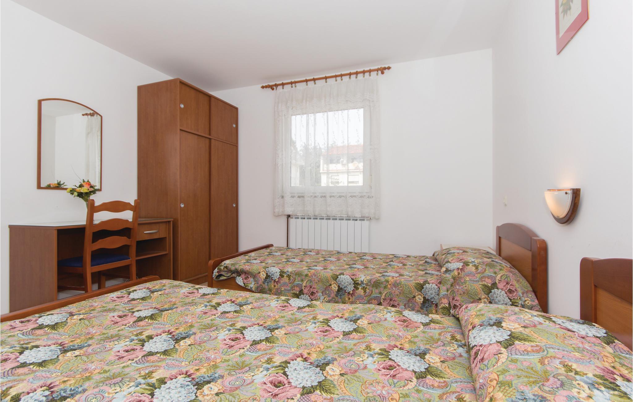 I et af Pulas skønne kvarterer finder I tre lejligheder, som er enkelt og funktionelt indrettet. Bygningen ligger på en bakke med en smuk udsigt til havnen og havet. Gården deles med husets øvrige gæster, og der er både grill og en åben terrasse til rådighed. Nyd jeres morgenmad udendørs, sæt jer med en god kop kaffe eller læs jeres feriebog i det dejlige vejr.