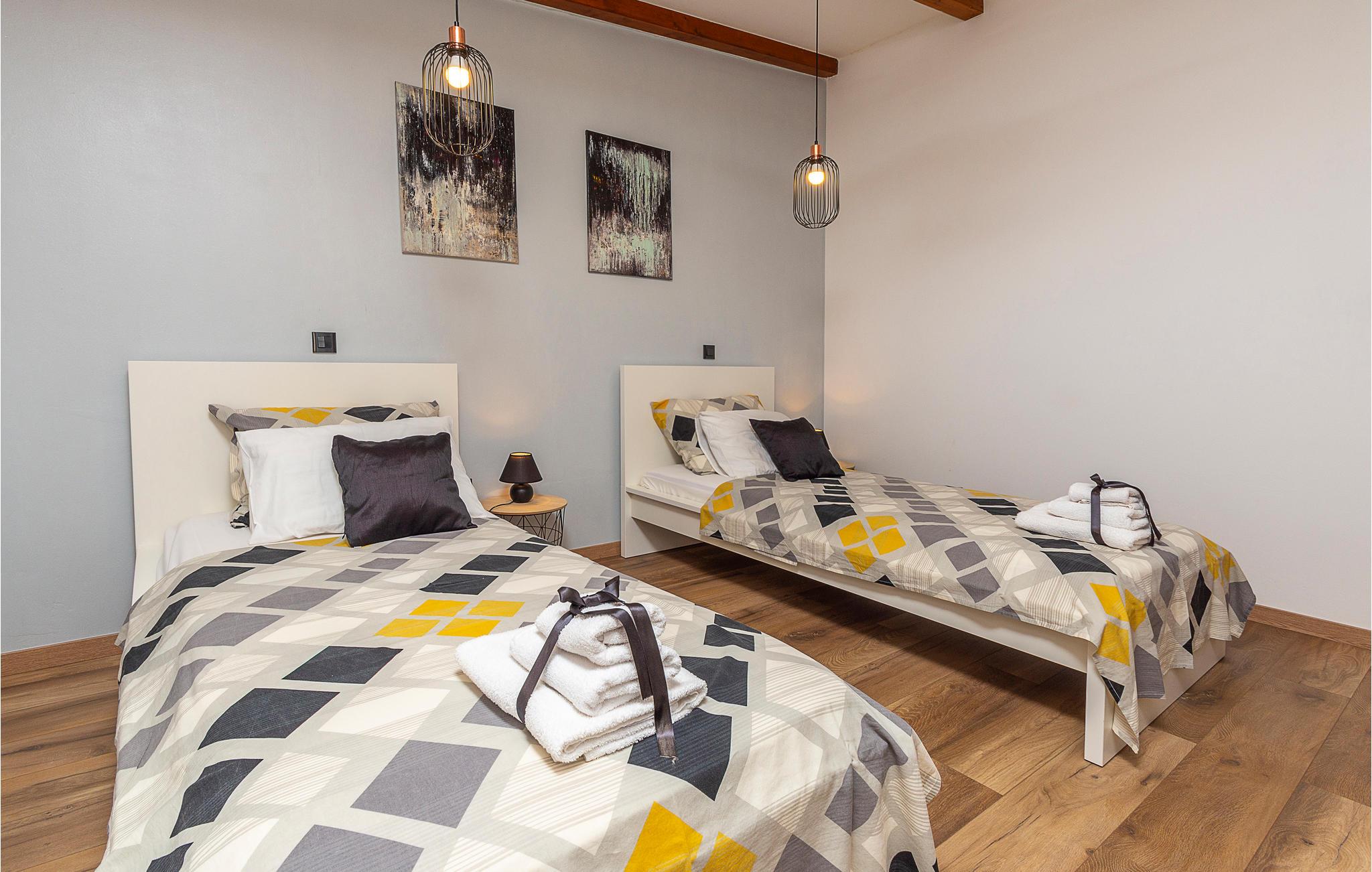 Denne rummelige og nydeligt indrettede ferielejlighed ligger på første sal i en privat ejendom i Pula. Lejligheden er velindrettet og på terrassen er der god plads til at slå benene op og nyde udsigten over landskabet. I entréen findes træningsredskaber, og for dem der elsker naturen kan det anbefales, at tage en spadseretur gennem skovparken Šijana. I Pulas centrum findes et hav af seværdigheder, som kommer til at gøre et varigt indtryk. Især det romerske amfiteater er imponerende. Det istriske køkken nydes bedst på en af byens mange gode restauranter.