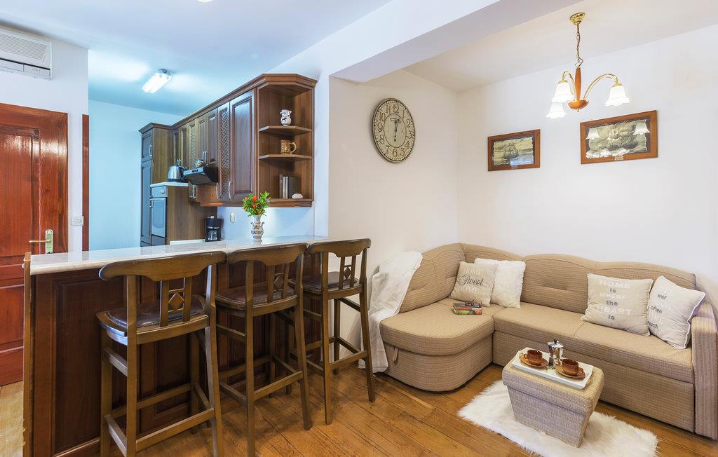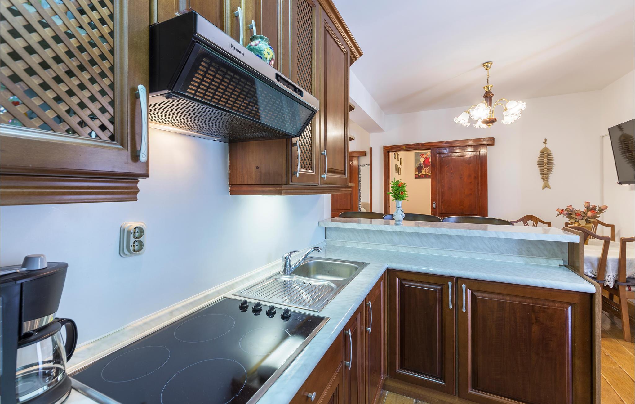 I et roligt kvarter i byen Pula, i en ejendom omgivet af en indhegnet havegrund, ligger disse to charmerende ferielejligheder. De ligger begge i stueplan, velegnede for familier eller venner der vil på ferie sammen. Den rummelige og overdækkede terrasse, indbyder til at sidde sammen udendørs og nyde samværet. De nærmeste strande og havet ligger ca. 200 m væk og der er busstoppested på hovedgaden lige ved siden af lejlighederne. Besøg byens smukke gamle romerske seværdigheder og smag de lækre lokale retter, i en af de mange restauranter. Tag også på tur og nyd livet på en af de mange vidunderlige strande i Naturpark Kap Kamenjak, hvor det ikke er udsædvanligt at have stranden helt for sig selv. Lige i nærheden er der et stort indkøbscenter med Multiplex-kino, en skilift, tennisbaner og byens svømmehal.