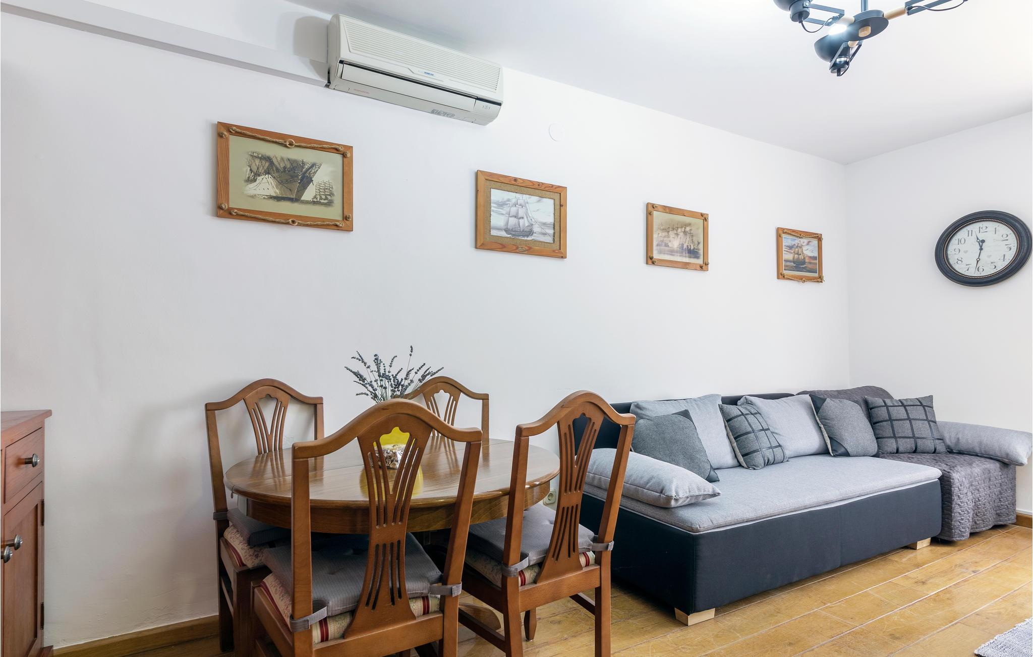 I et roligt kvarter i byen Pula, i en ejendom omgivet af en indhegnet havegrund, ligger disse to charmerende ferielejligheder. De ligger begge i stueplan, velegnede for familier eller venner der vil på ferie sammen. Den rummelige og overdækkede terrasse, indbyder til at sidde sammen udendørs og nyde samværet. De nærmeste strande og havet ligger ca. 200 m væk og der er busstoppested på hovedgaden lige ved siden af lejlighederne. Besøg byens smukke gamle romerske seværdigheder og smag de lækre lokale retter, i en af de mange restauranter. Tag også på tur og nyd livet på en af de mange vidunderlige strande i Naturpark Kap Kamenjak, hvor det ikke er udsædvanligt at have stranden helt for sig selv. Lige i nærheden er der et stort indkøbscenter med Multiplex-kino, en skilift, tennisbaner og byens svømmehal.