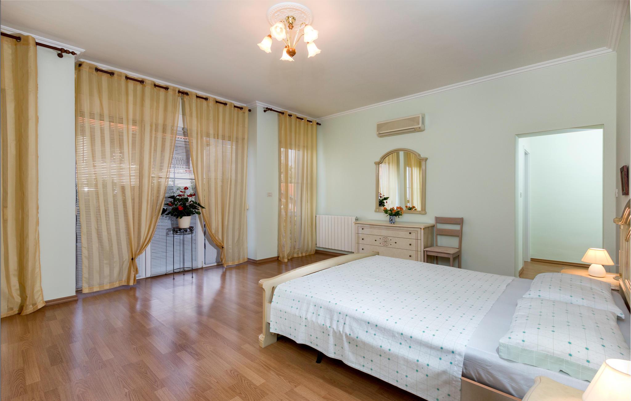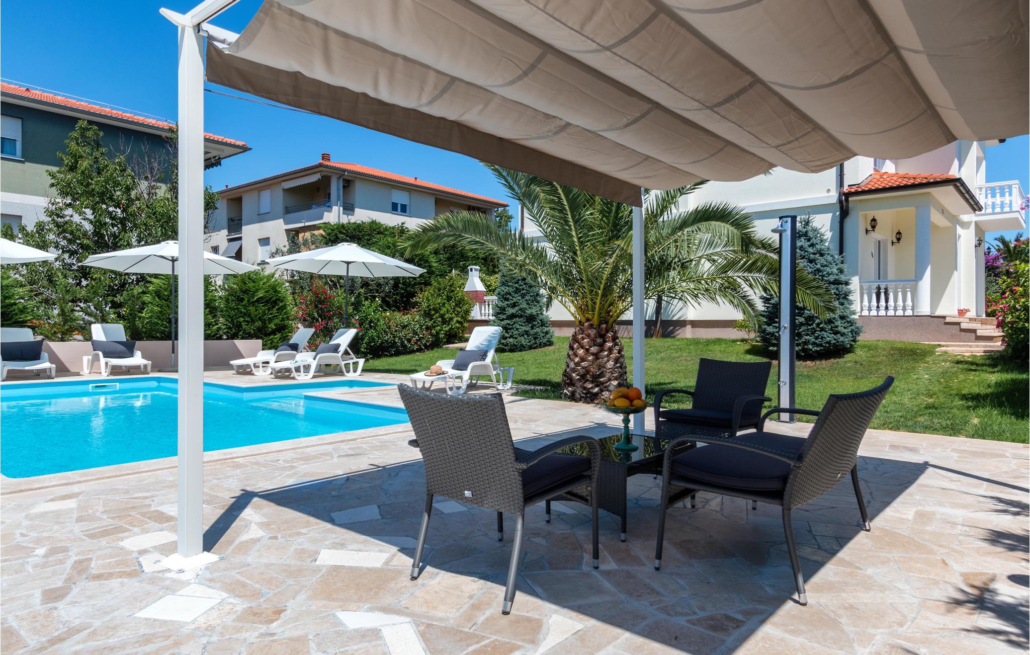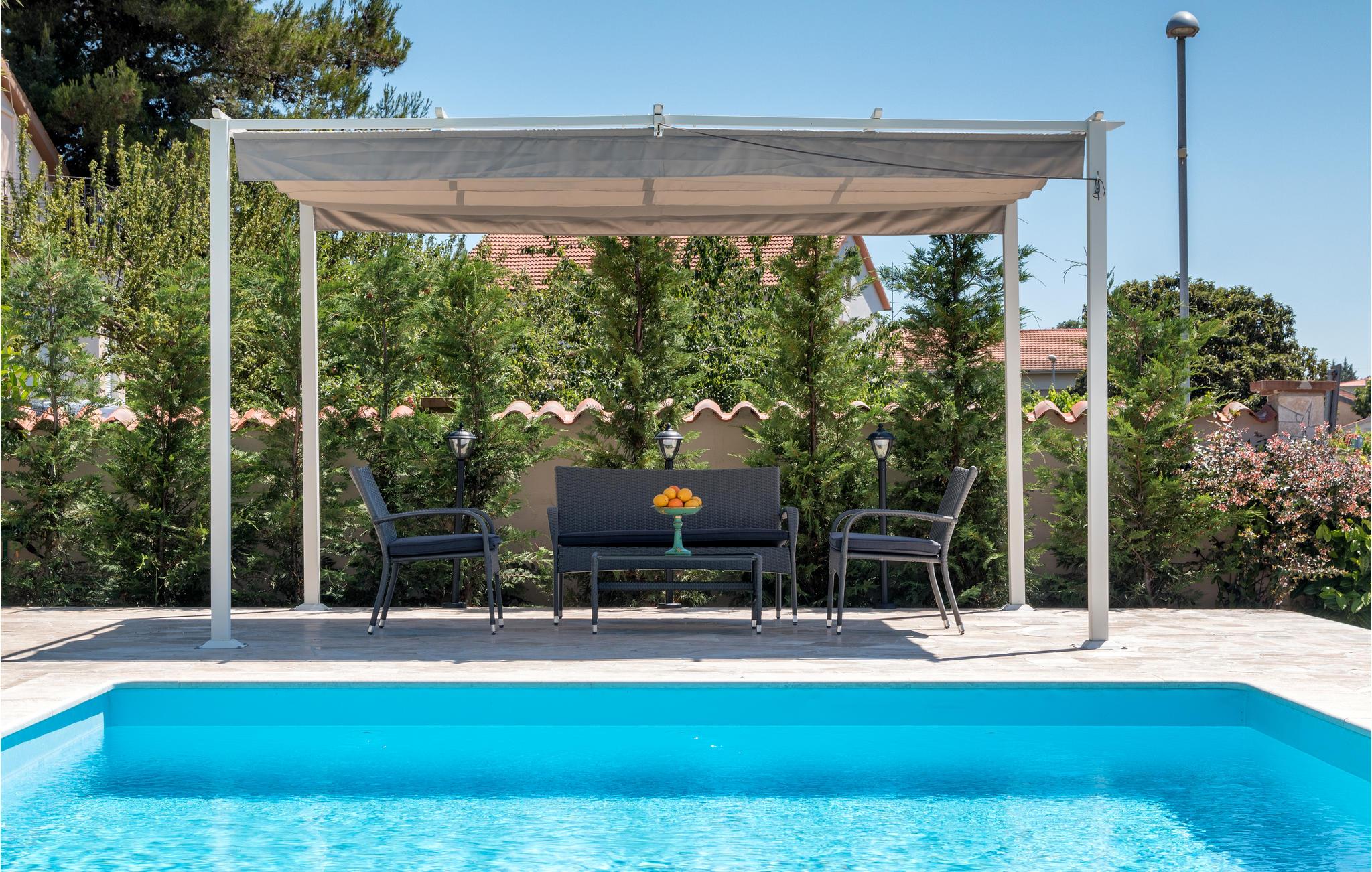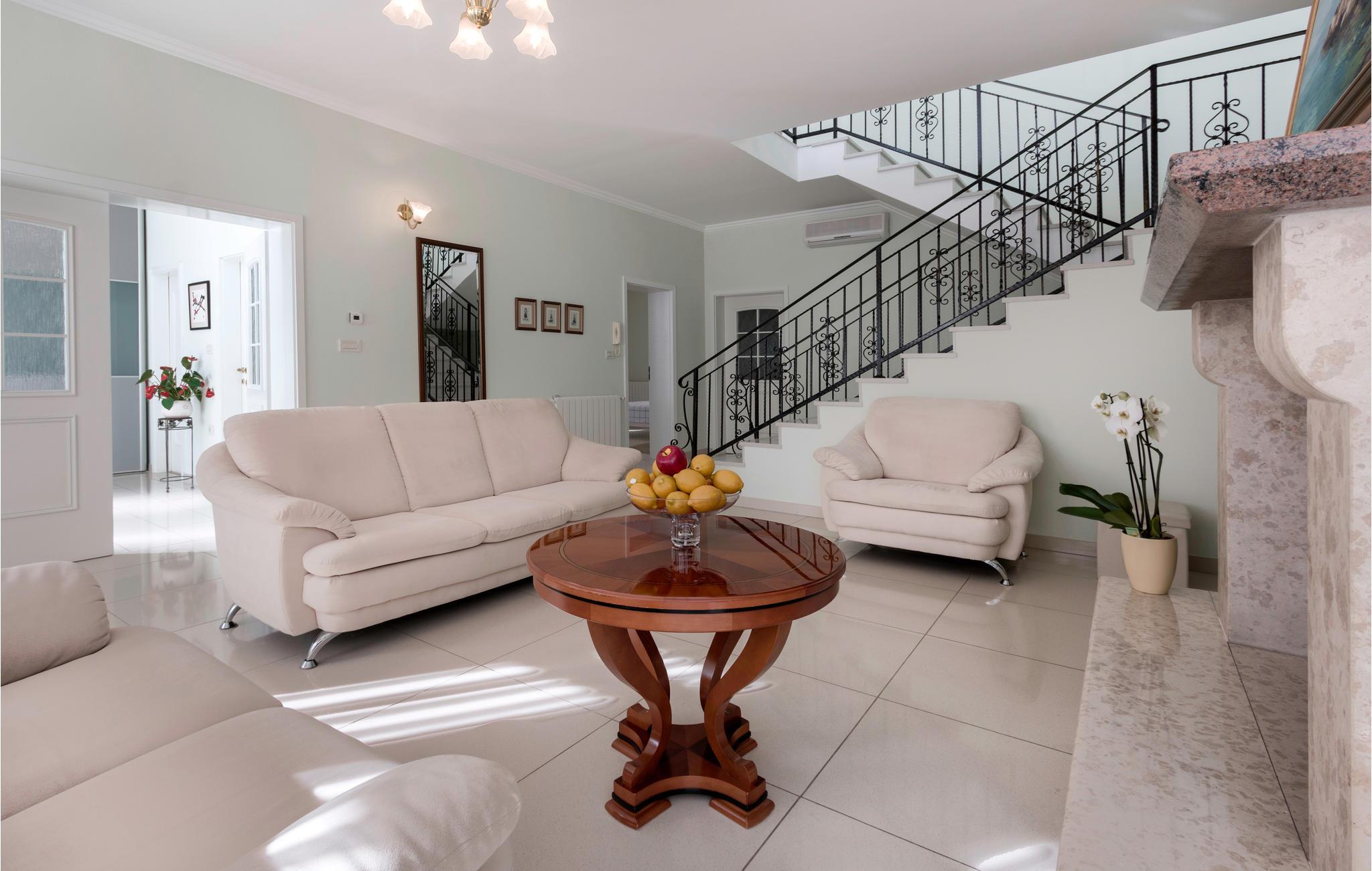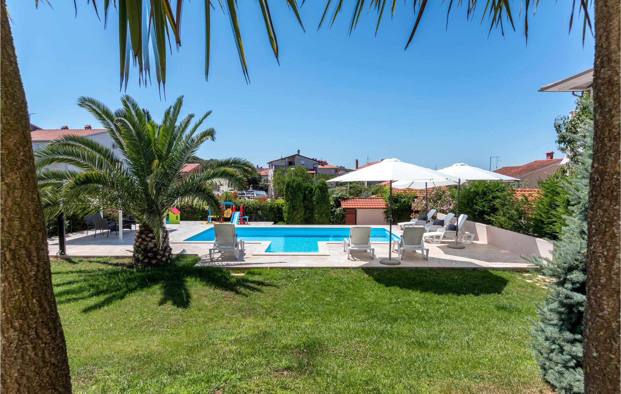 Denne ferievilla ligger ikke langt fra Pula og strækker sig over to etager. Huset er komfortabelt og rummeligt til en afslappet ferie. I stueplan er der et køkken, en stue, et soveværelse og et badeværelse. En trappe fører op til første sal, hvor der er tre soveværelser, tre badeværelse og en stor hems, hvor børnene kan lege. Svøm en runde i poolen, og køl lidt ned på de varme sommerdage. Vi kan også anbefale besøg i det nærliggende Pula, hvor der er mulighed for at dyrke sport og med utallige former for kultur og underholdning for alle aldersklasser.