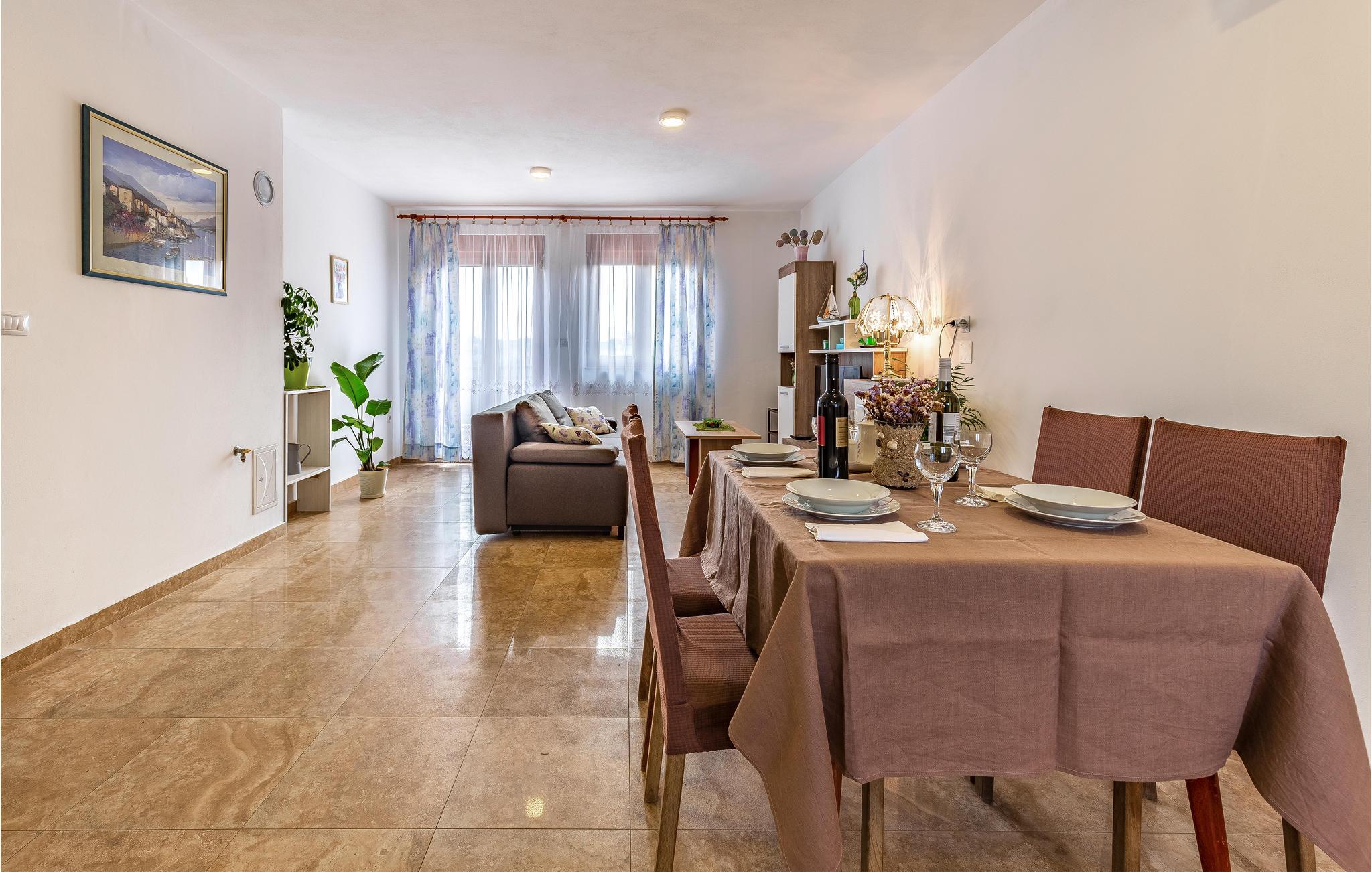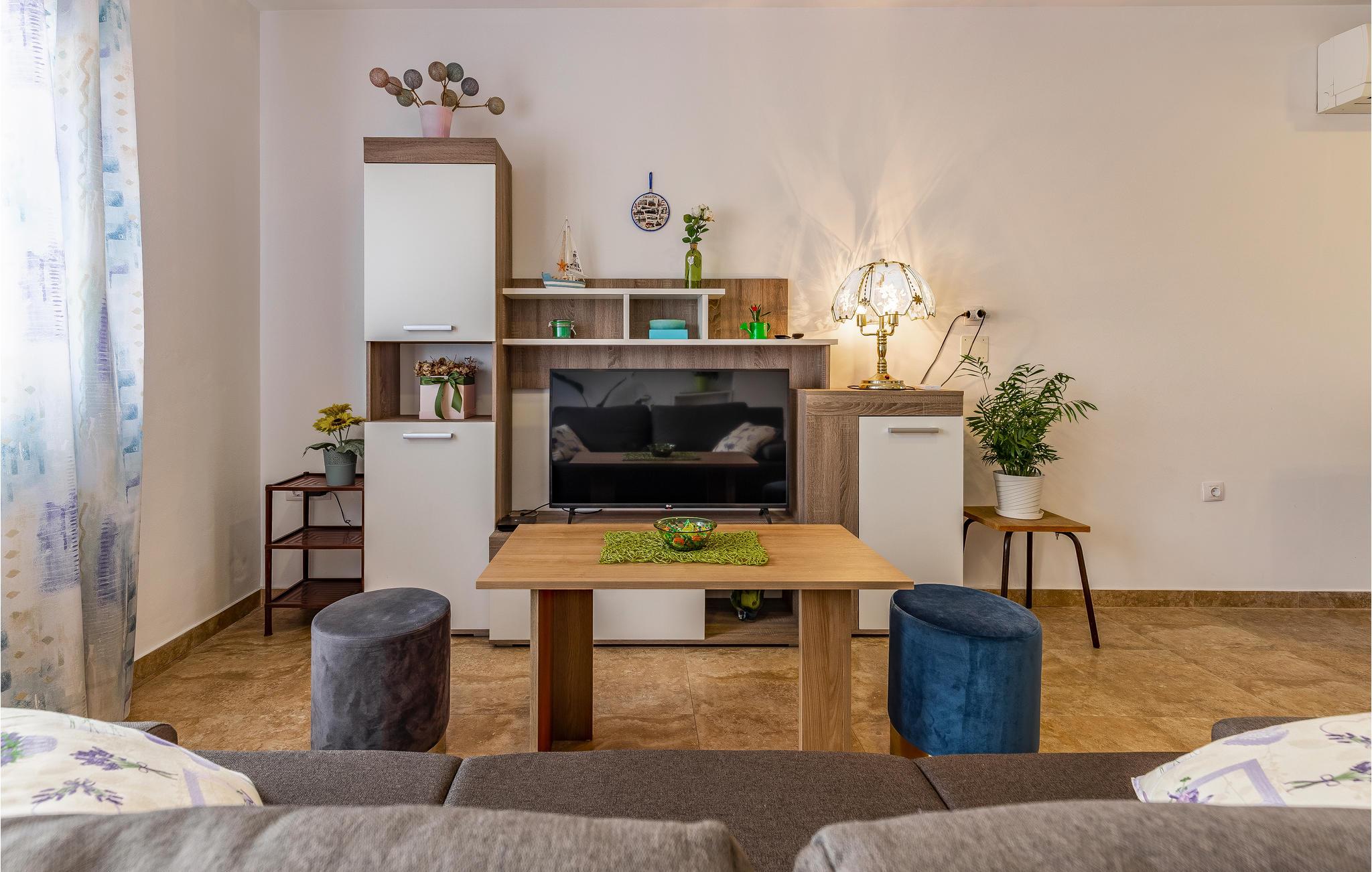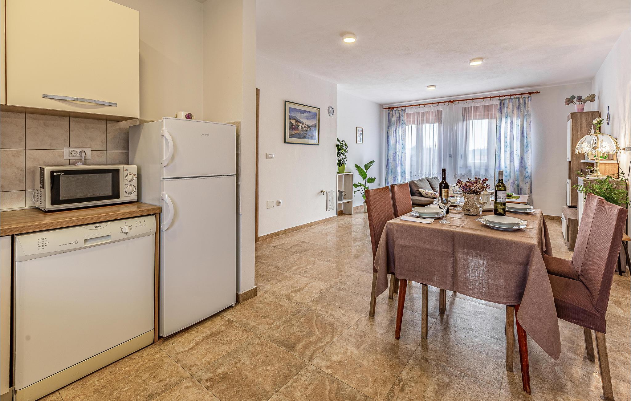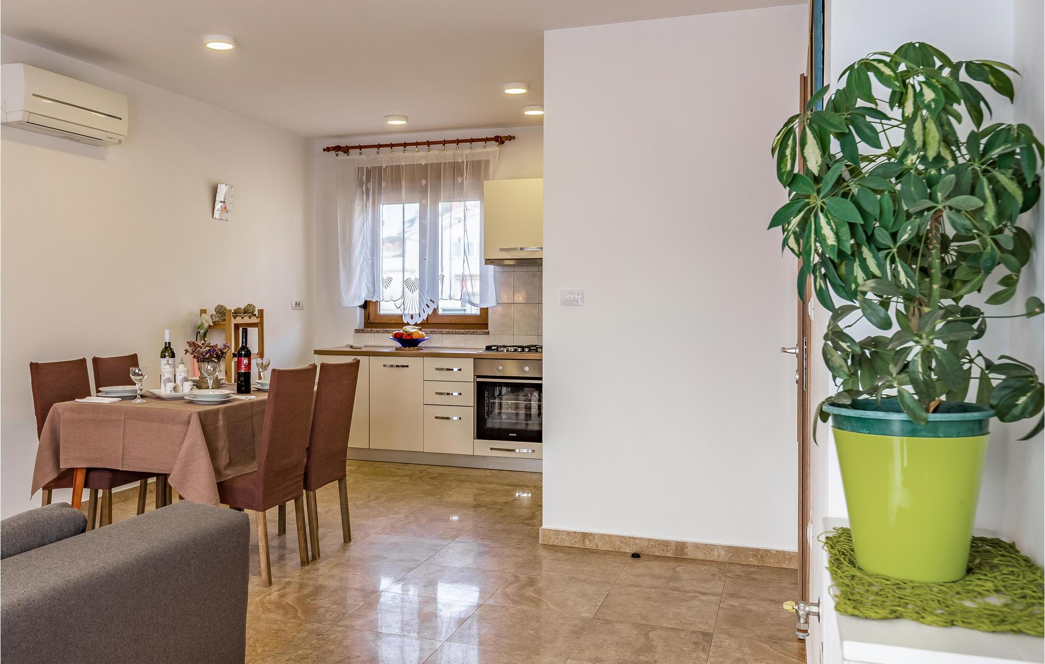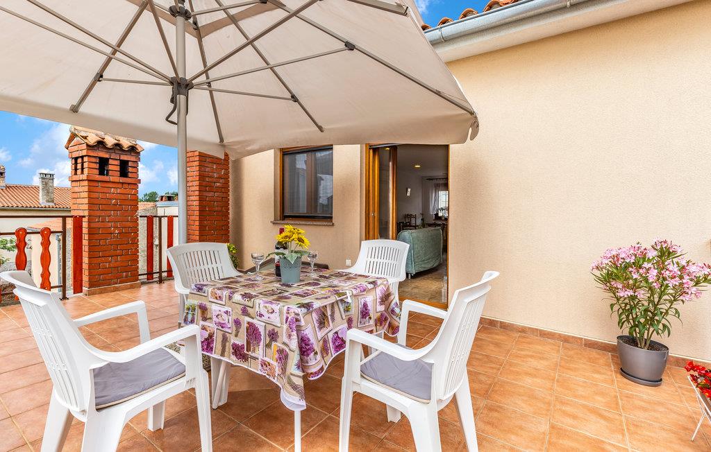 Denne rummelige ferielejlighed ligger i en privat ejendom og vil danne dejlige rammer om en afslappende ferie. Lejligheden er behageligt møbleret og komfortabelt udstyret. Den rummelige terrasse inviterer til skønne afslappede timer udendørs. Det tager kun få minutter at køre til byens skønne strand og Pula lokker med sine mange seværdigheder, kultur, sportsfaciliteter, forskellige arrangementer og koncerter, her er noget for alle og for alle aldersklasser. Det kan også anbefales at tage på udflugt til Rovinj, Porec eller Brijuniøernes National Park.