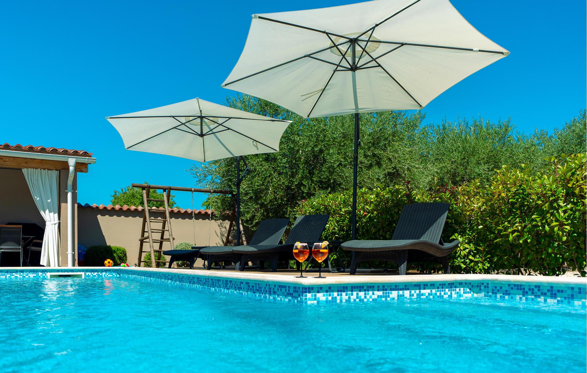 Børnene kan lege på ejendommen, og I har en privat pool til rådighed. Nyd solen i liggestolene, og lad hverdagen være bag jer.