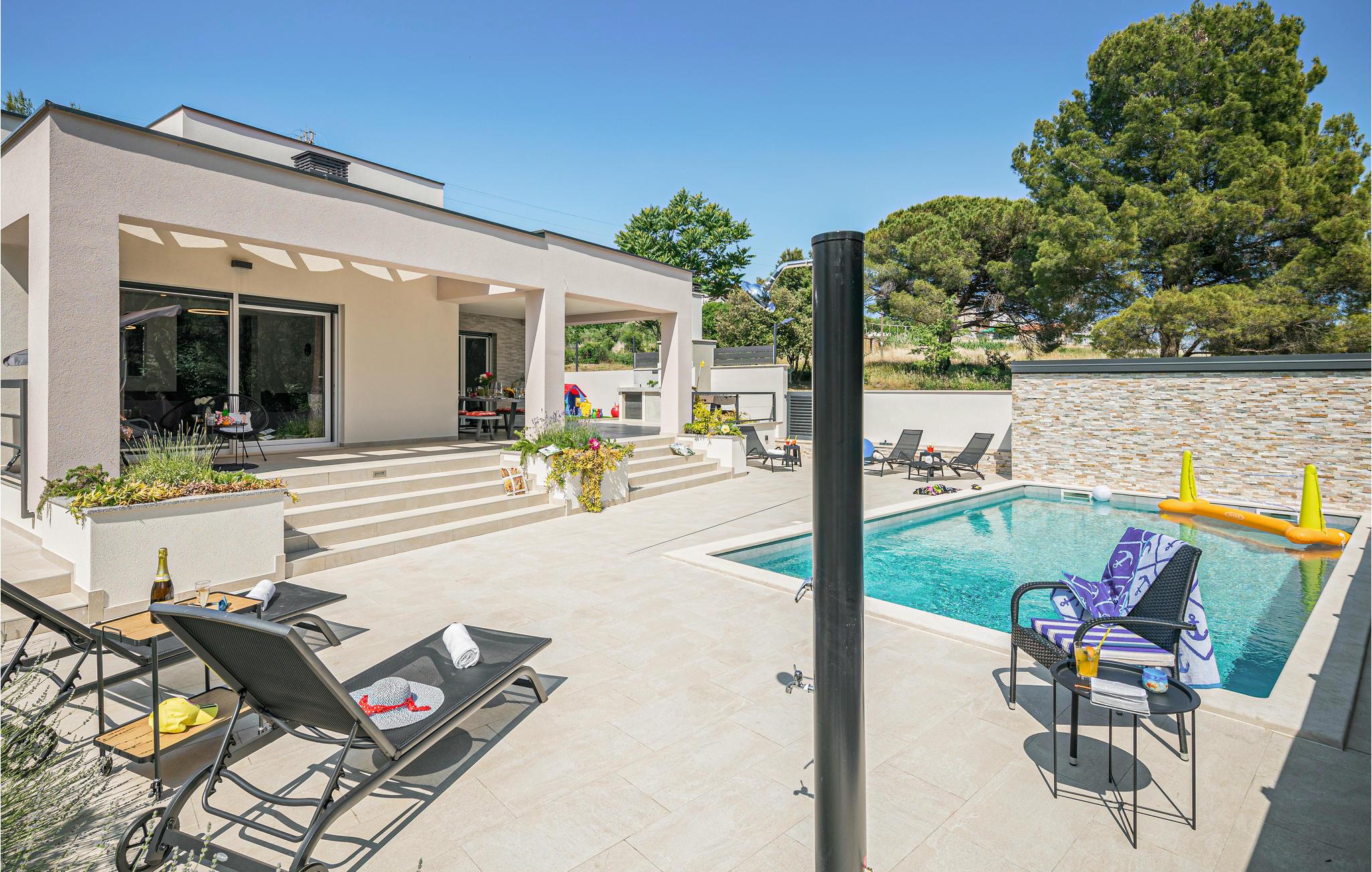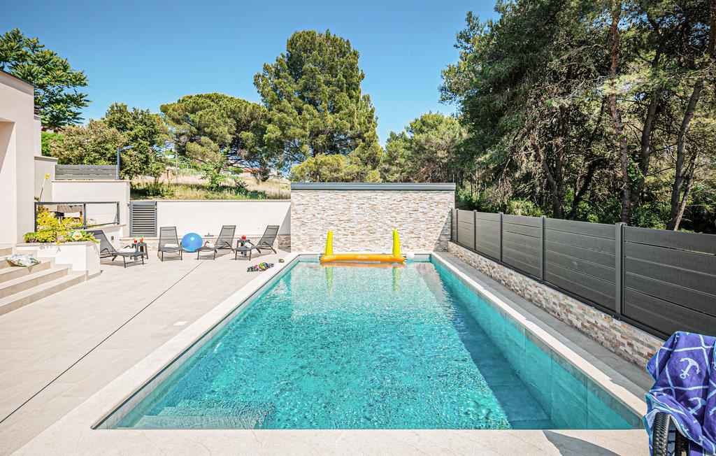 Dette smukke og moderne hus med pool ligger i en rolig del af Pula, omgivet af grønne områder og tilbyder sine gæster alt, hvad de har brug for til en kvalitetsferie.