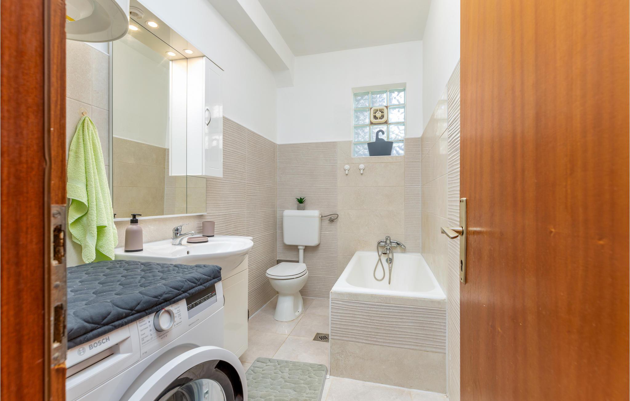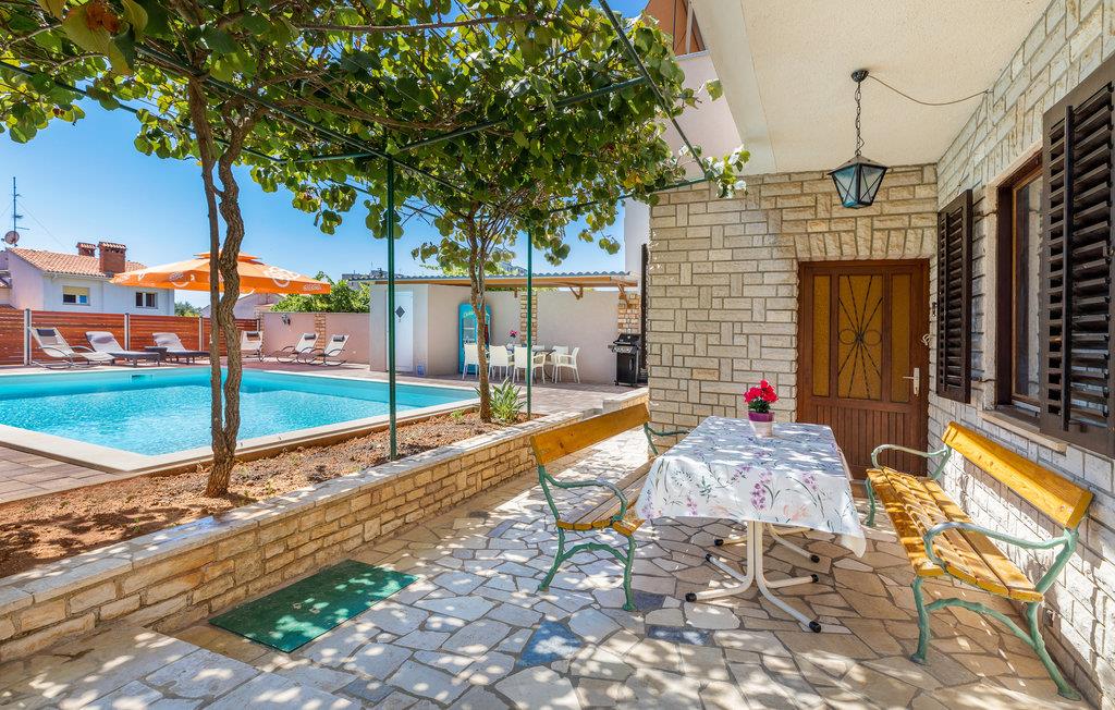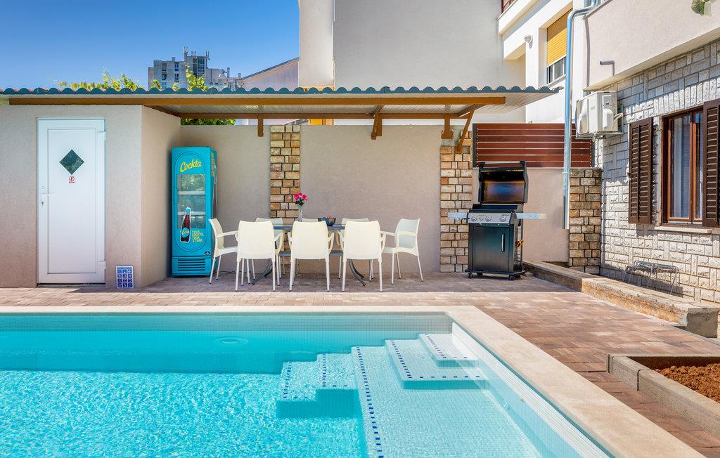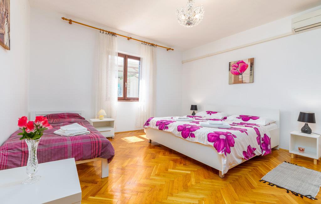 Denne store og komfortable lejlighed med privat pool er beliggende i en rolig del af Pula mellem familiehuse. Den er beliggende i stueetagen og har 4 soveværelser og 3 badeværelser til rådighed for jer.
