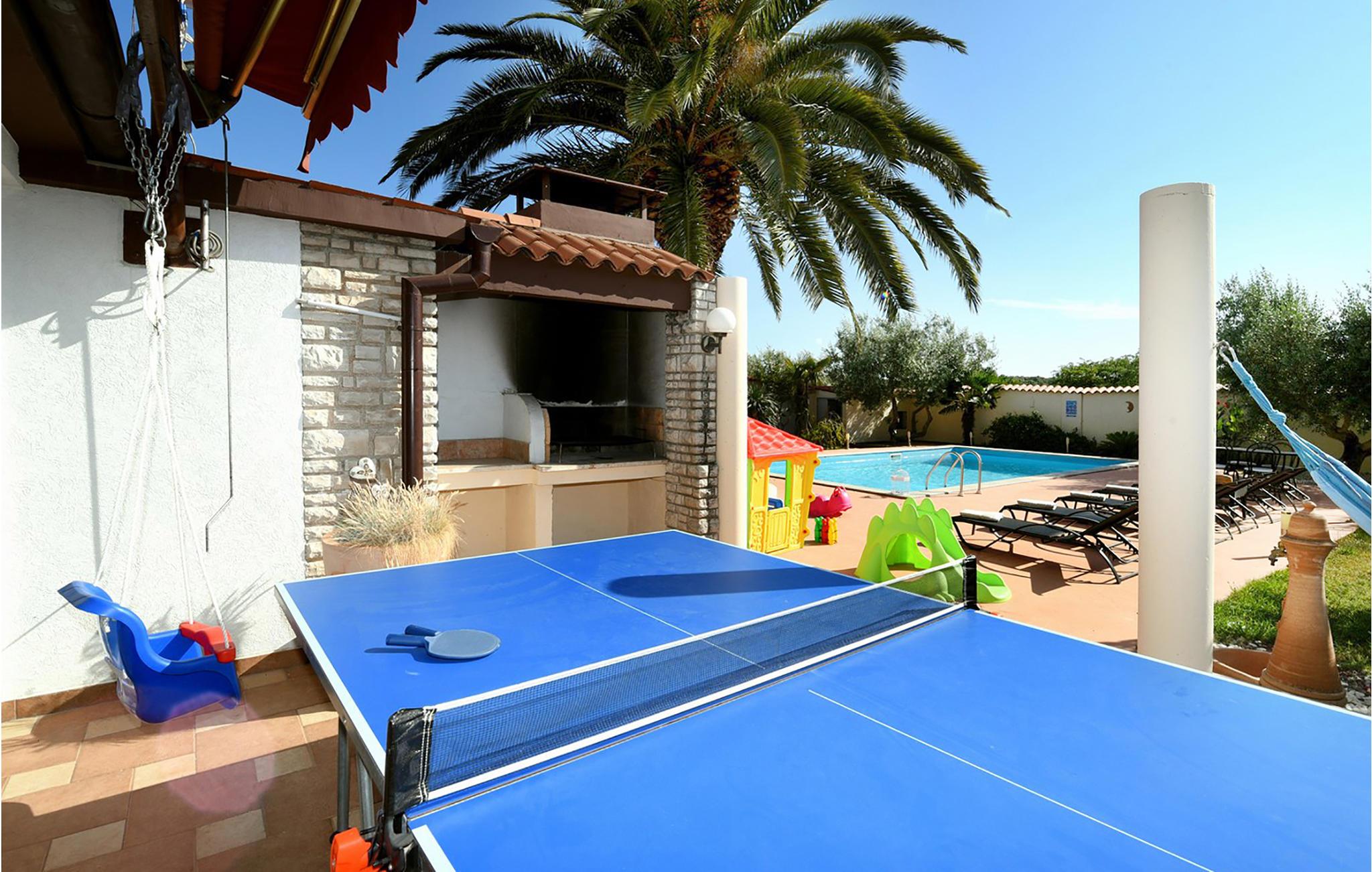 Slap af på liggestolene med en kold forfriskning og hop i poolen, når du trænger til afkøling. Hav det sjovt med bordtennis. For de små er der et legehus og en rutsjebane udenfor, og der er masser af plads til, at de kan lege her.